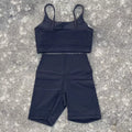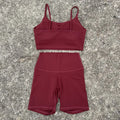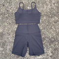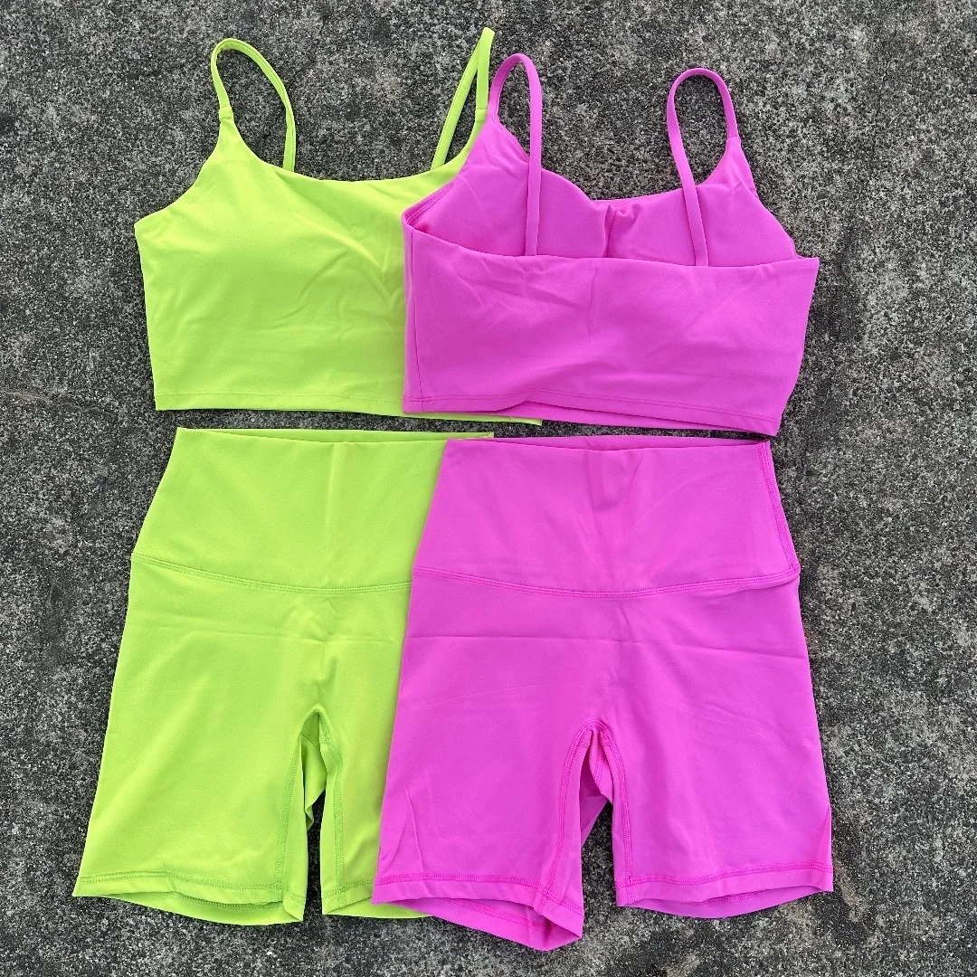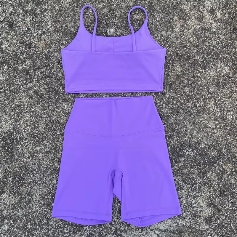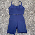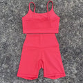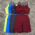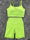 Solid Color Gym Cycling shorts Yoga Set Short Legging +Spaghetti straps Sport Bra Athletic Women Suit Comprehensive Training Jog