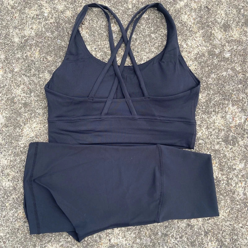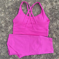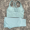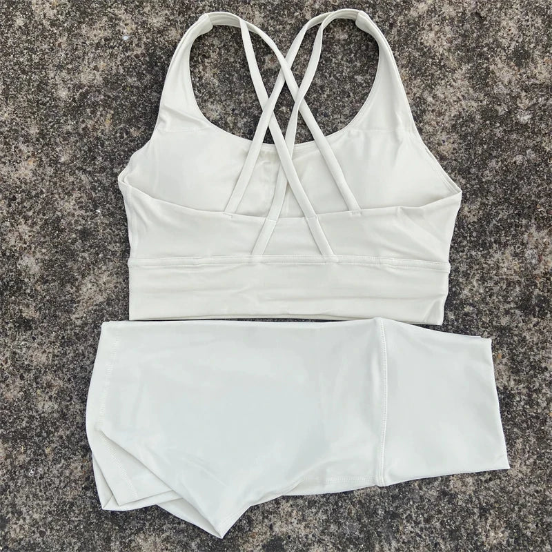 Solid Color Women Soft Gym Yoga Set Cycling Short Legging 2pc Cross Sport Bra Tracksuit Suit Comprehensive Training Jog Athletic
