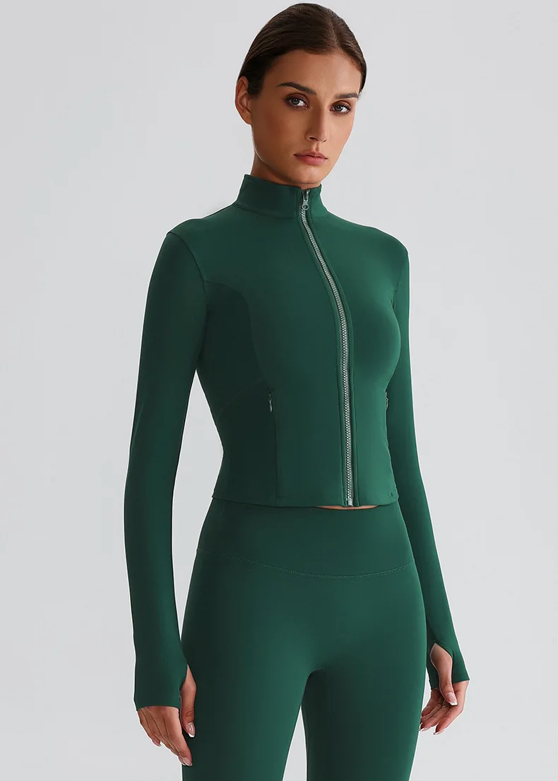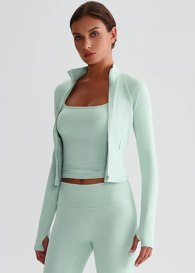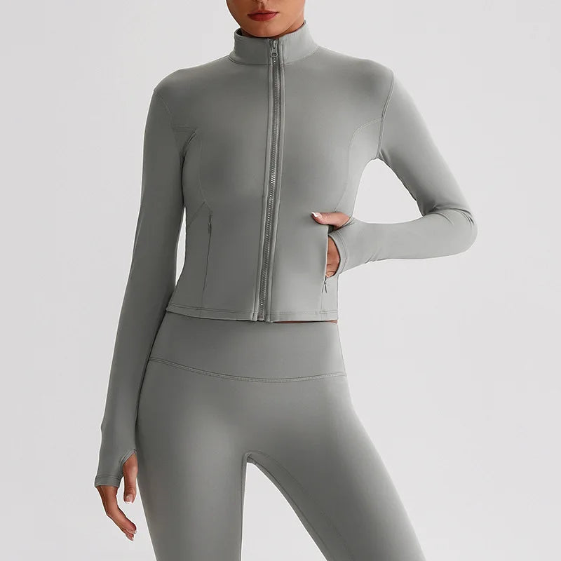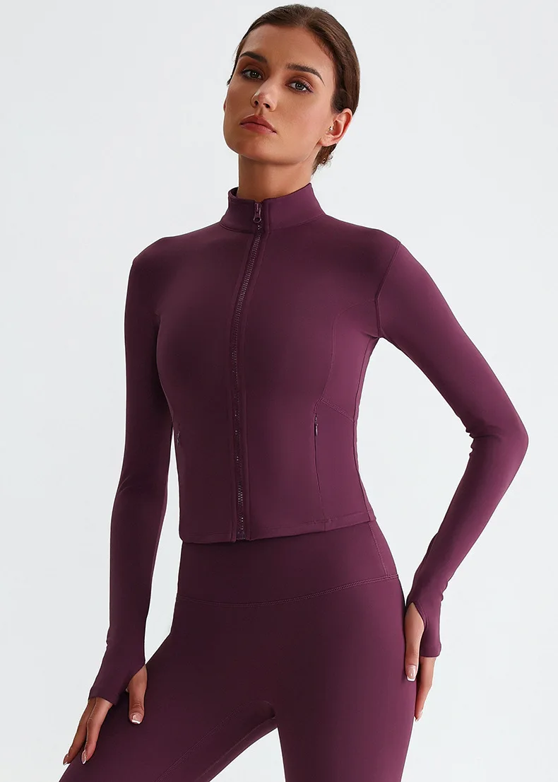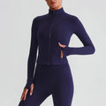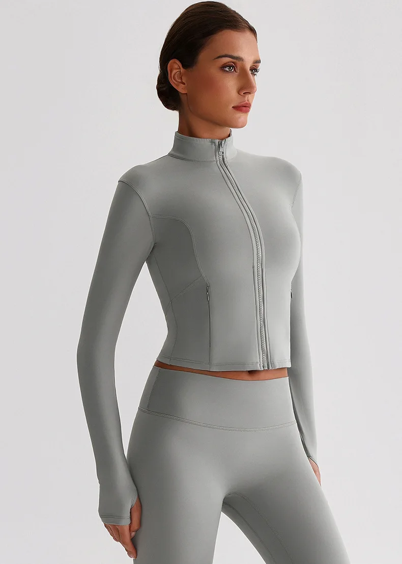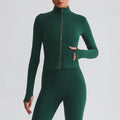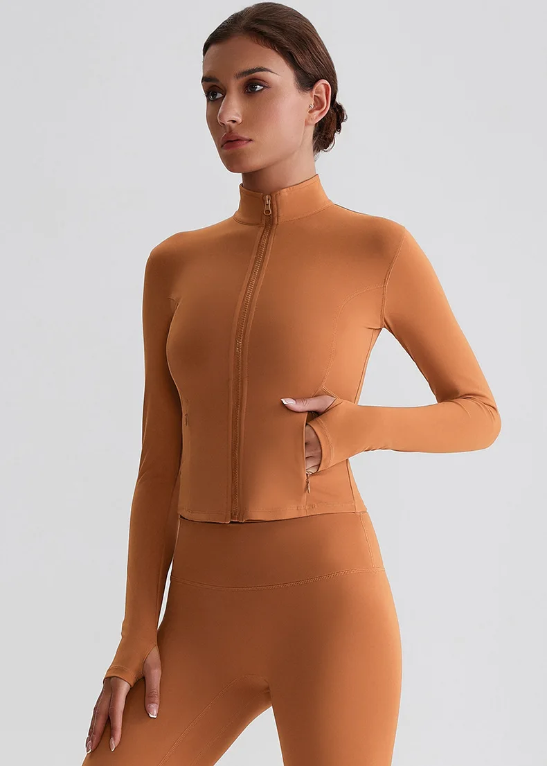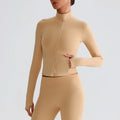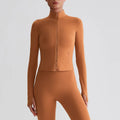 Solid Color Women Sport Jacket Long Sleeve Zip Gym High Neck Zipper With pocket Coat Fitness Top Comprehensive Training Sportwea