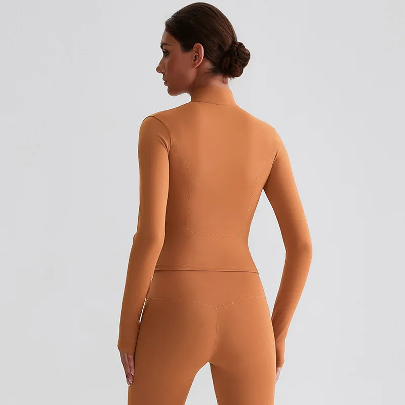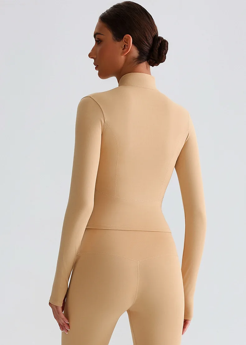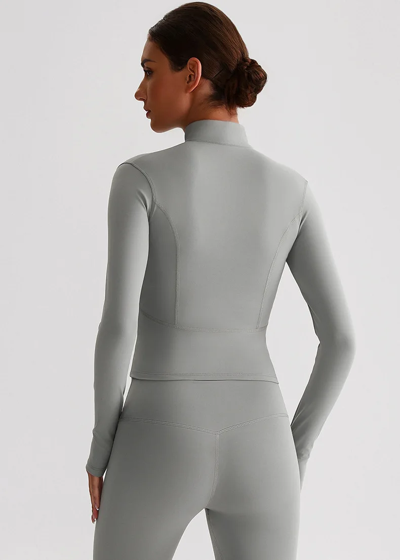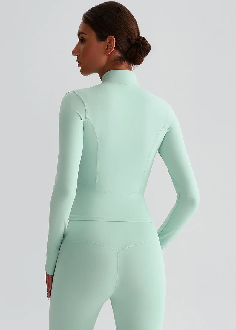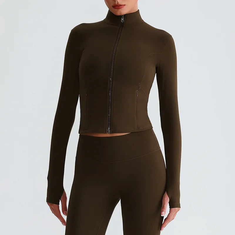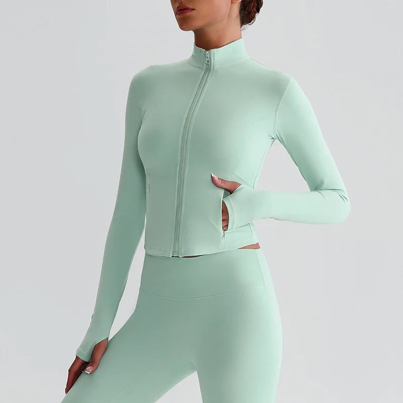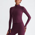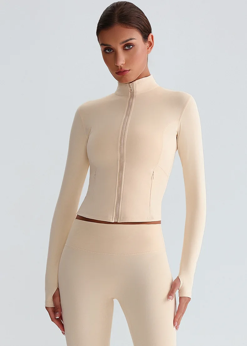 Solid Color Women Sport Jacket Long Sleeve Zip Gym High Neck Zipper With pocket Coat Fitness Top Comprehensive Training Sportwea