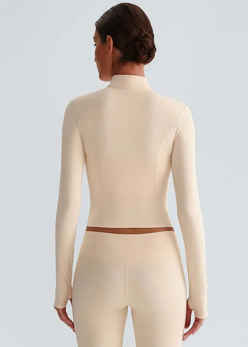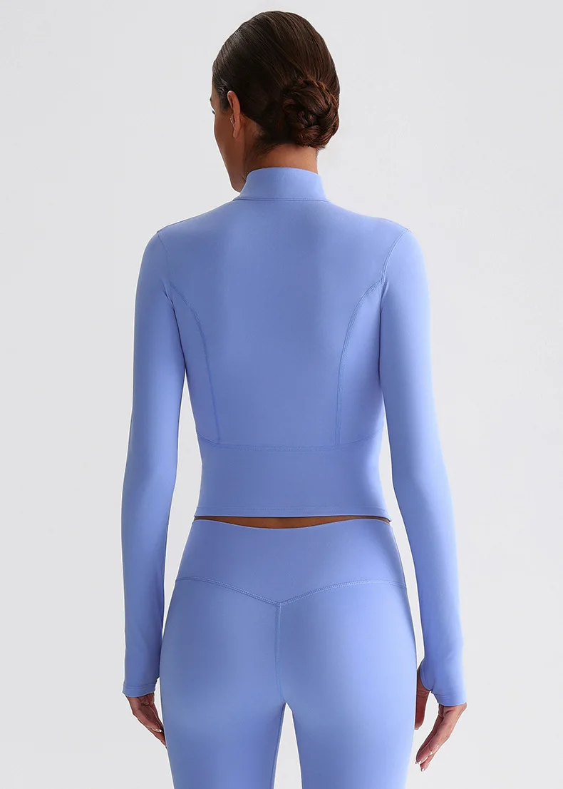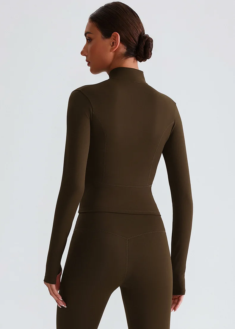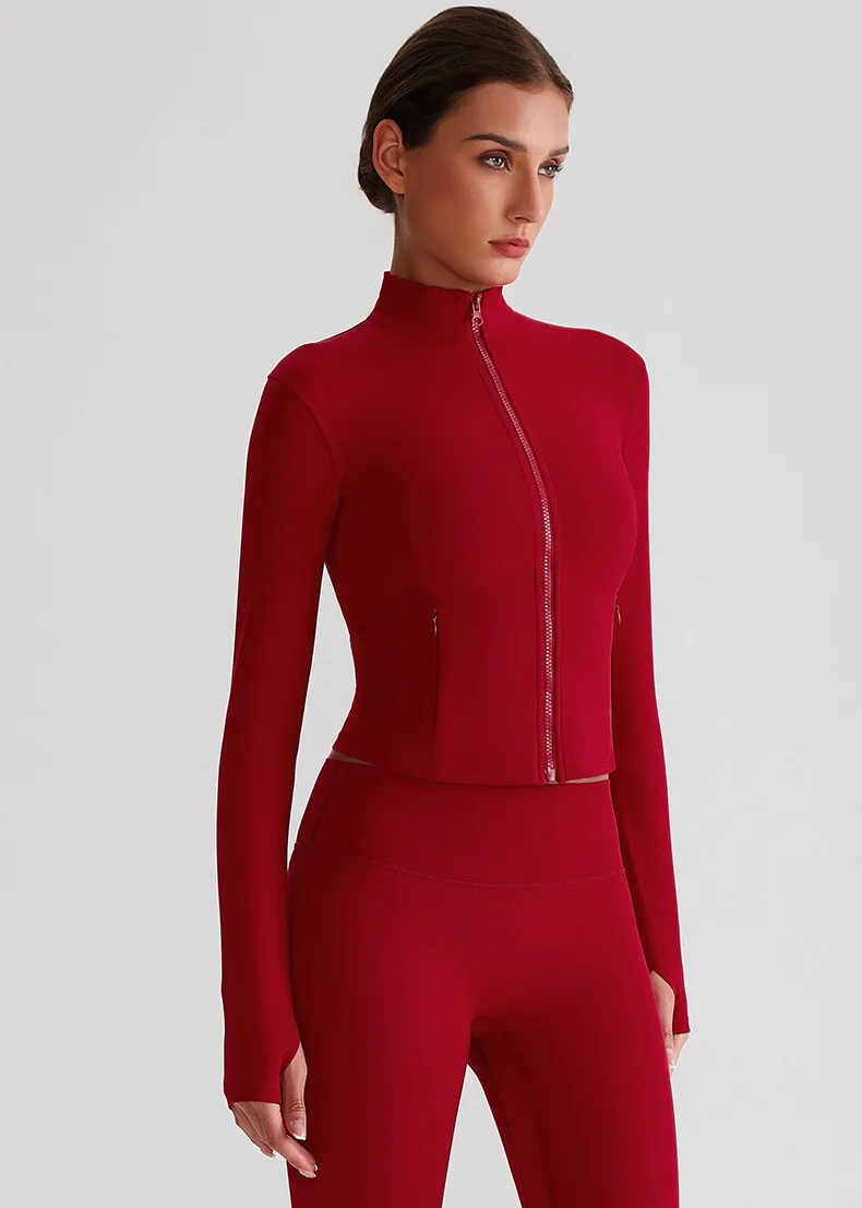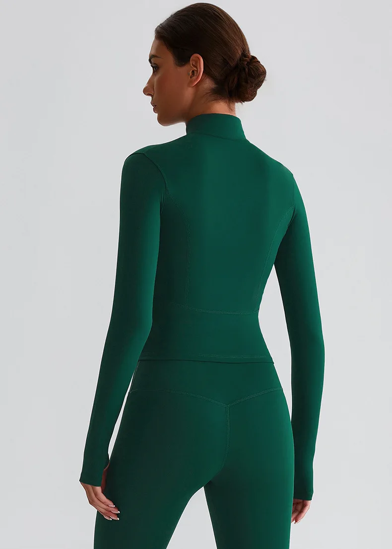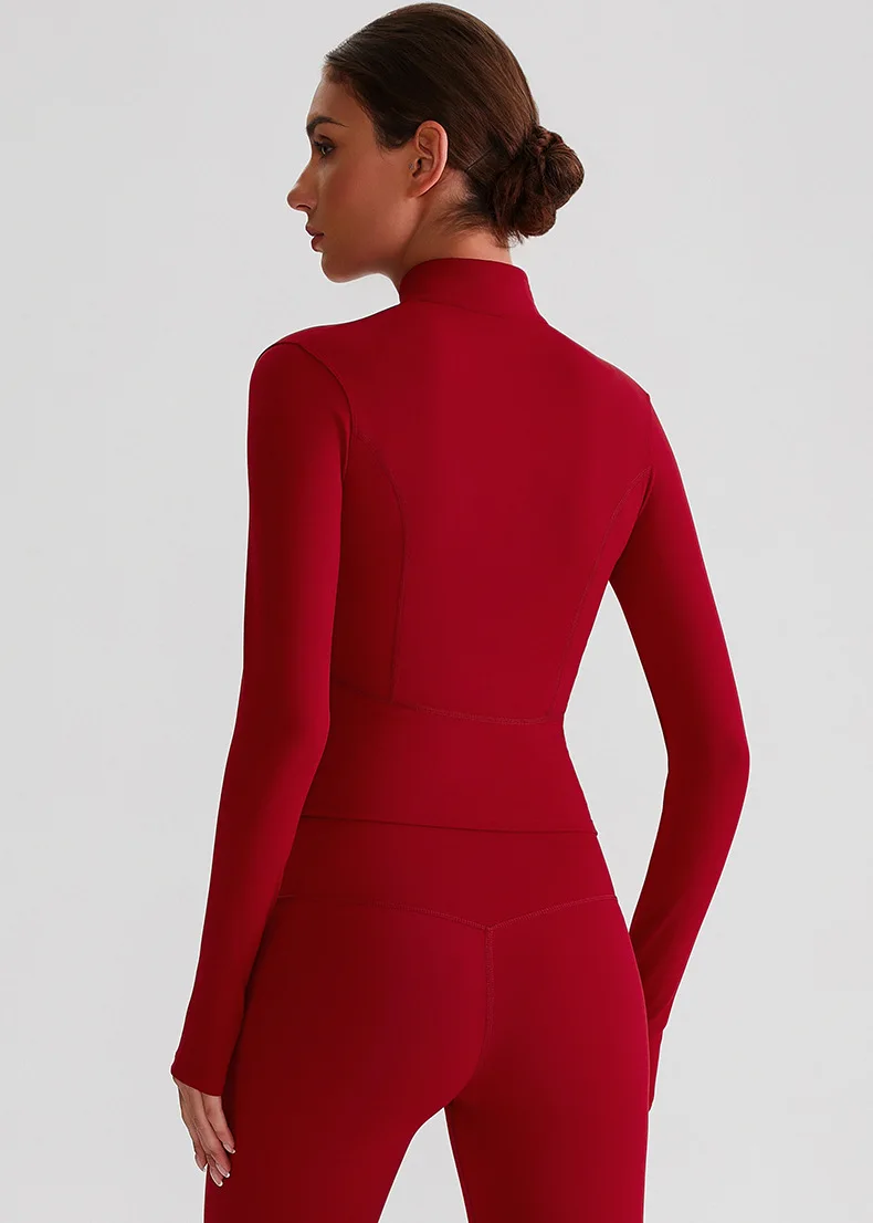 Solid Color Women Sport Jacket Long Sleeve Zip Gym High Neck Zipper With pocket Coat Fitness Top Comprehensive Training Sportwea