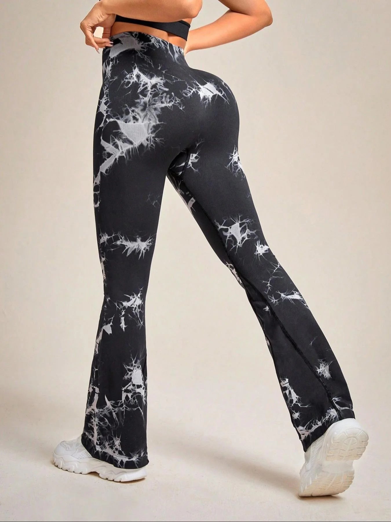 Sports and Fitness Women's High Waist Flare Pants Tie Dyed Casual Pants
