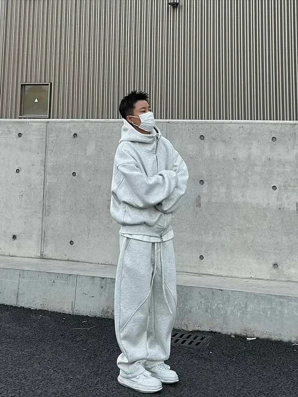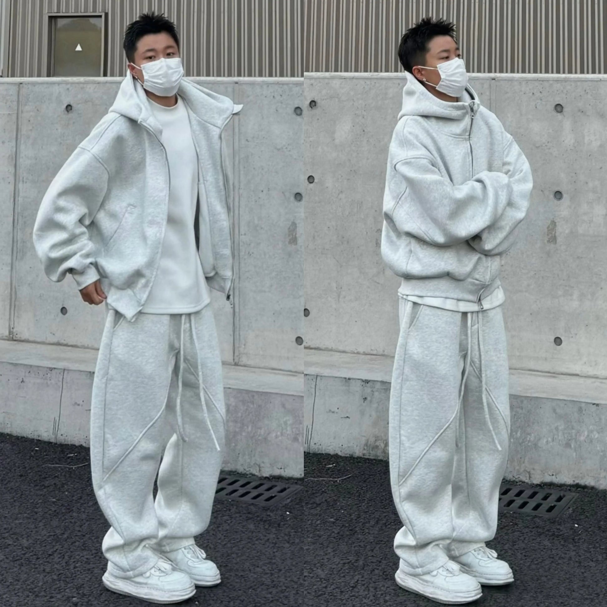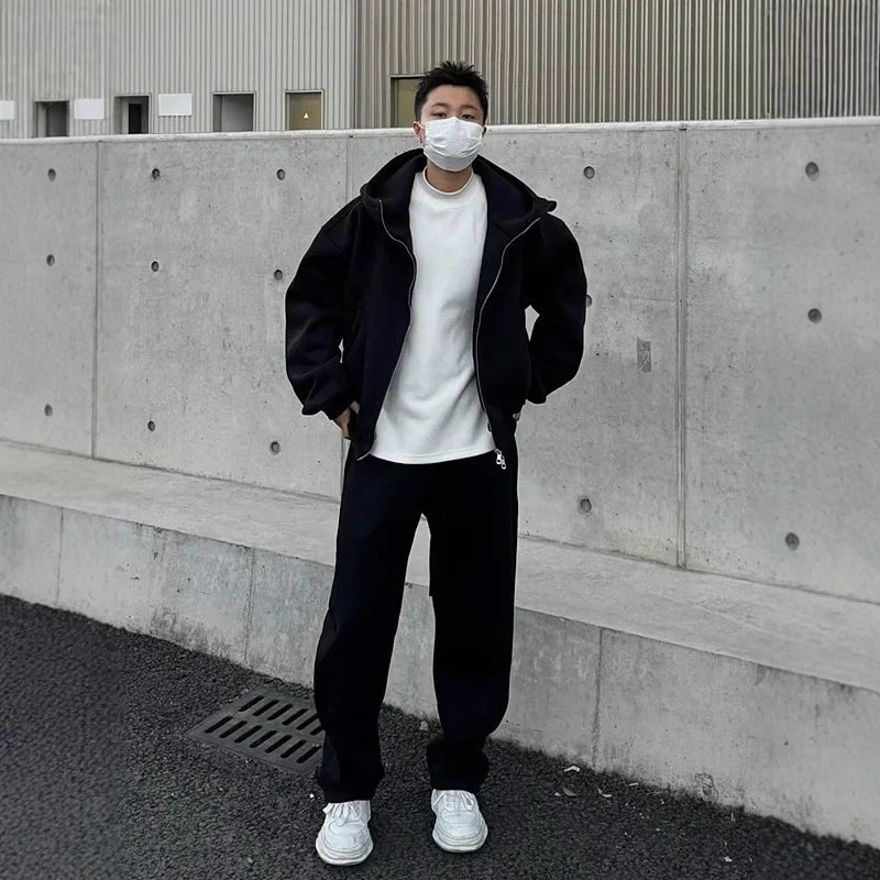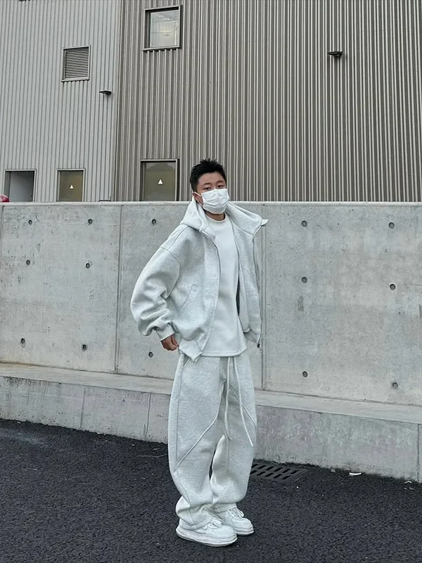 • Trendy Sports Style : This men's two-piece set combines comfort with trend, featuring a stylish hooded jacket and wide leg sweatpants for a casual yet fashionable look.