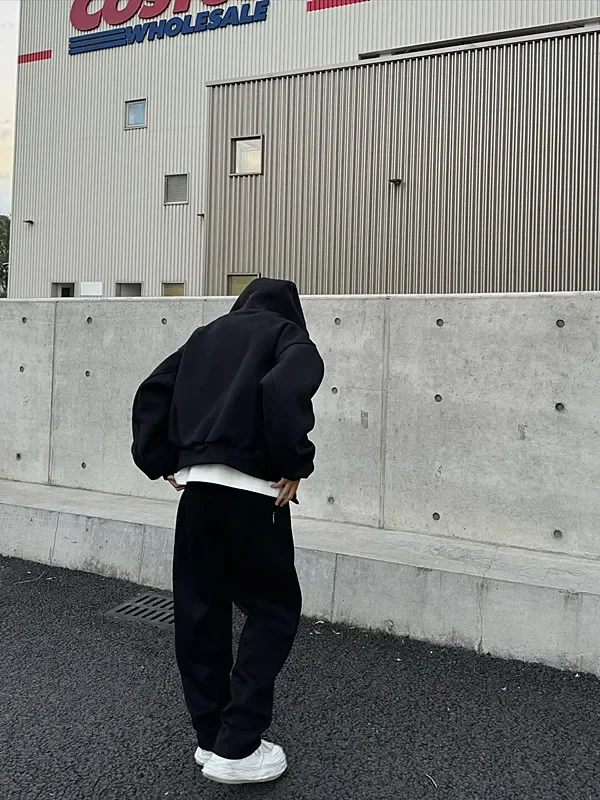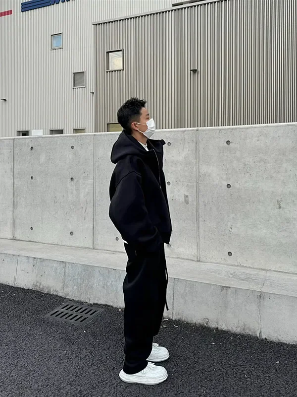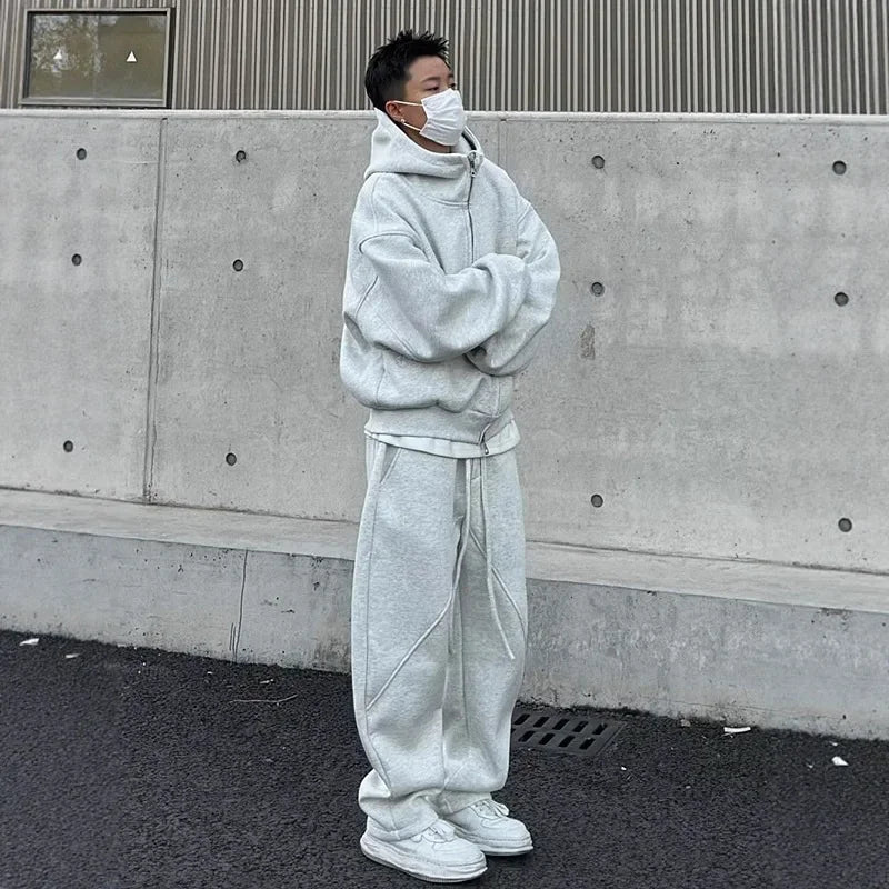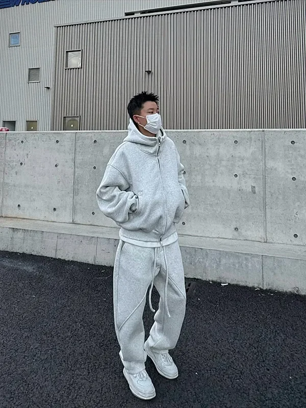 Sporty Casual Men's Two-Piece Set Hooded Jacket Wide Leg Sweatpants Trendy Lazy Style Sportswear from Mainland China