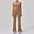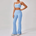 Summer 2pcs Patchwork Sport Yoga Suit High Waist Flare Split Leggings Women Outfit Fitness Workout Set Sportwear Women Tracksuit