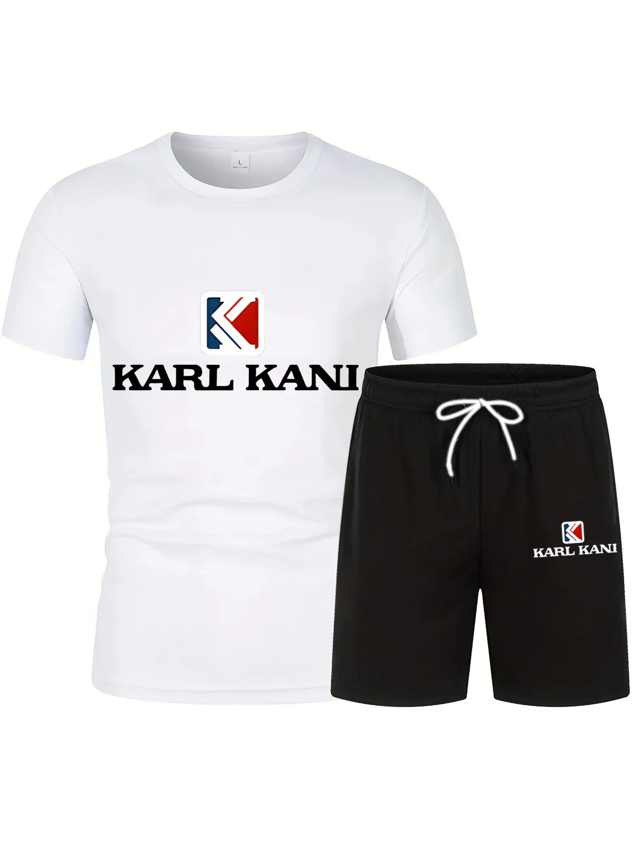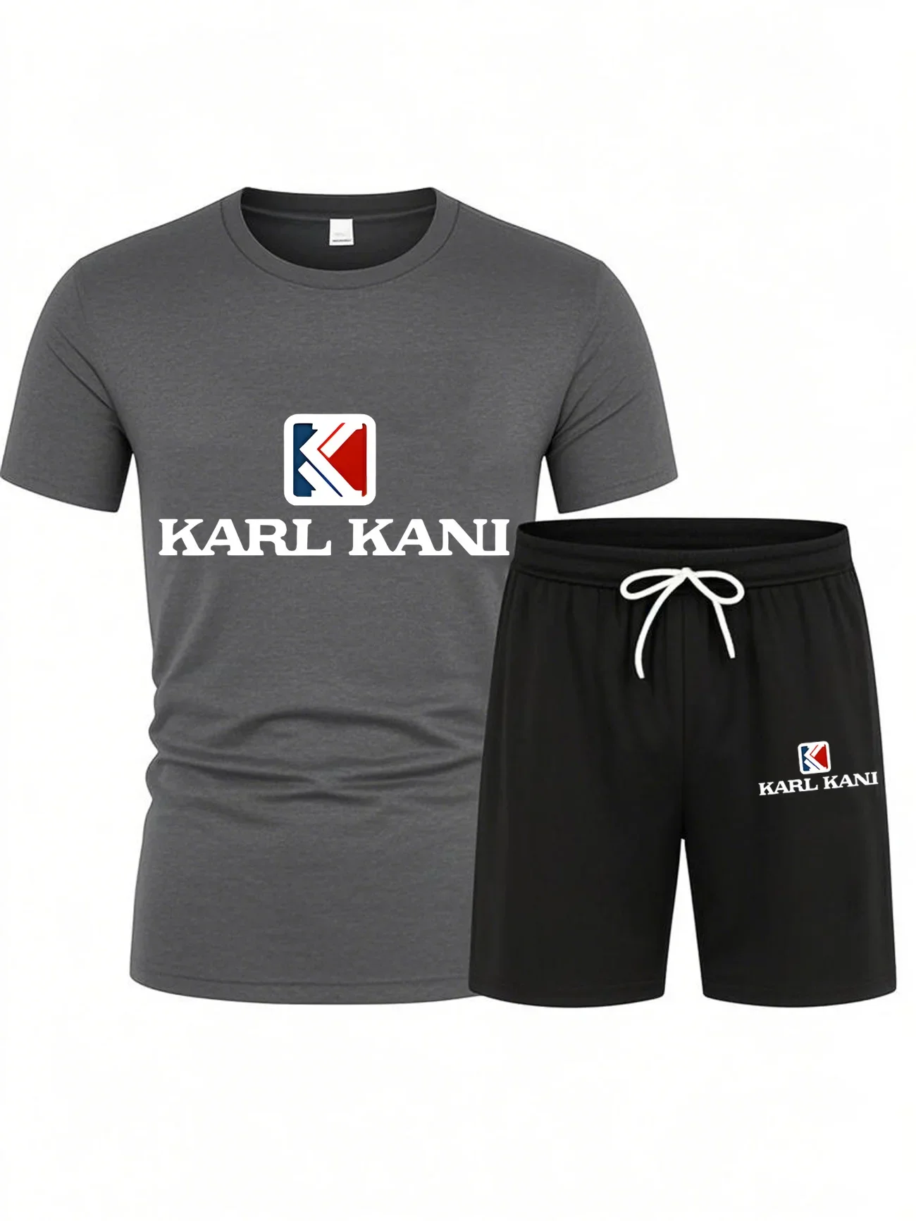 Summer Comfortable and Breathable, Suitable for Outdoor Jogging and Run Men'S Casual Sports Short Sleeve T-Shirt and Shorts Set