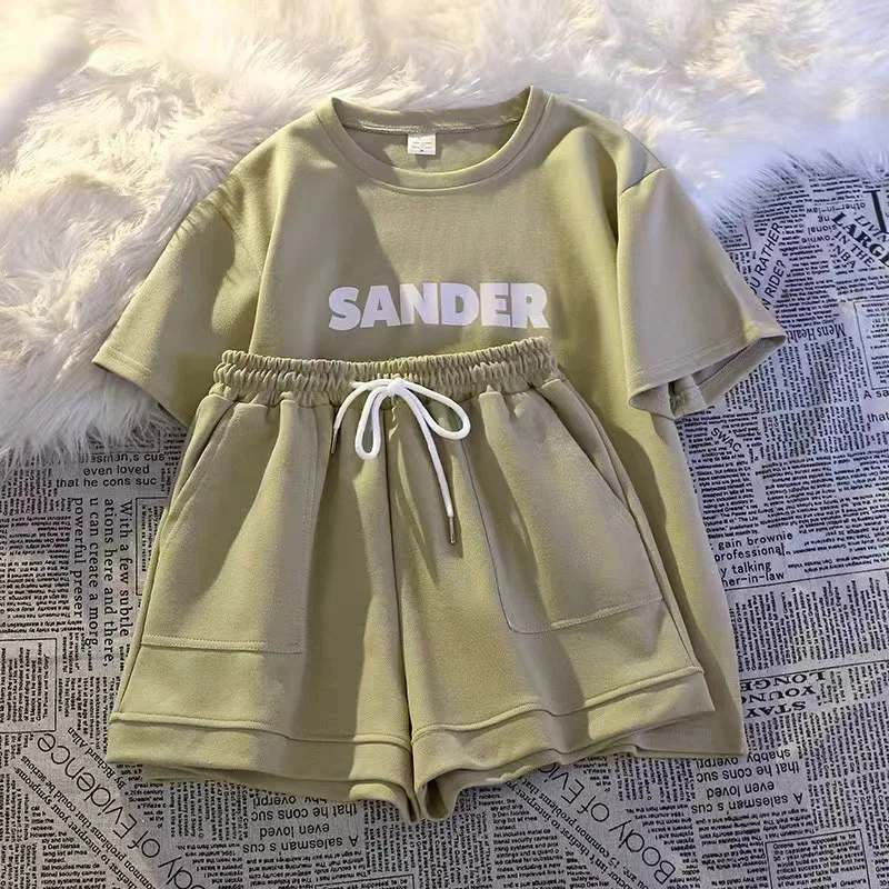 Summer new Girls' set, short sleeved T-shirt with letters for children, Korean-style casual shorts for kids