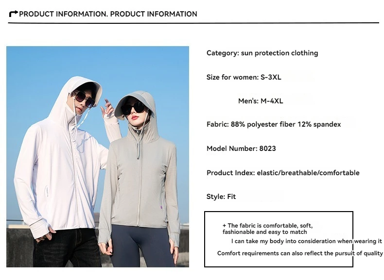 Summer Thin Couple Sports Leisure Sunscreen Clothing Comfortable High Quality Ice Silk Breathable Outdoor UV Protection Coat
