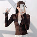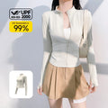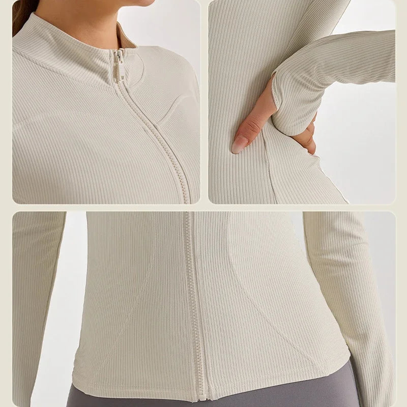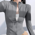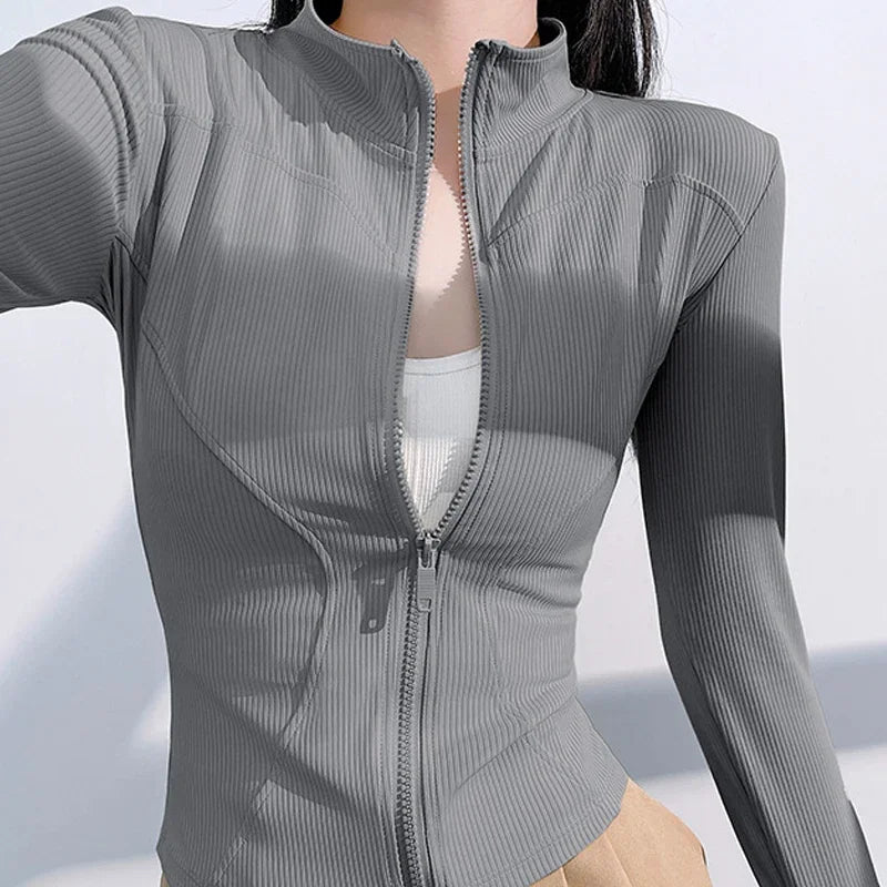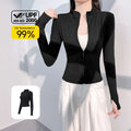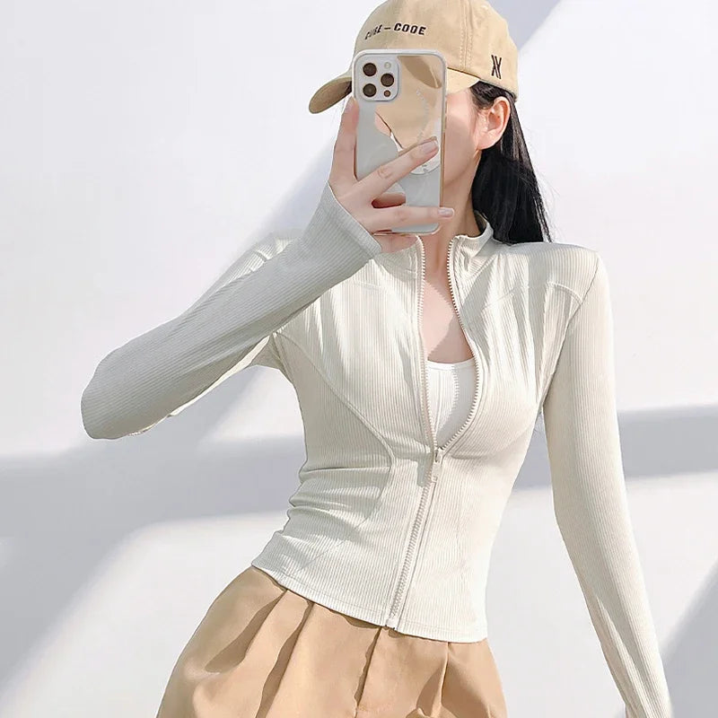 Summer Thin Glutinous Elastic Ribbed Sports Coat Outdoor Slim Fit Sunscreen Long-sleeved Running Zipper Yoga SunProtection Shirt