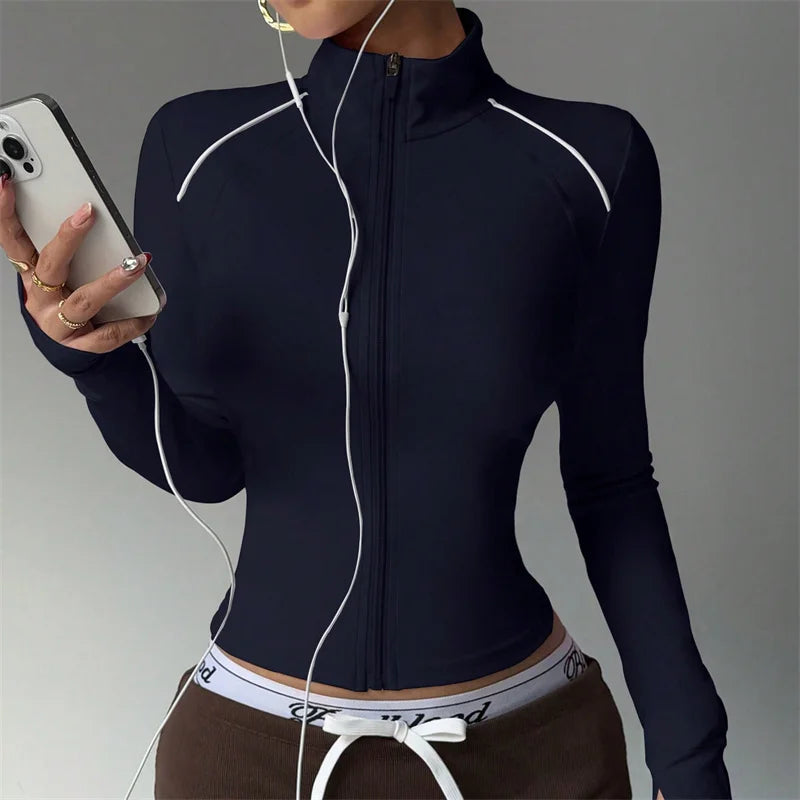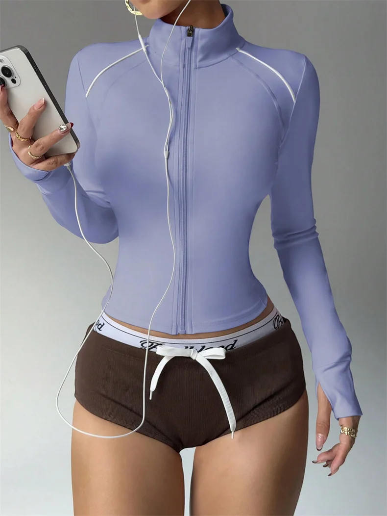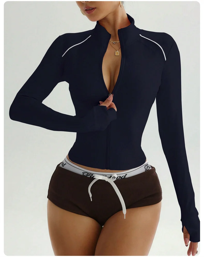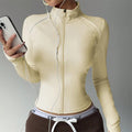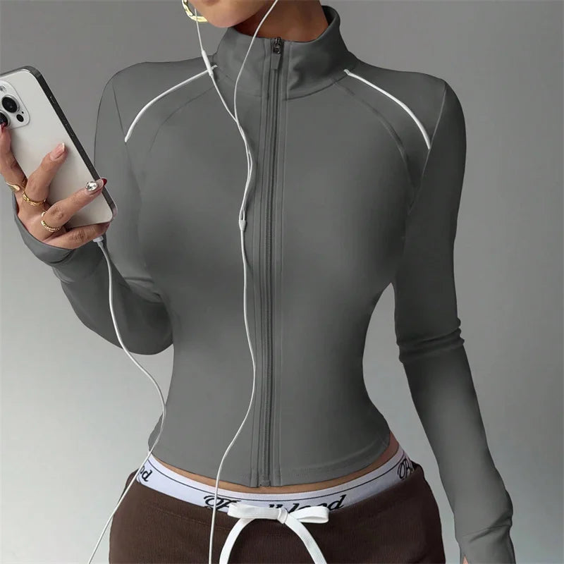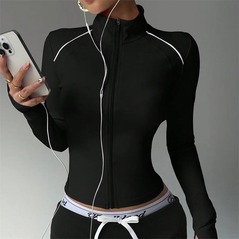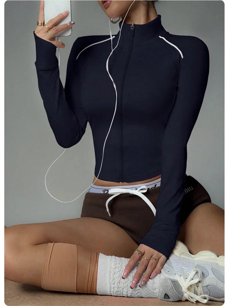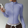 SVEIC Yoga Long Sleeve Jackets Sport Top Zipper Contrast Color Running Workout Training Fitness Sportwear Coat Gym Woman Clothes