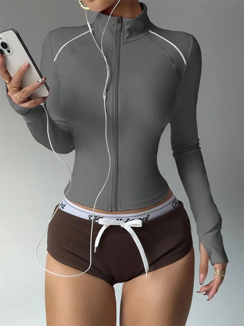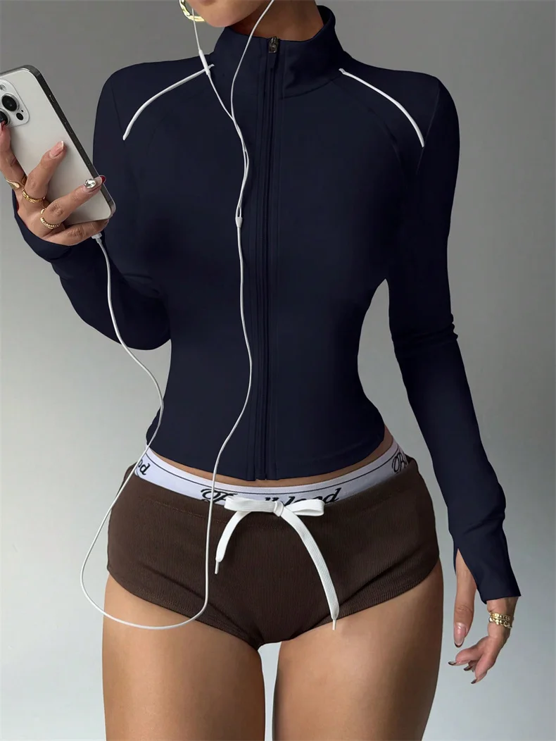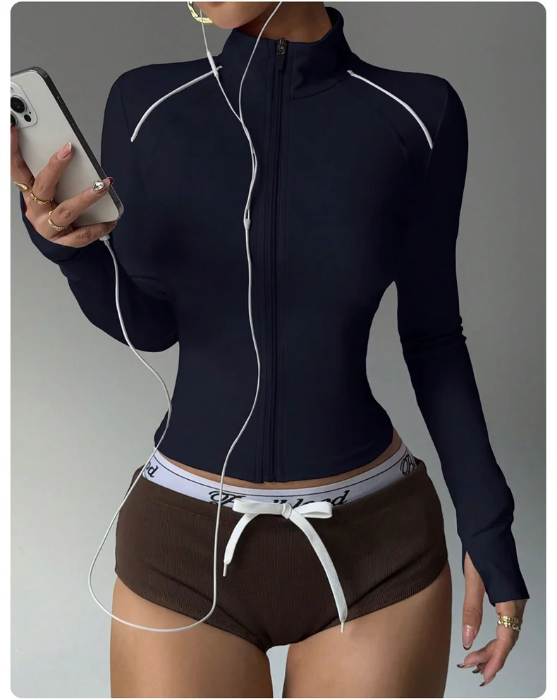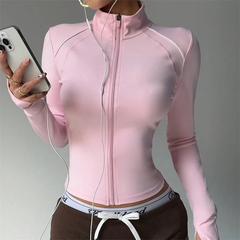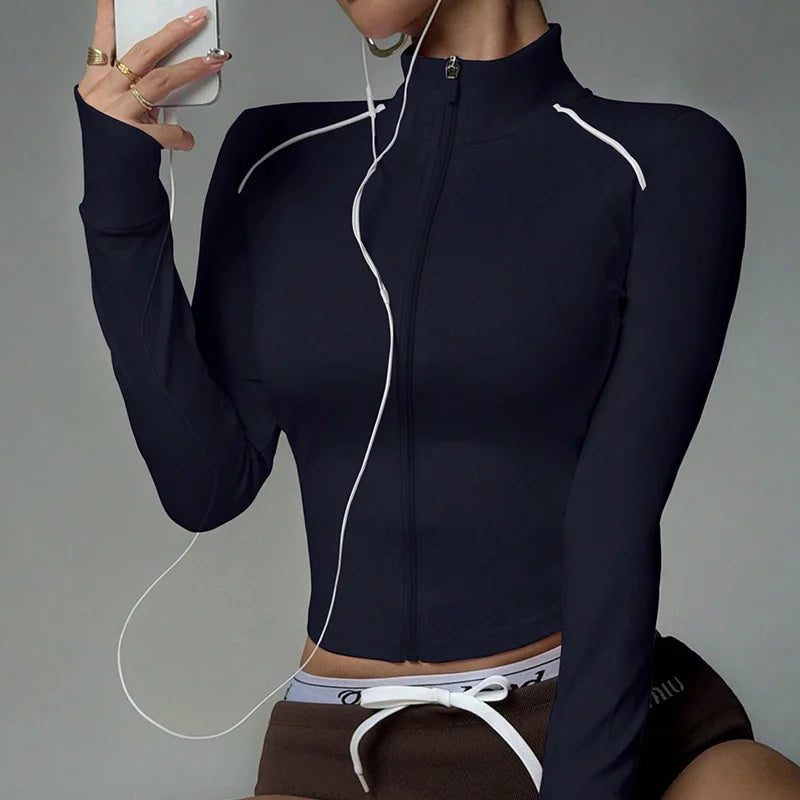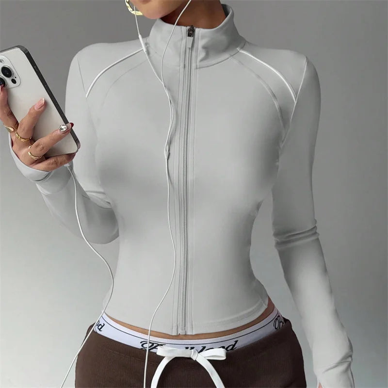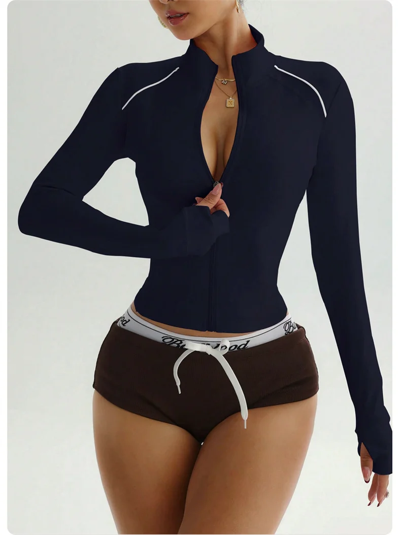 SVEIC Yoga Long Sleeve Jackets Sport Top Zipper Contrast Color Running Workout Training Fitness Sportwear Coat Gym Woman Clothes