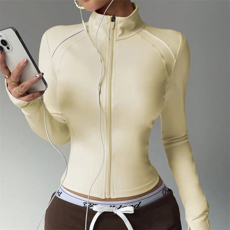 ABOUT:YOGA LONG SLEEVE JACKETS SPORT TOP ZIPPER FITNESS SPORTWEAR COAT GYM WOMAN CLOTHES