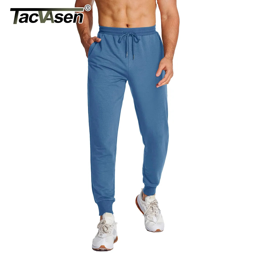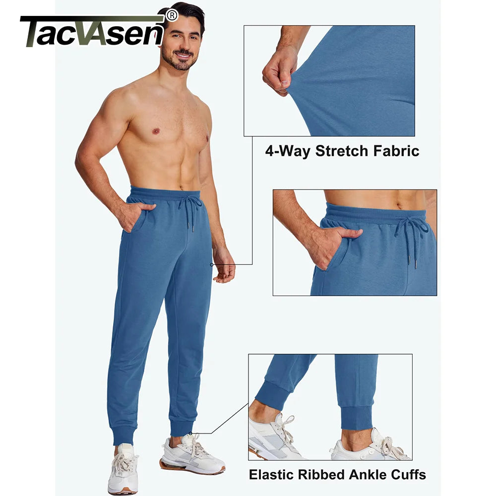TACVASEN Quality Cotton Sweatpants Mens Lightweight Elastic Waist Sport Pants Outdoor Gym Workout Athletic Pants Running Jogger