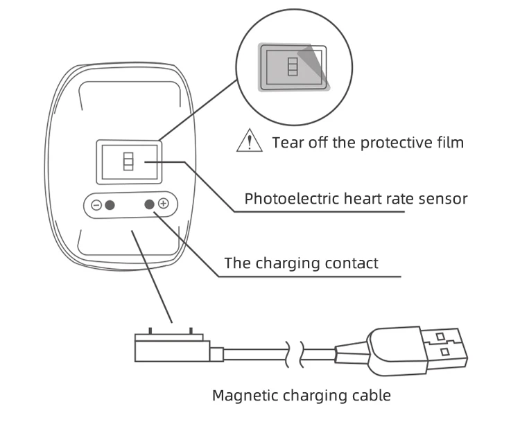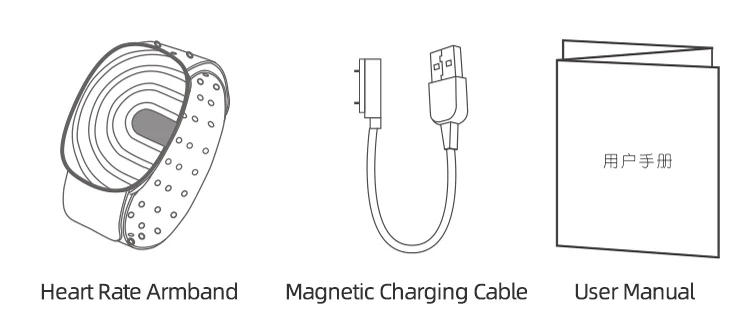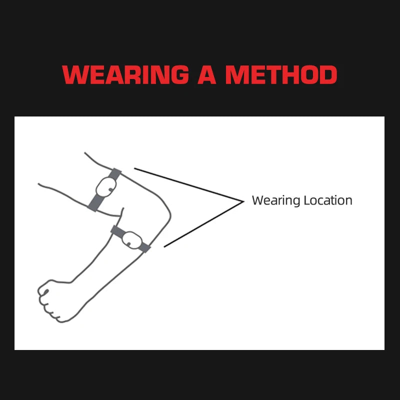 When exercising, please wear the heart rate armband above or below the elbow joint, and make sure that the photoelectric sensor on the back is close to the skin.You can adjust the tightness of the armband according to your own conditions. It should not be too tight, otherwise it will affect the normal blood circulation.