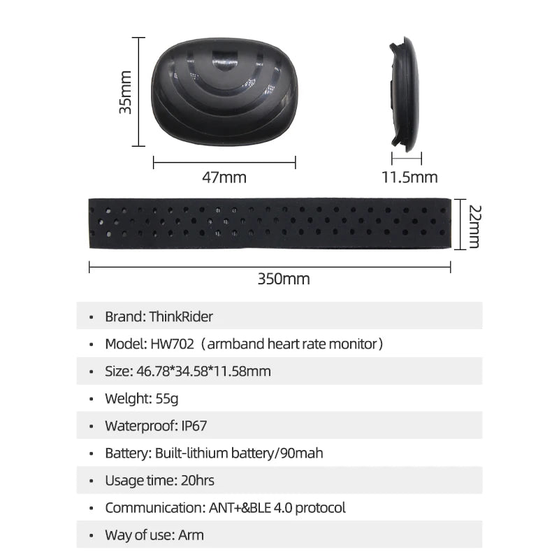 ThinkRider ANT+BLE Heart Rate Monitor Riding Running Outdoor Sports Armband Heart Rate Monitor HRM HW702 IP67
