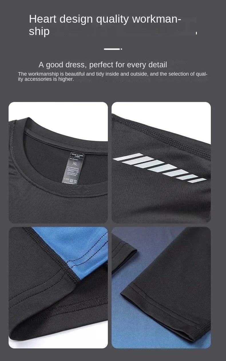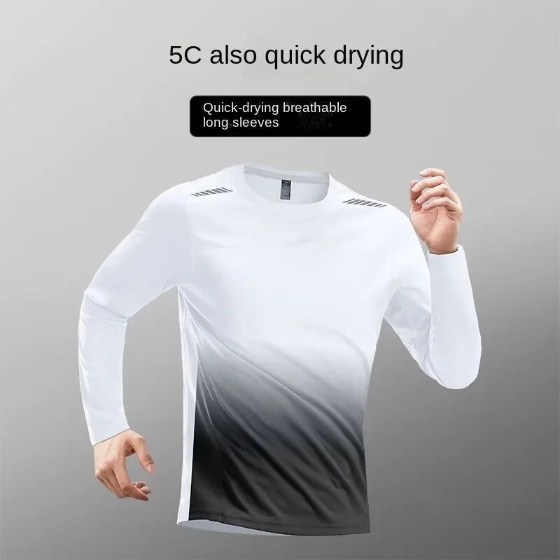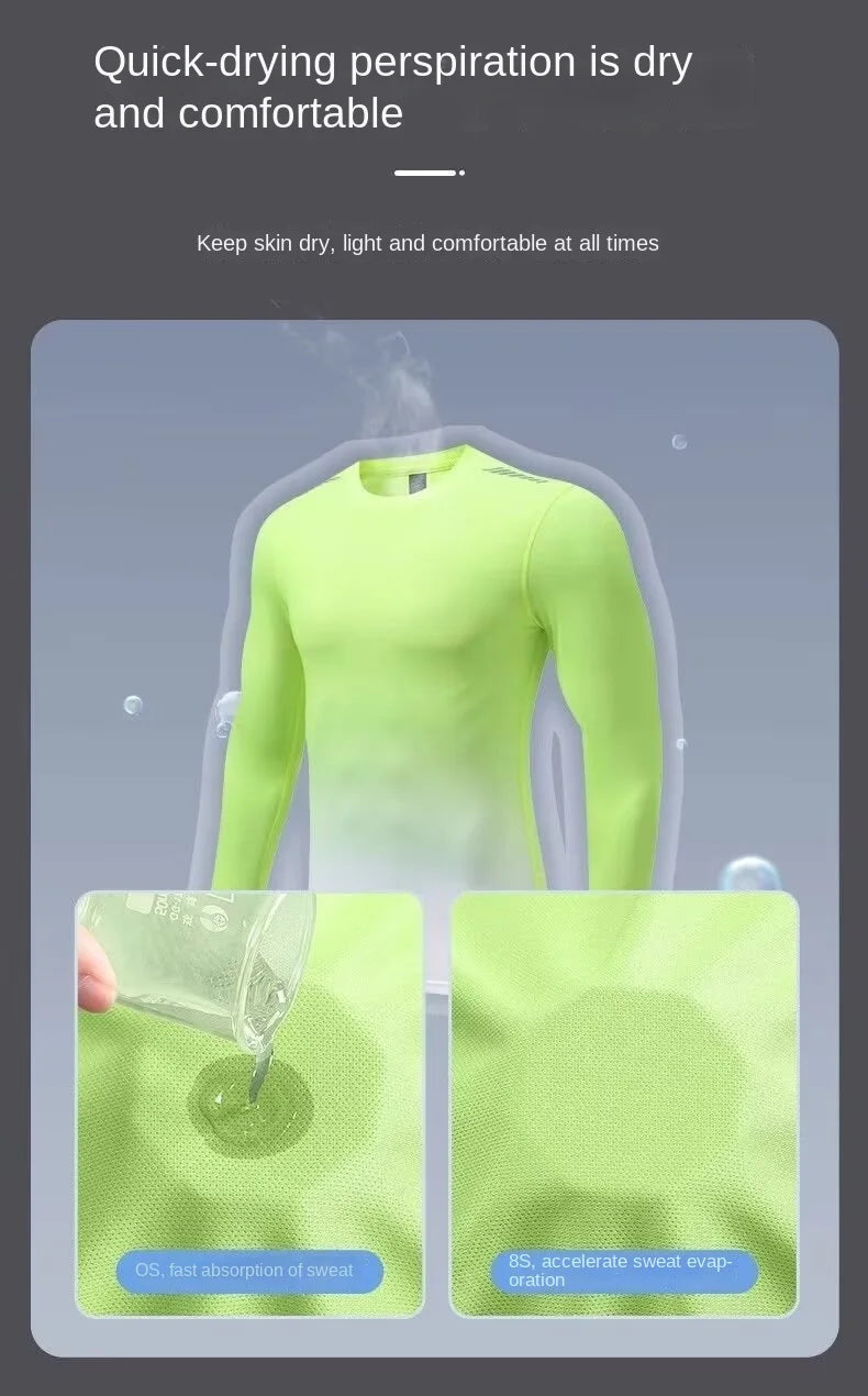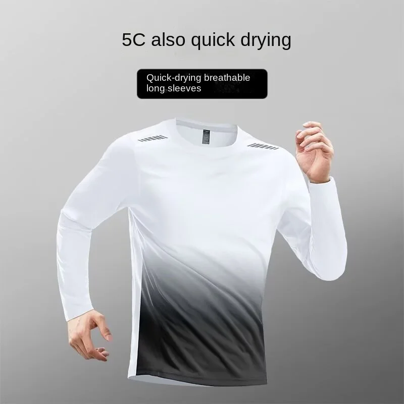 Trendy, simple, sunscreen, breathable, quick drying clothes, long sleeved men's tight fitting clothes, running training, sports,