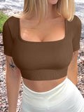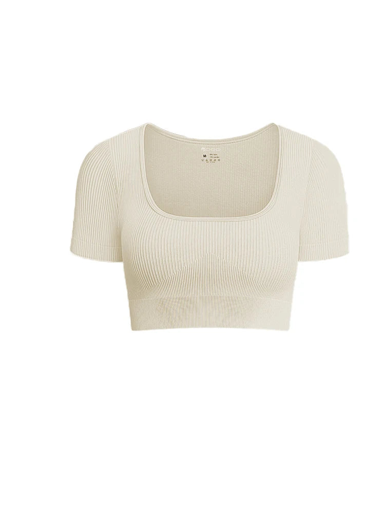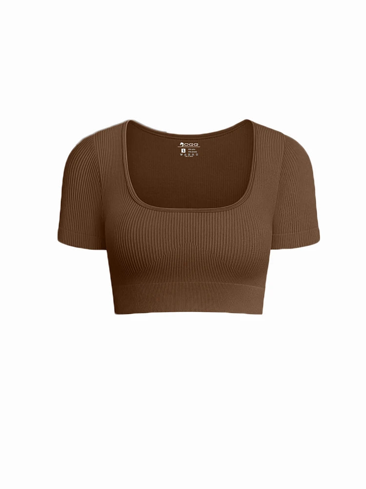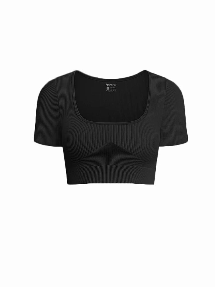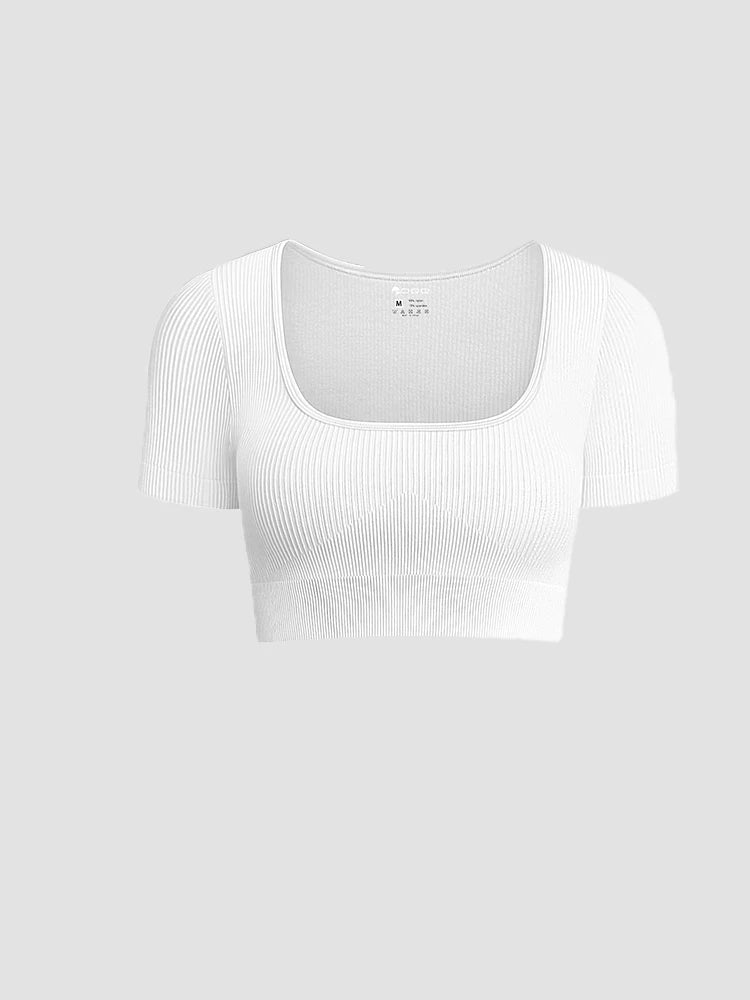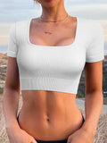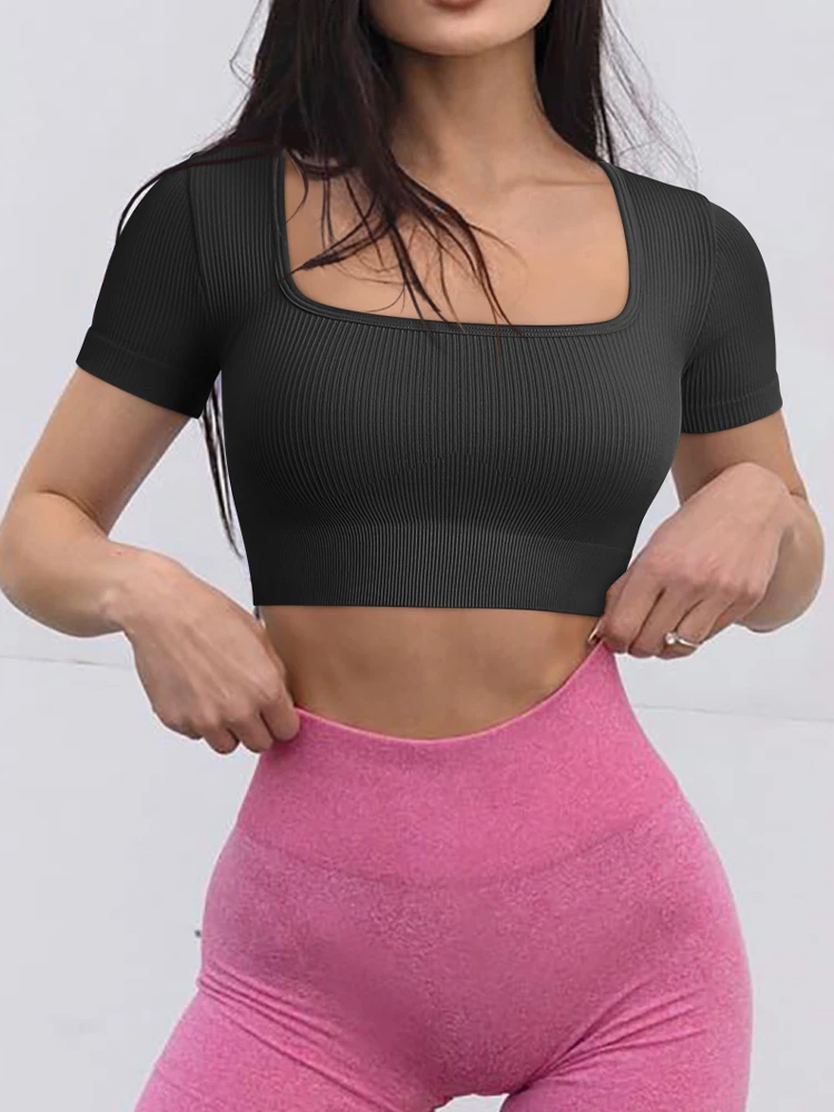 U-Neck Crop Top Solid Color High Waist Top Basic Sexy Gym Sport Fitness Running Top