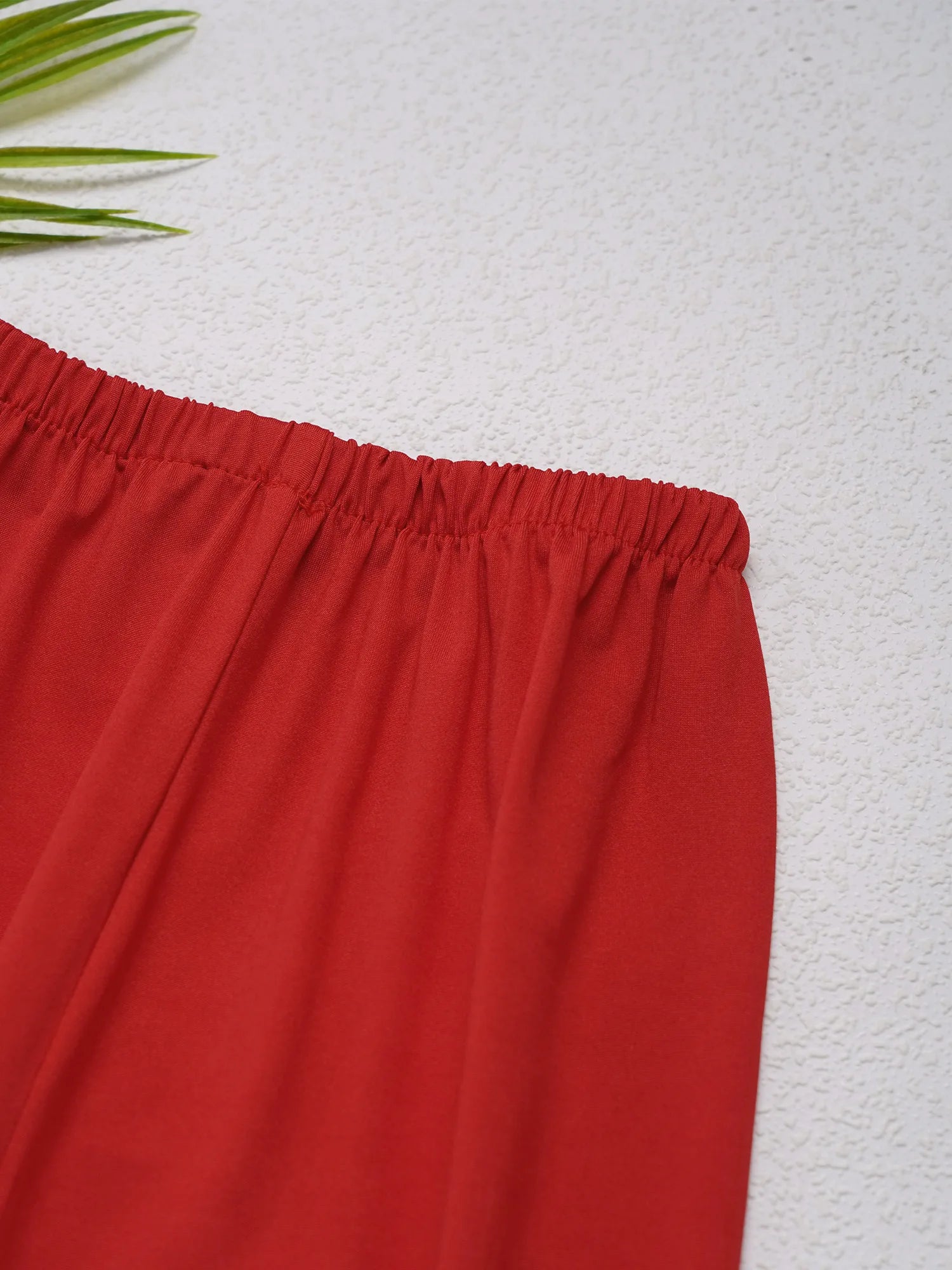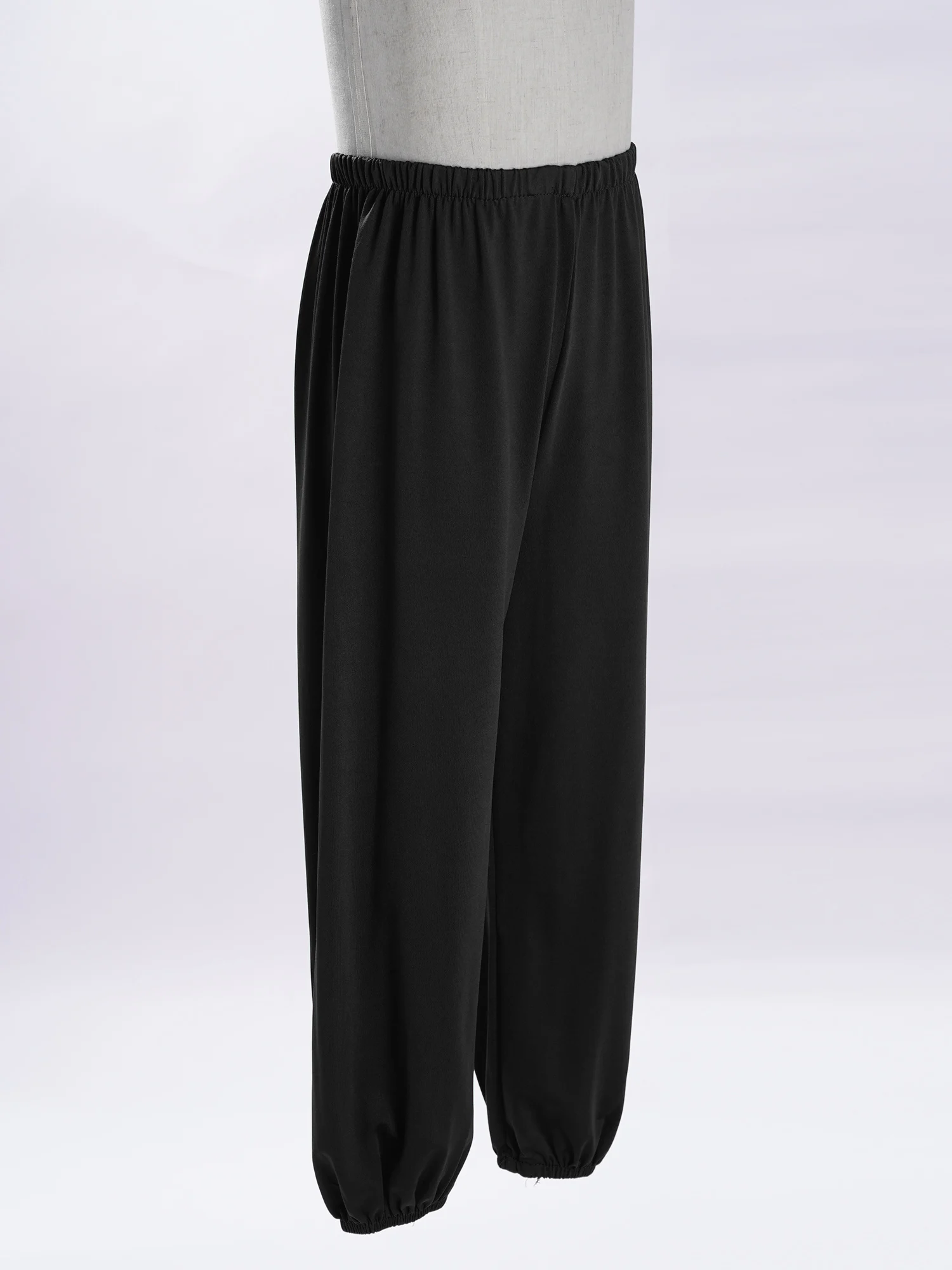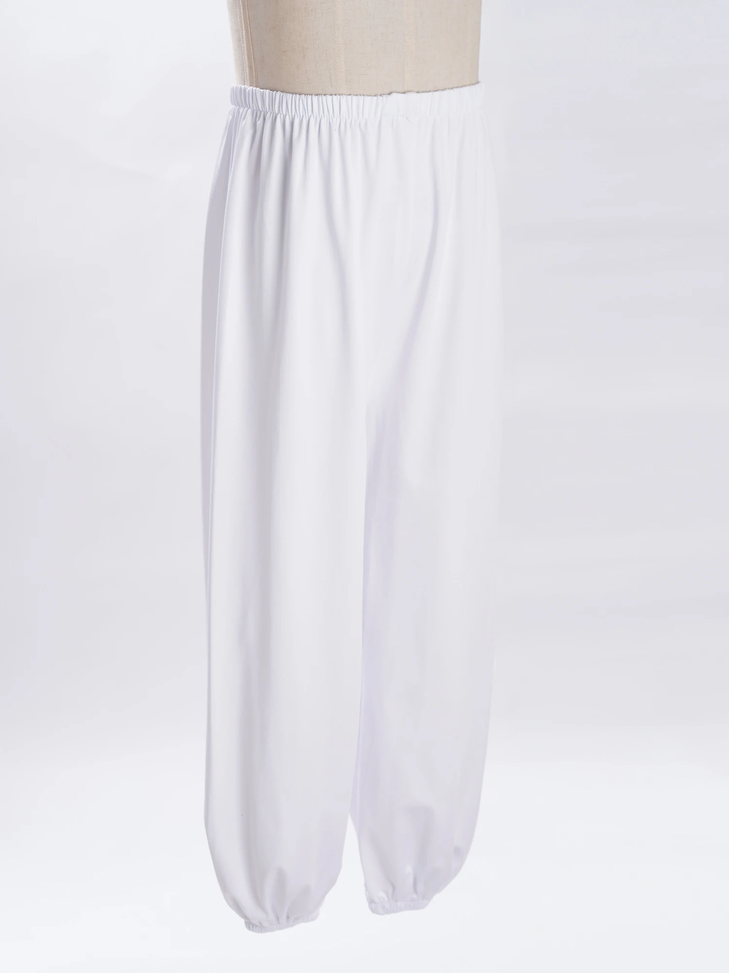 Pants are designed with elastic waistband and leg openings, easy to put on or take off.