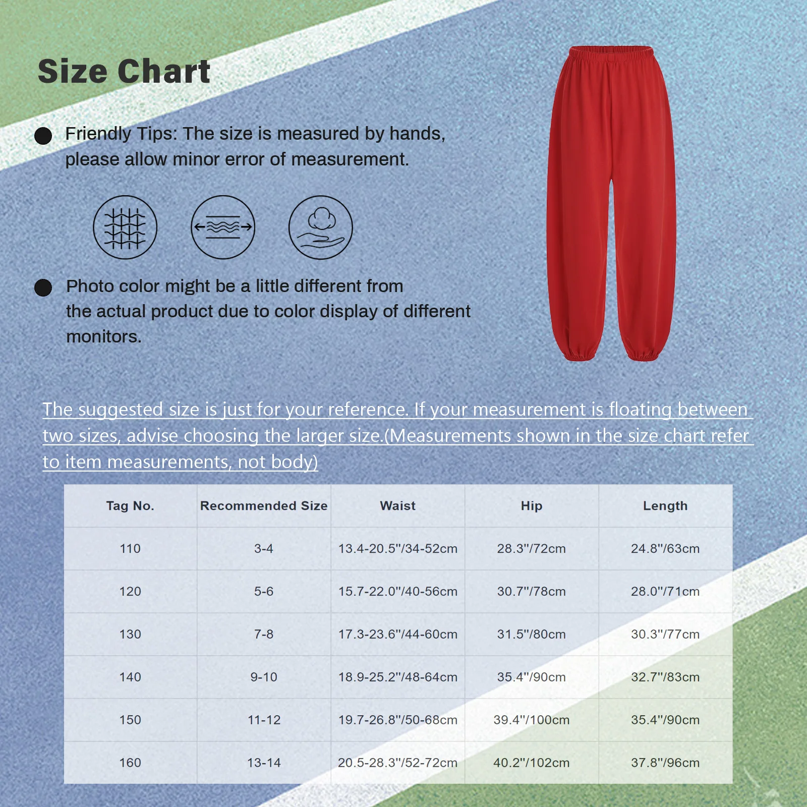 Unisex Kids Kung Fu Pants Loose Pants for Boys Girls Fashion Daily Wear Child Fighting Trousers for Taichi Martial Art Practice