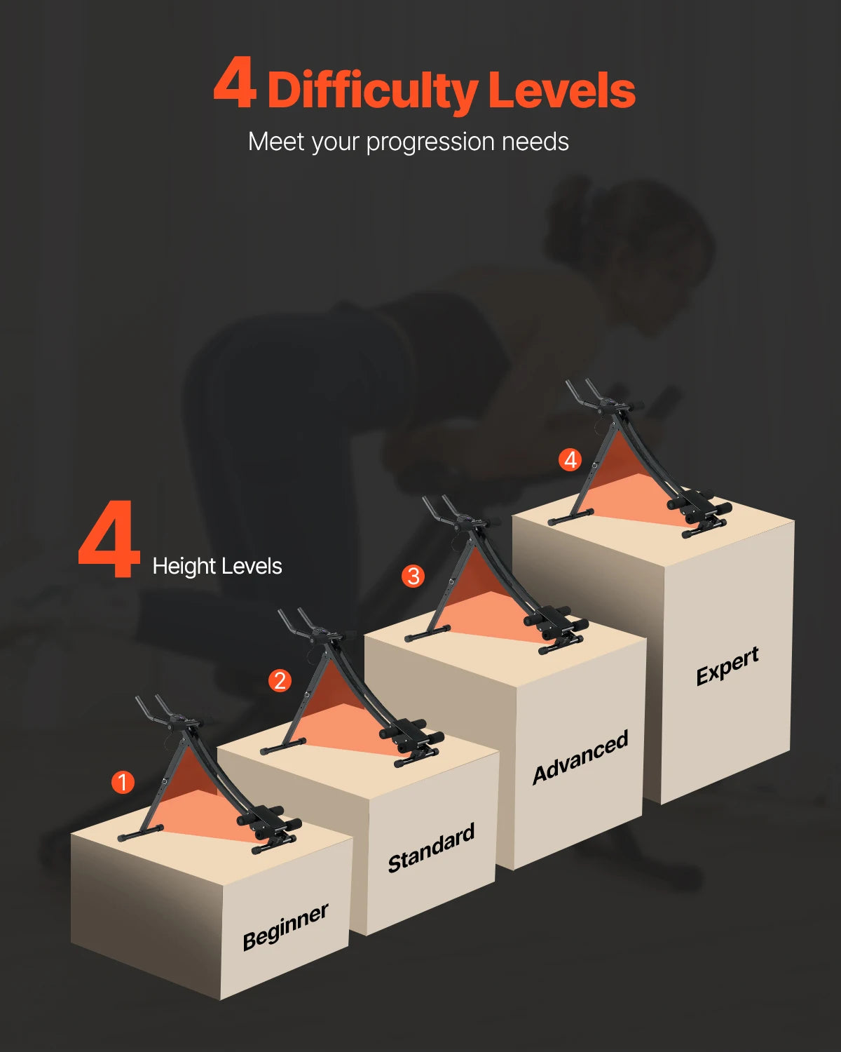- Adjustable Difficulty: With 4 height adjustments, this home gym strength training ab cruncher caters to both beginner and advanced training needs, continuously providing varying intensity for the abs while accommodating different heights and strength levels. The higher the setting, the greater the difficulty.