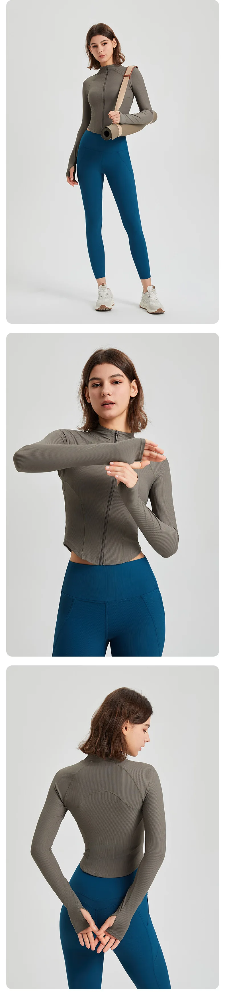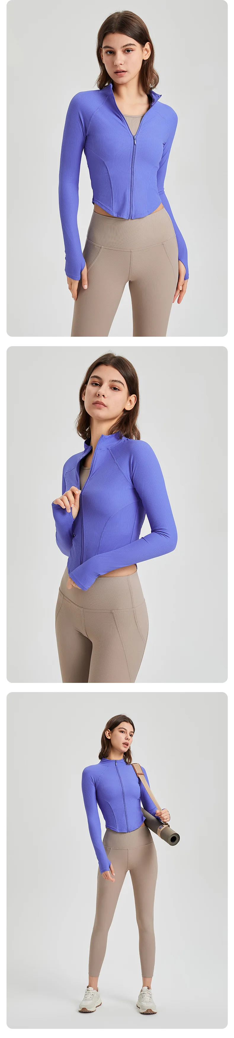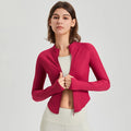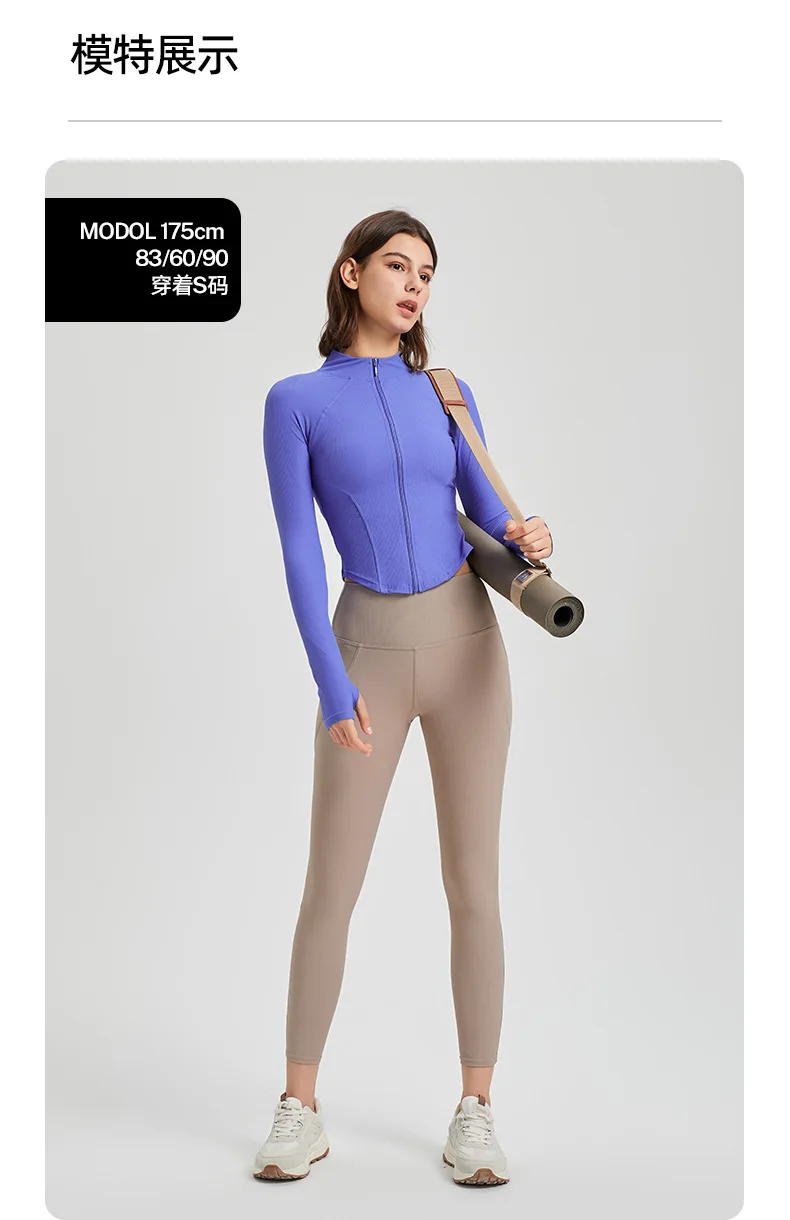 Women Sport Jackets Zipper Slim Yoga Jacket Long Sleeves Running Sweatshirts Textured Sportwear Curved Hem Gym Fitness Tops Coat
