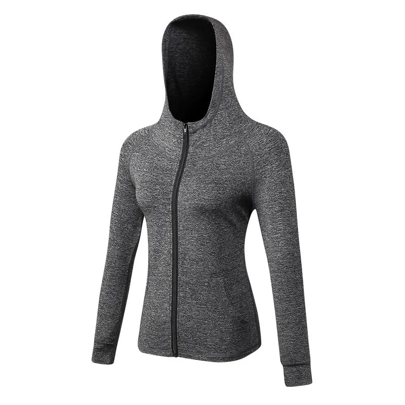 Women Sport Running Jacket Zipper Yoga Coat Training Fitness Yoga Sport Running Hoodies Gym Workout Hooded Top