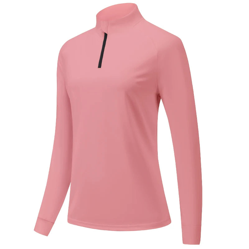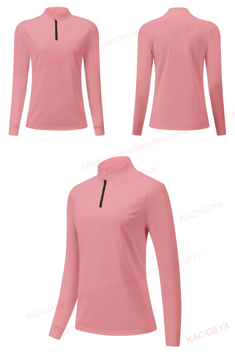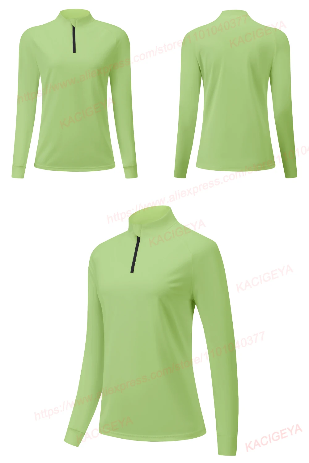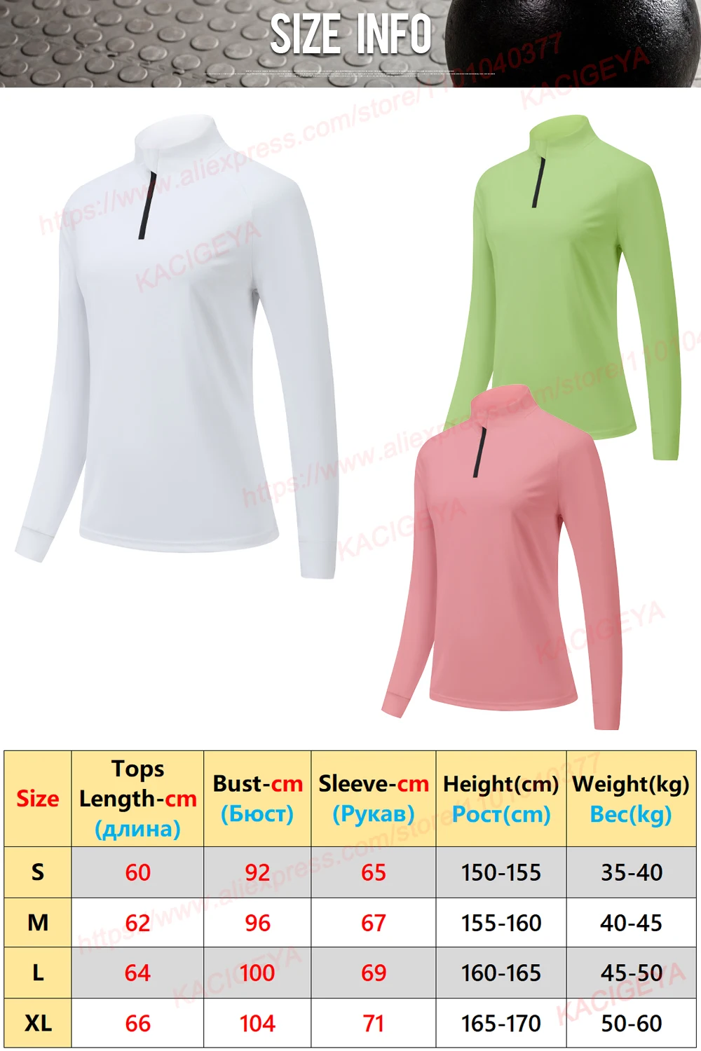 Women Sports Long Sleeve Running Zipper Collar Fitness Outdoor Hiking Bike Shirts Training Causal Workout Activewear Clothes