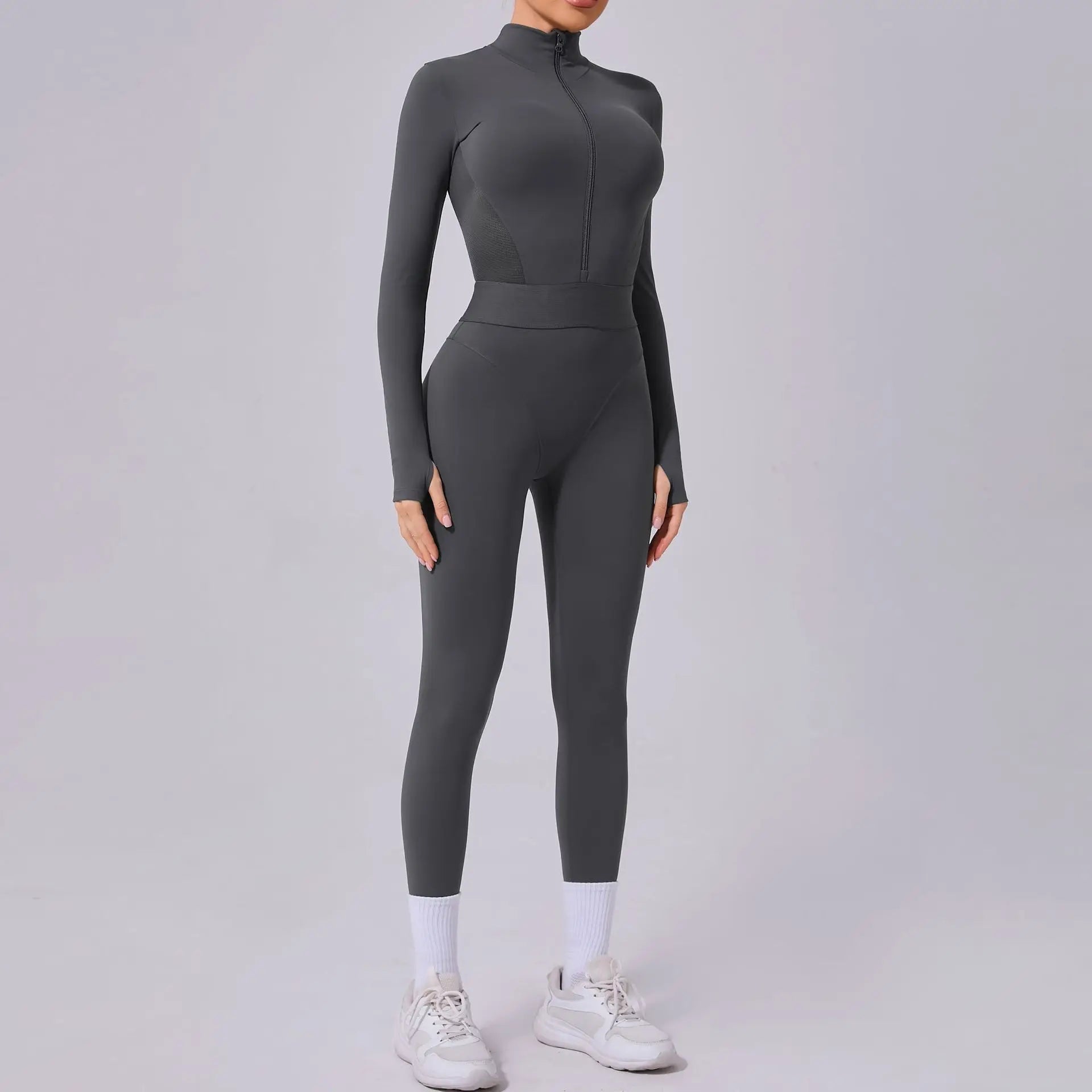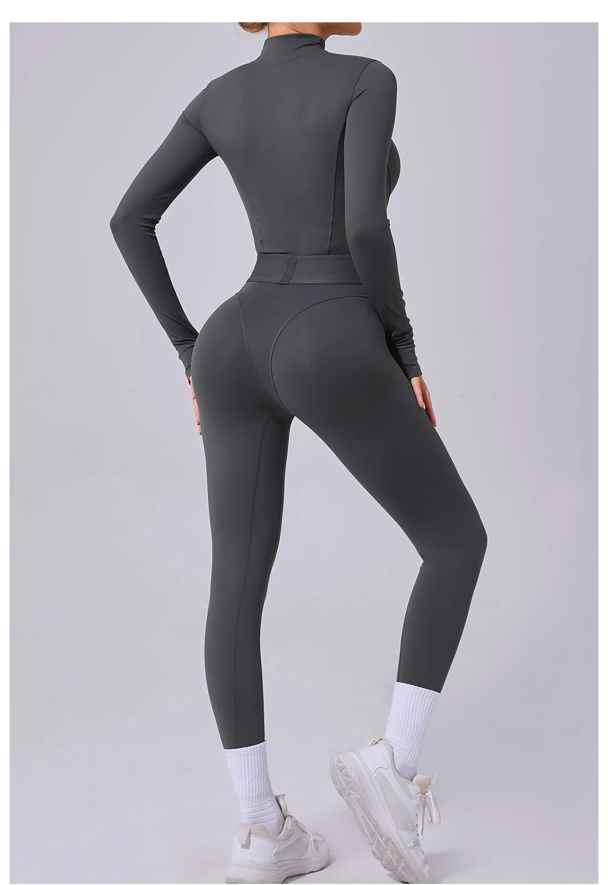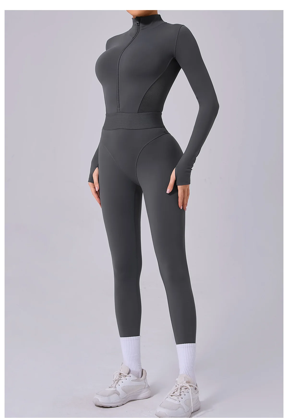 Women Tracksuit Yoga Set One-piece Suit Female Rompers Quick Dry Yoga Clothing Workout Bodysuits Sports Jumpsuit Long Sleeved