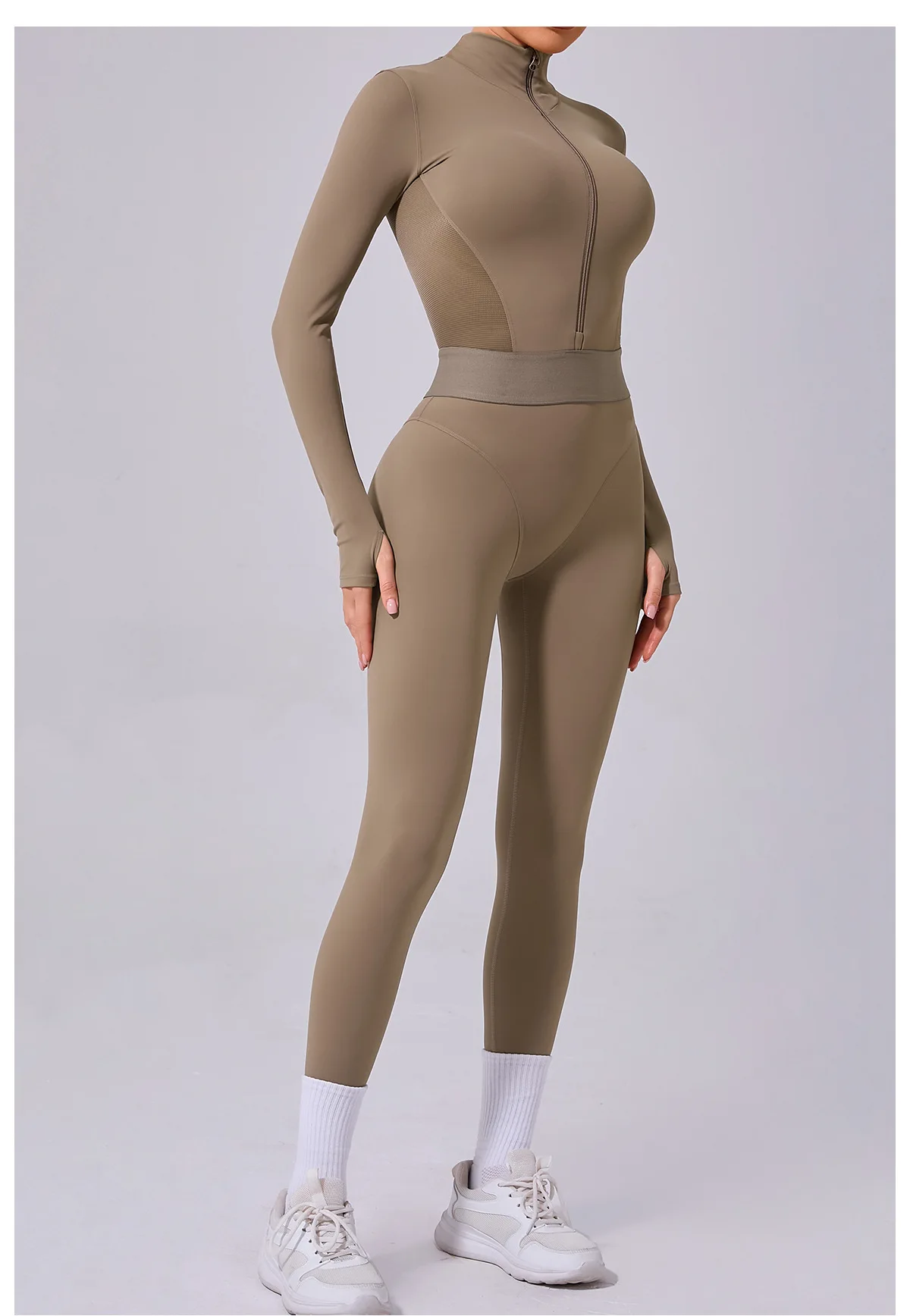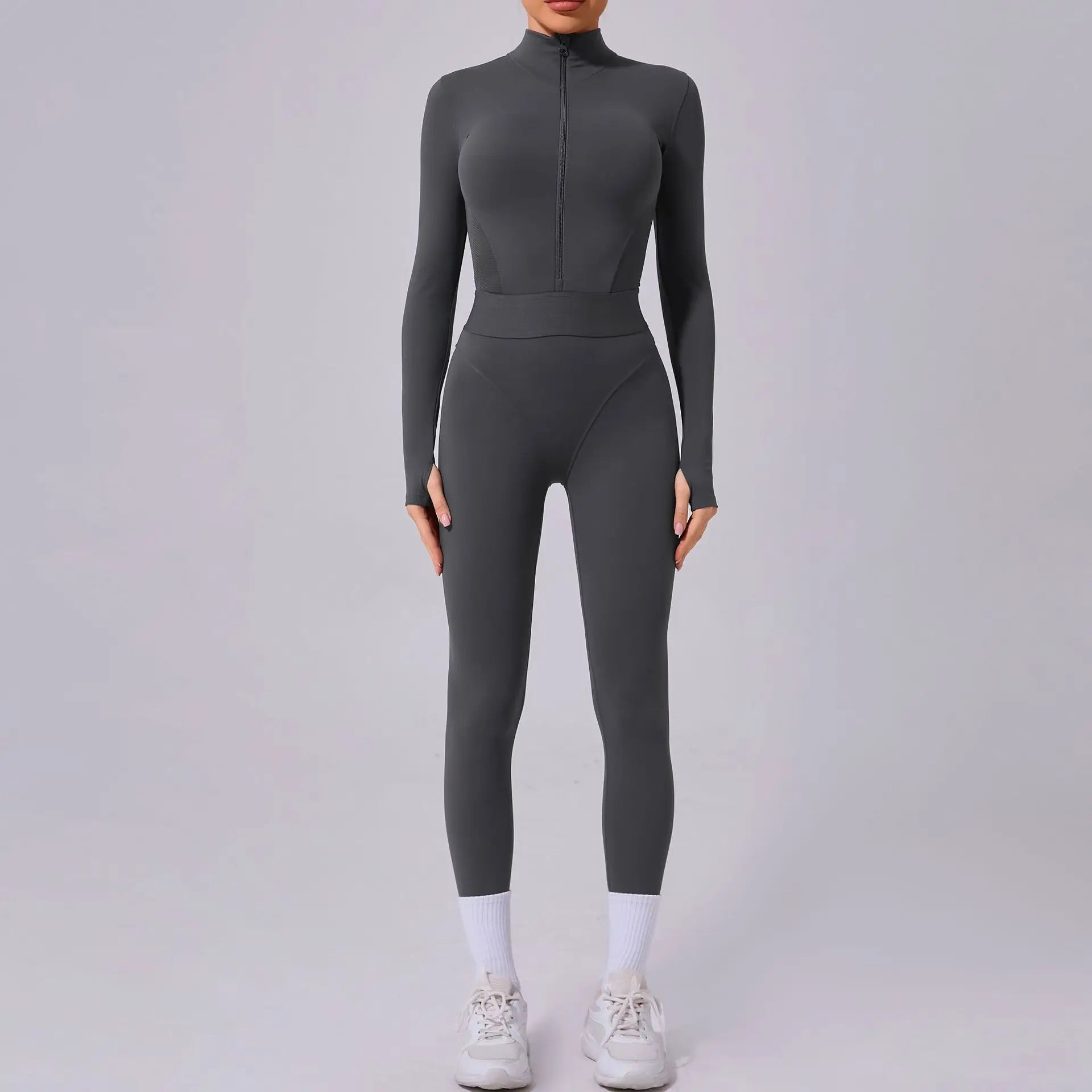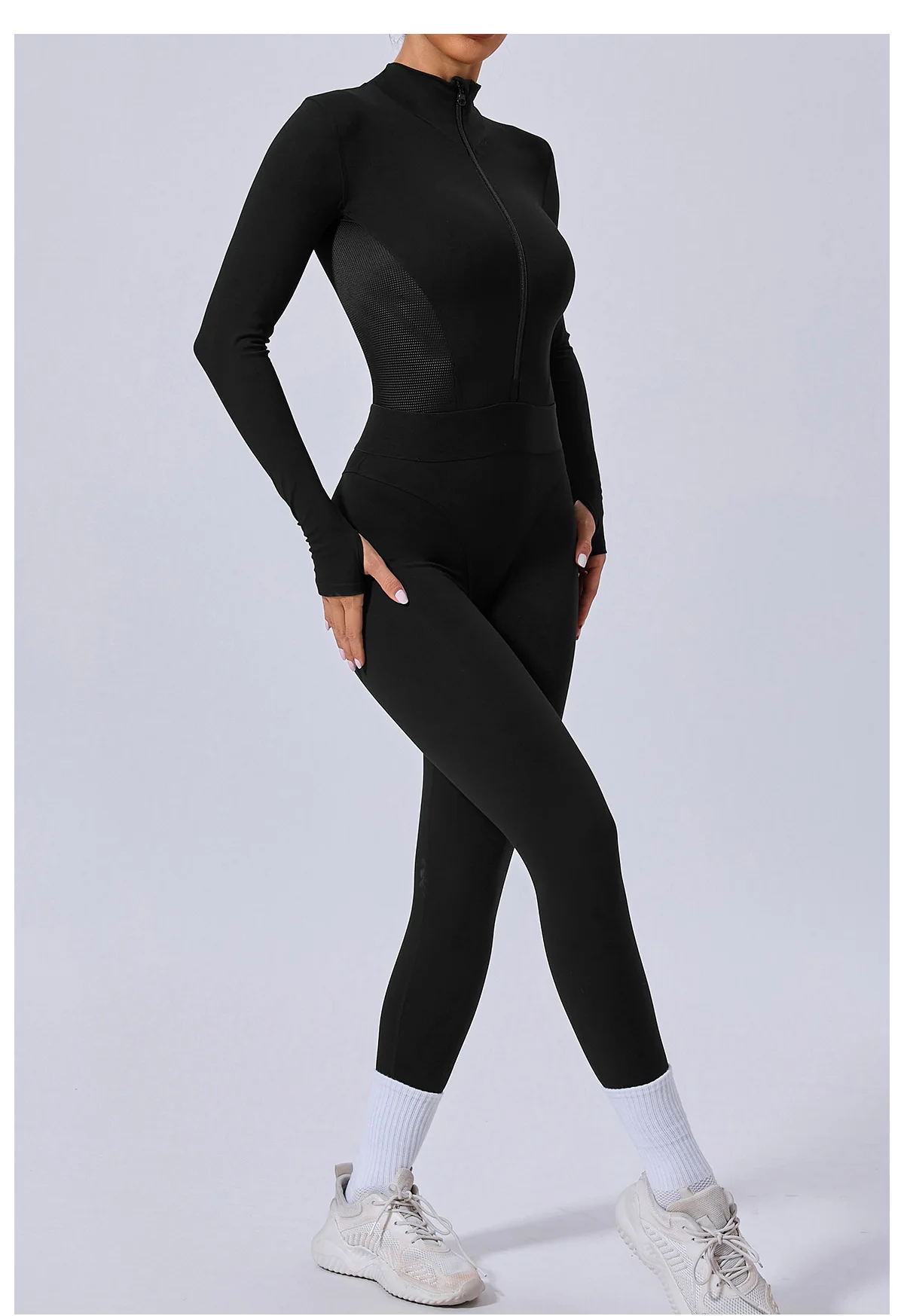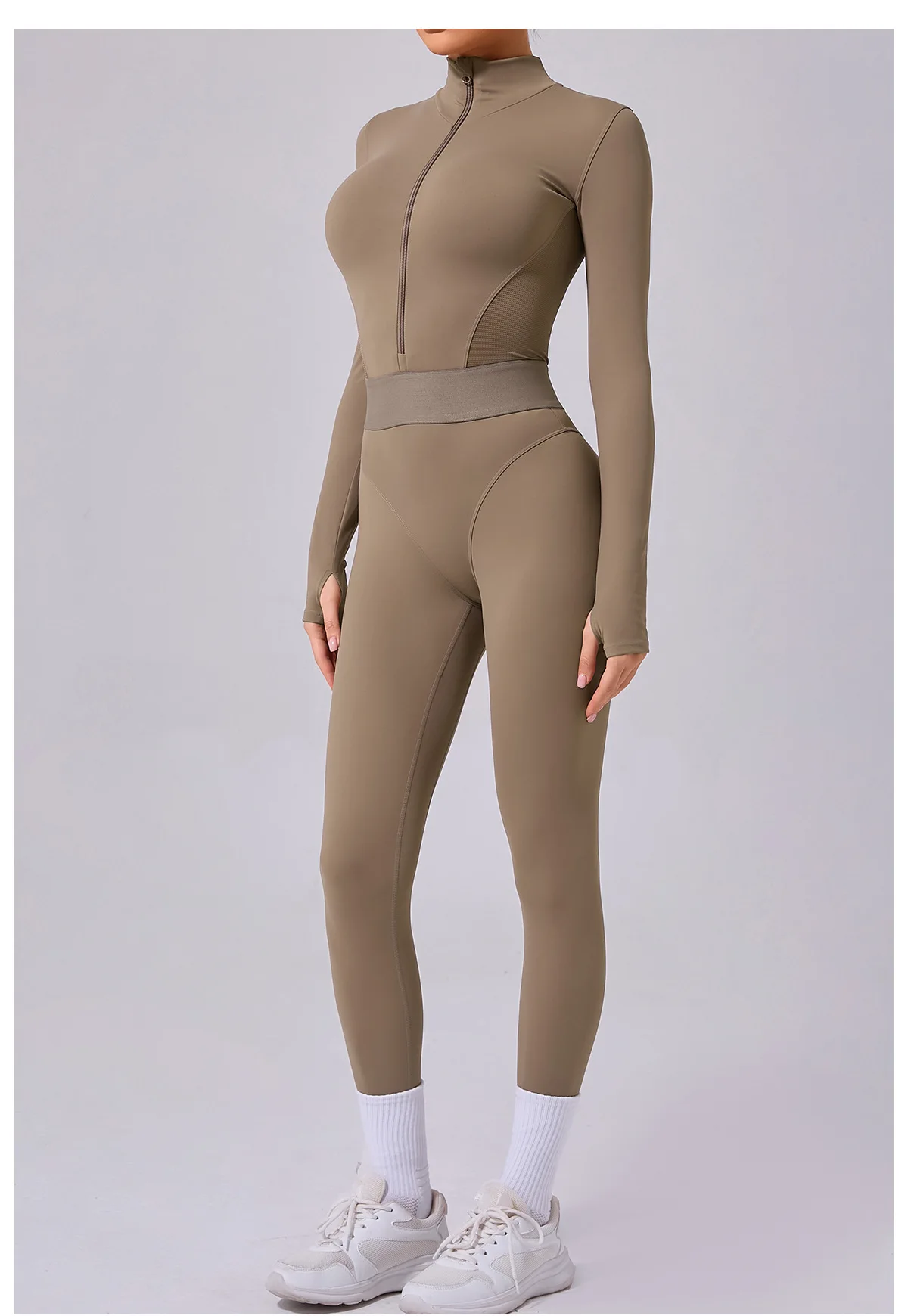 Women Tracksuit Yoga Set One-piece Suit Female Rompers Quick Dry Yoga Clothing Workout Bodysuits Sports Jumpsuit Long Sleeved