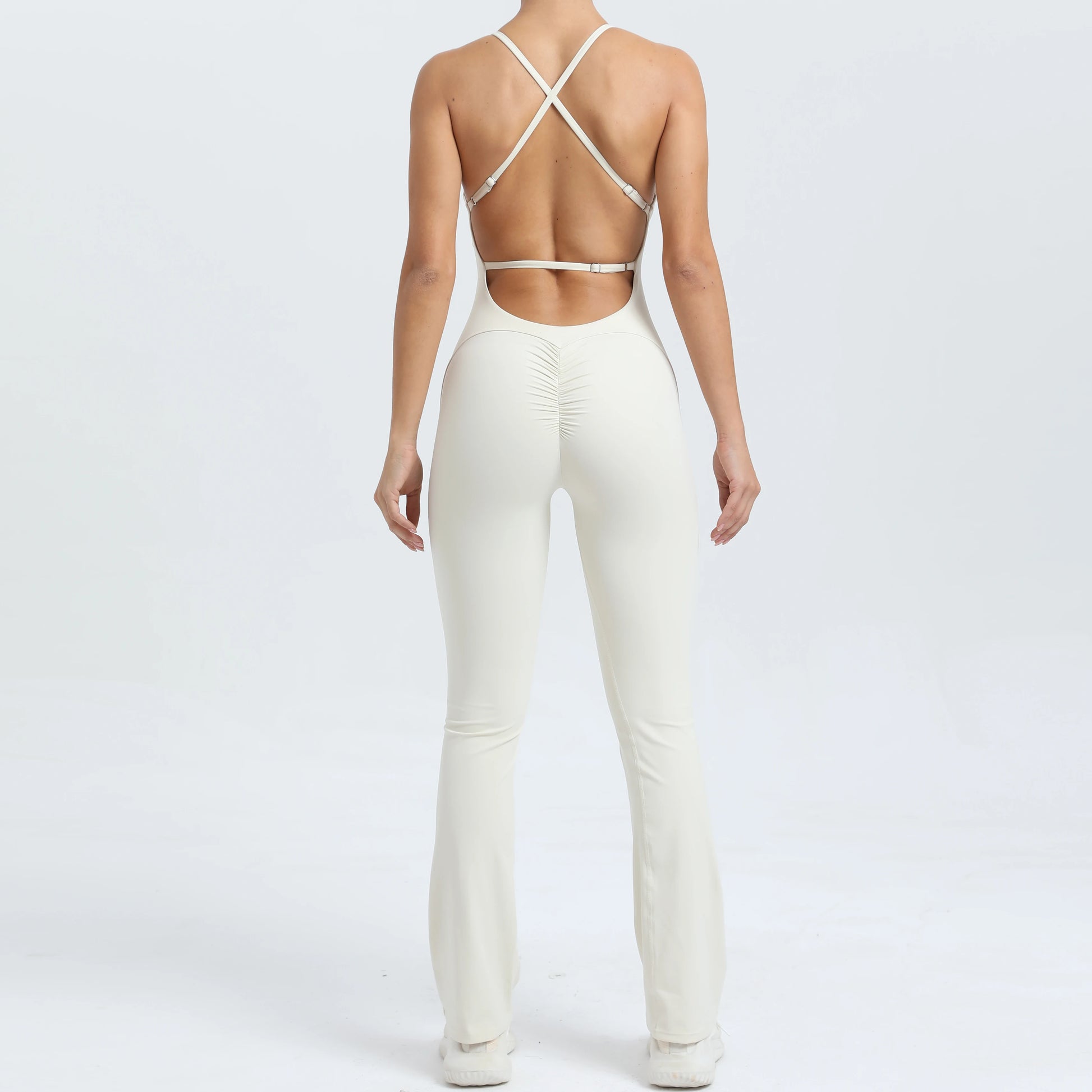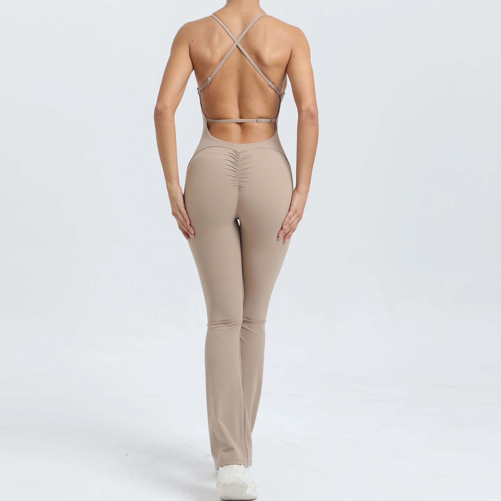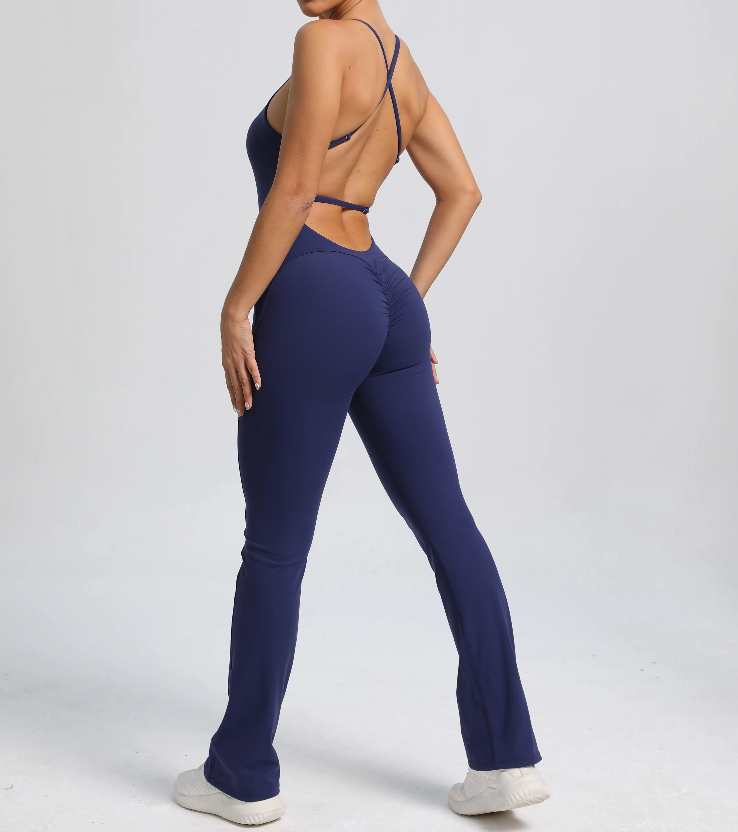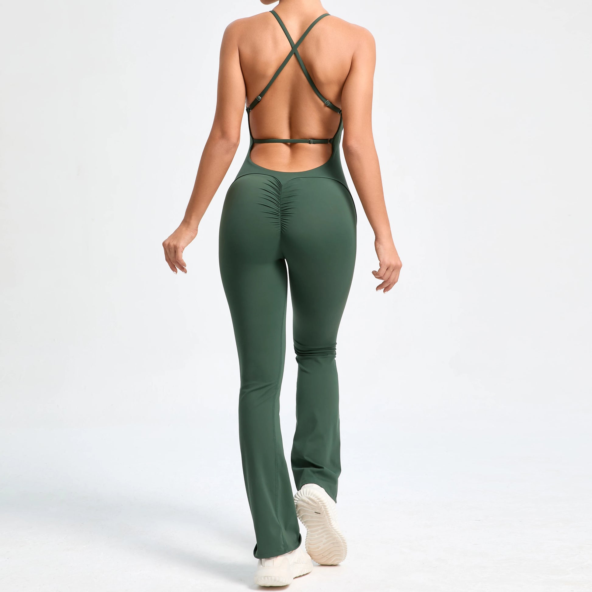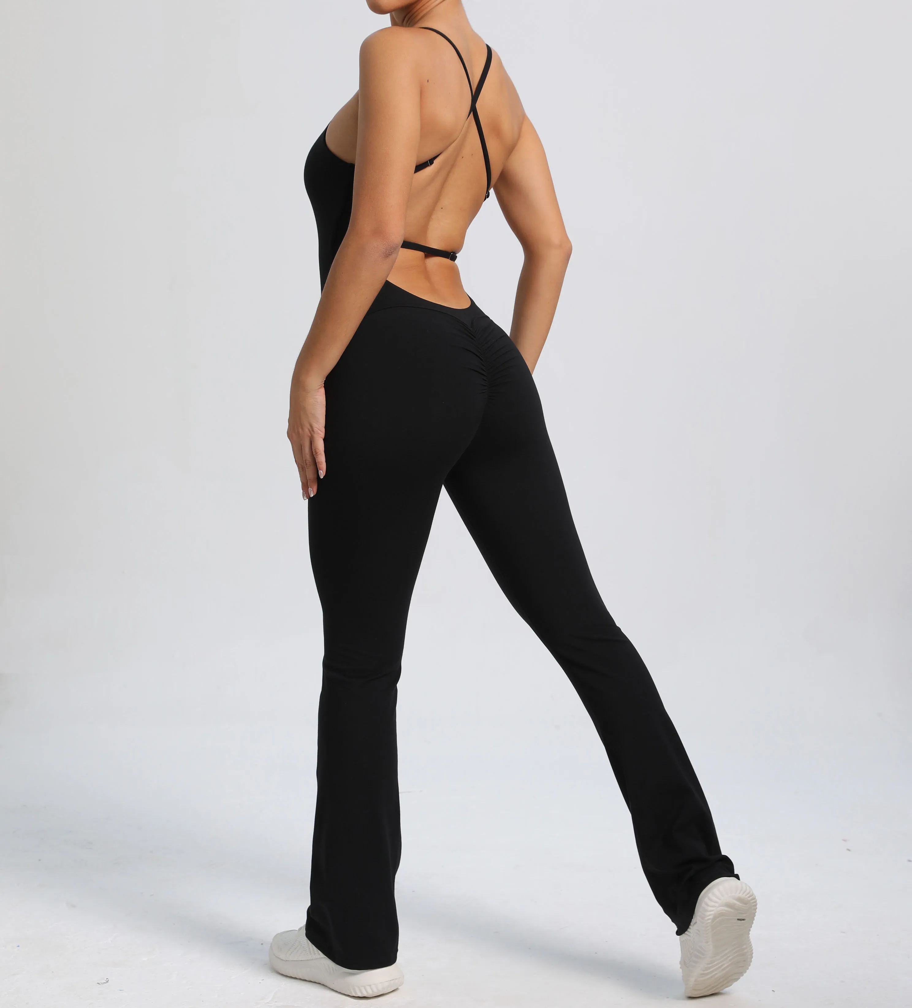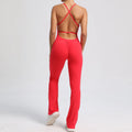 Women Workout Jumpsuit One Piece Fitness Training Yoga Suit Butt Backless Gym Bodysuit Stretch Women Sport Flare Playsuit