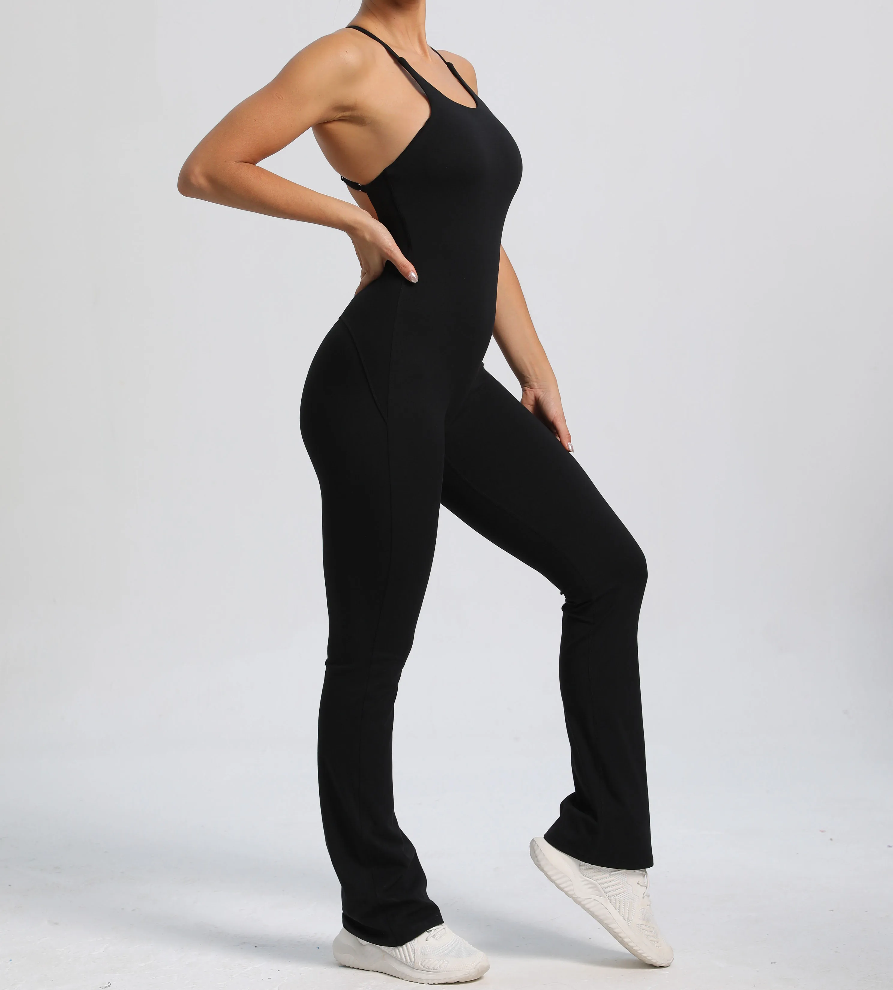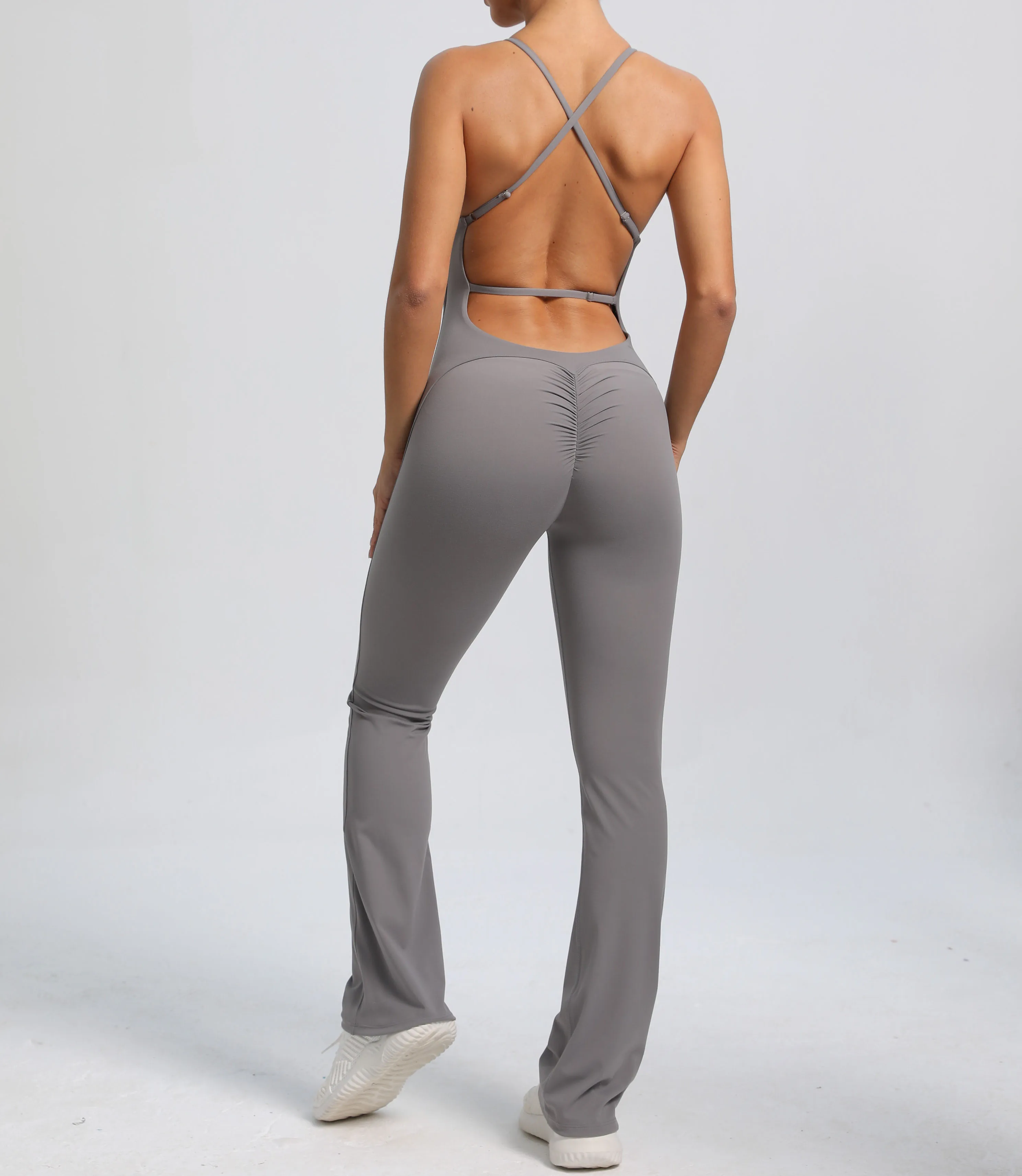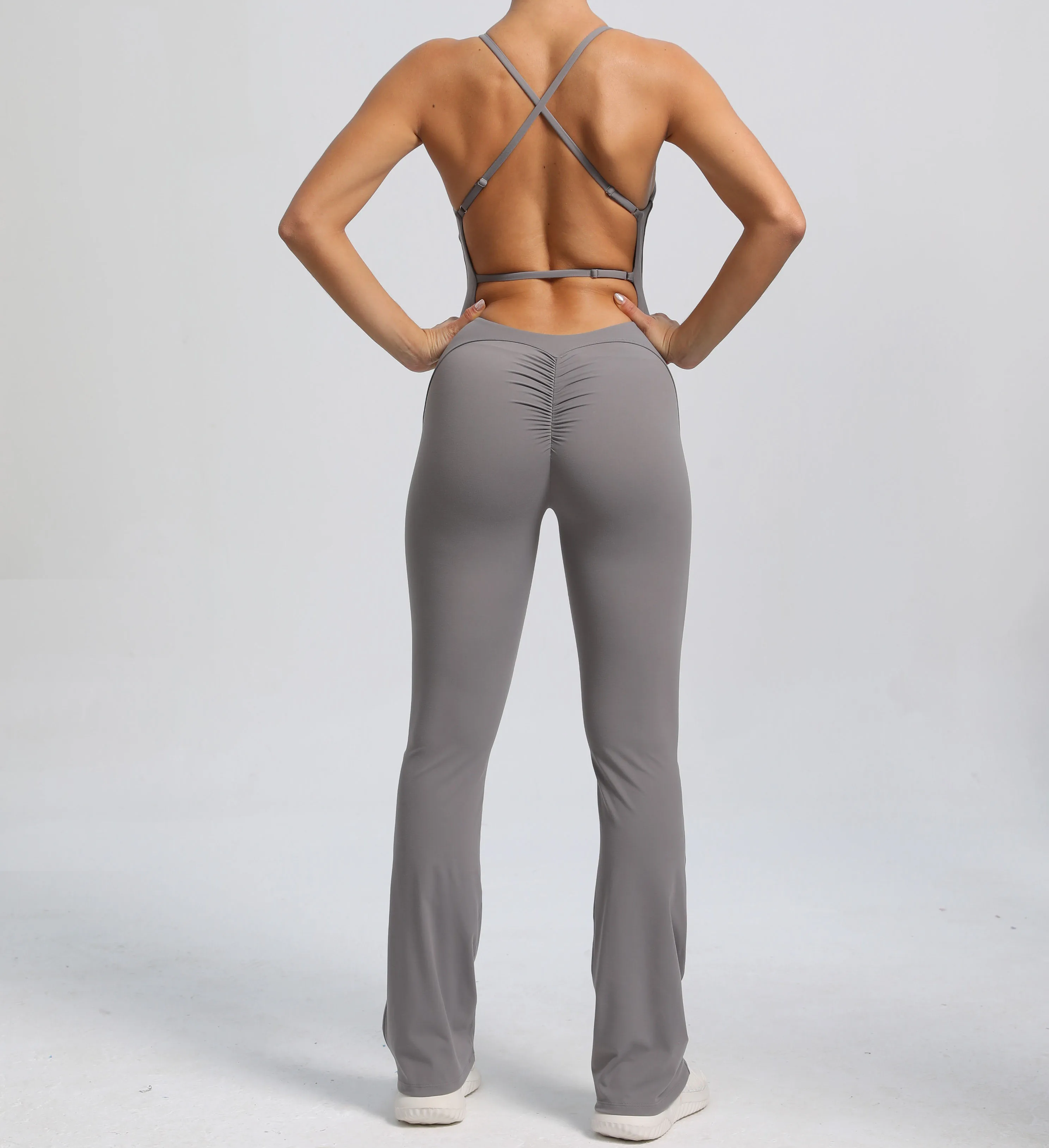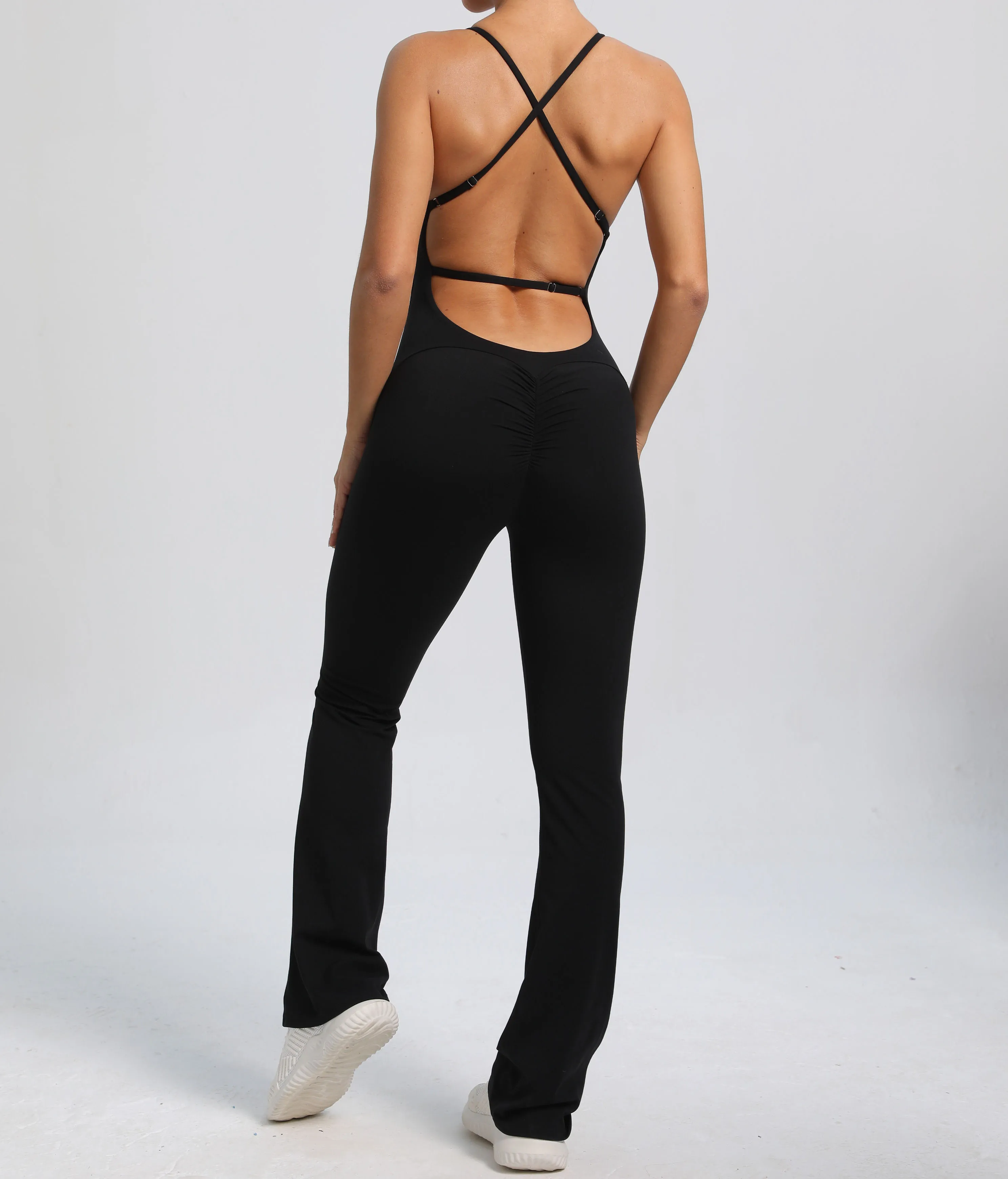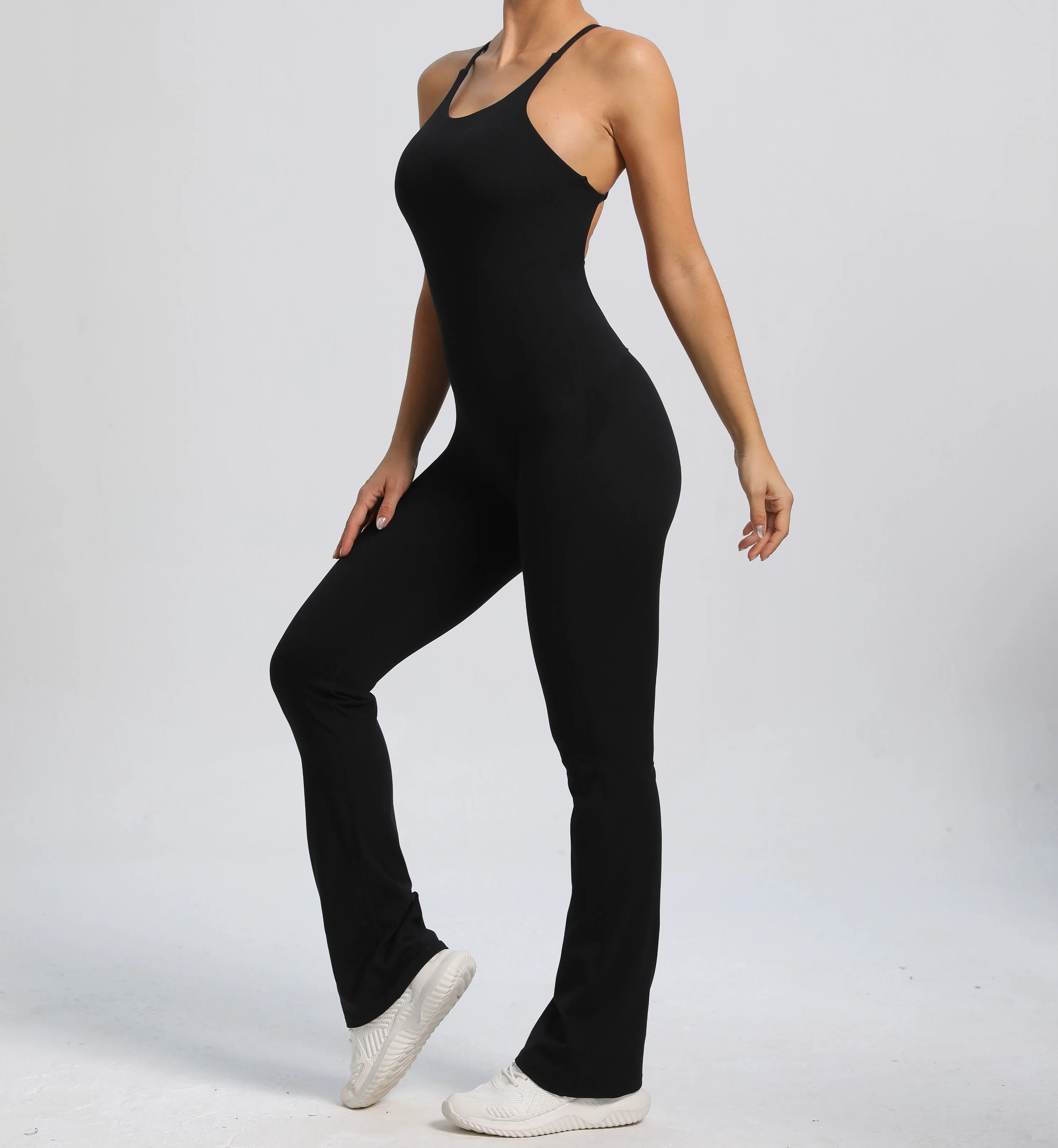 Women Workout Jumpsuit One Piece Fitness Training Yoga Suit Butt Backless Gym Bodysuit Stretch Women Sport Flare Playsuit