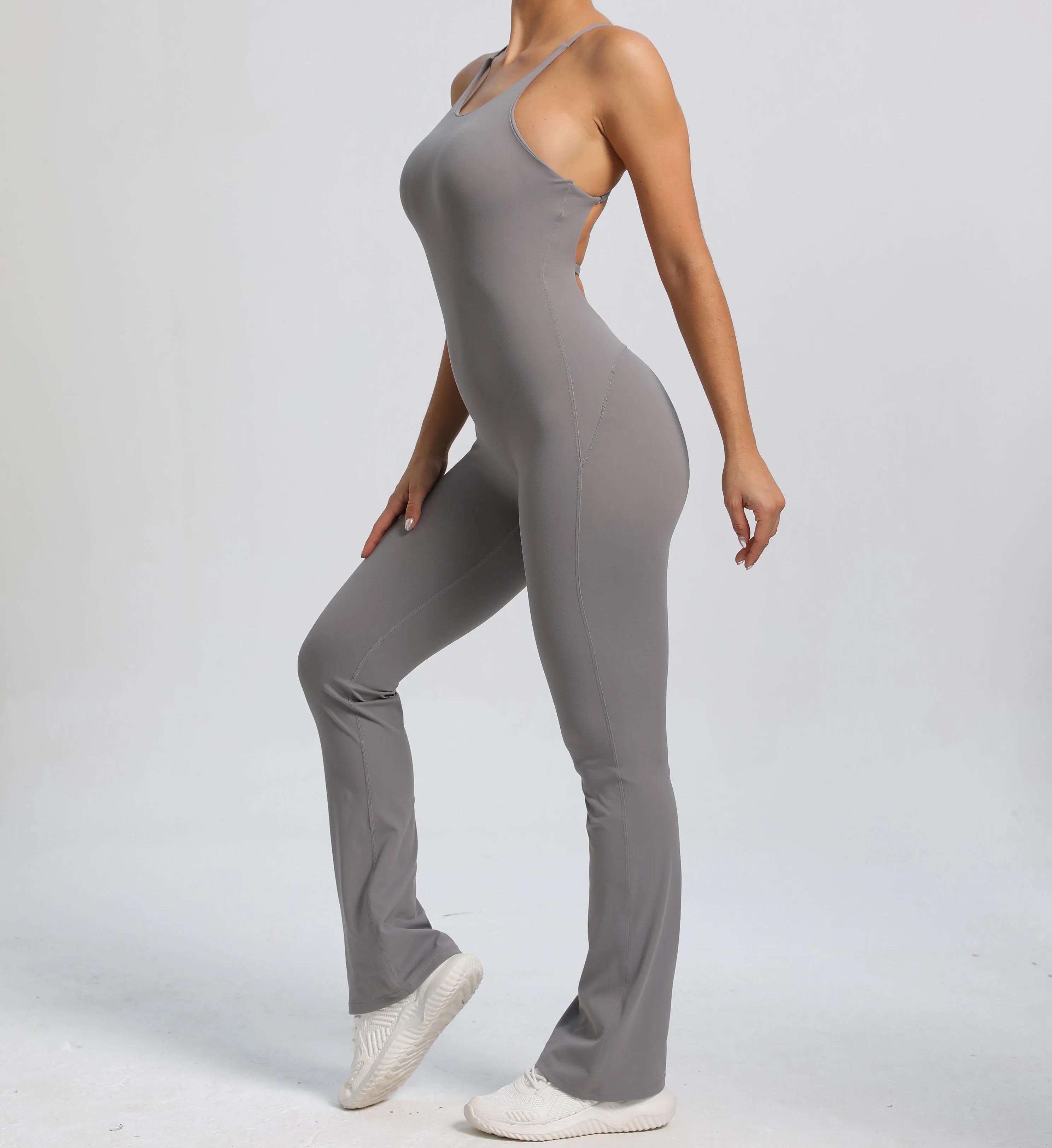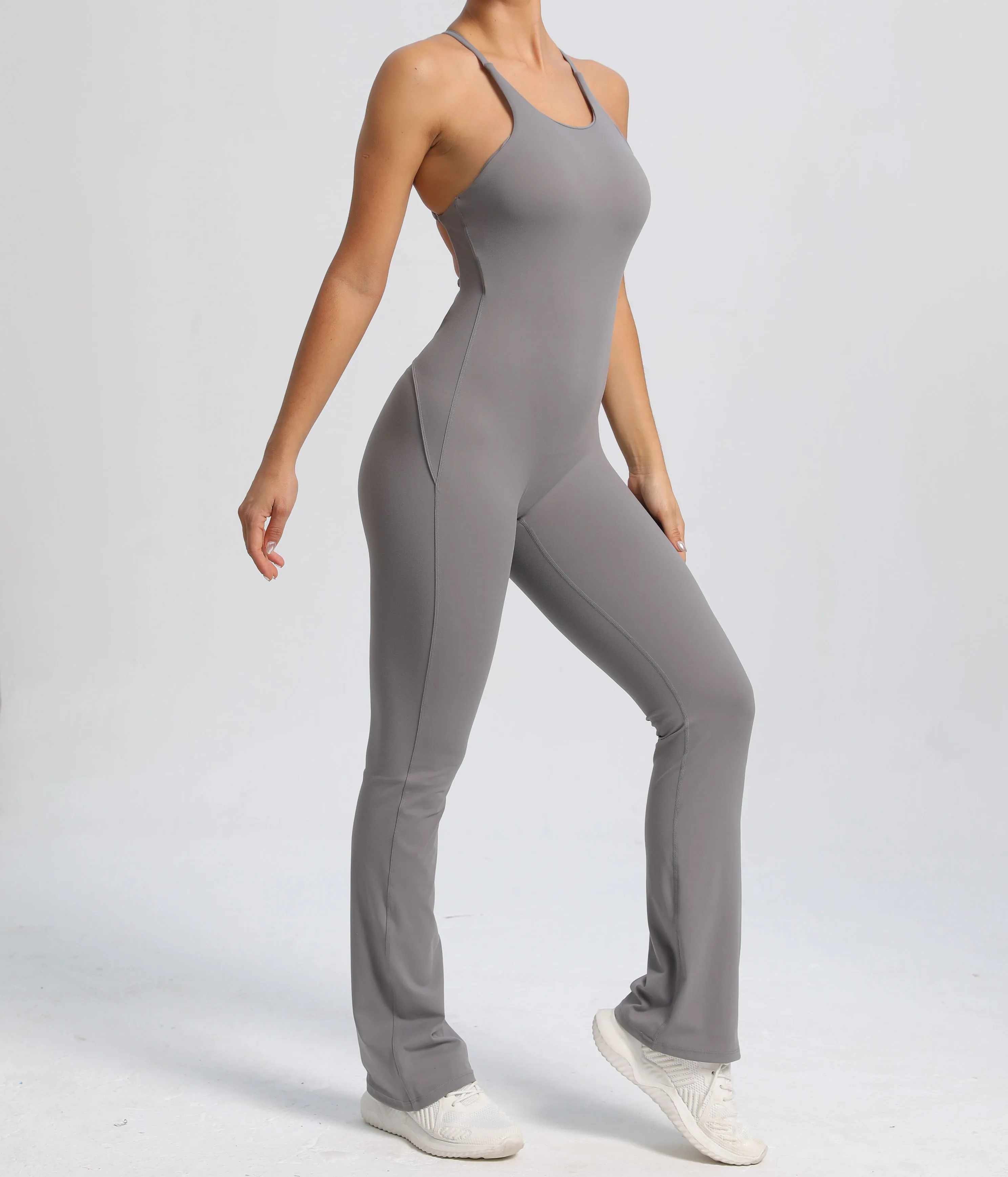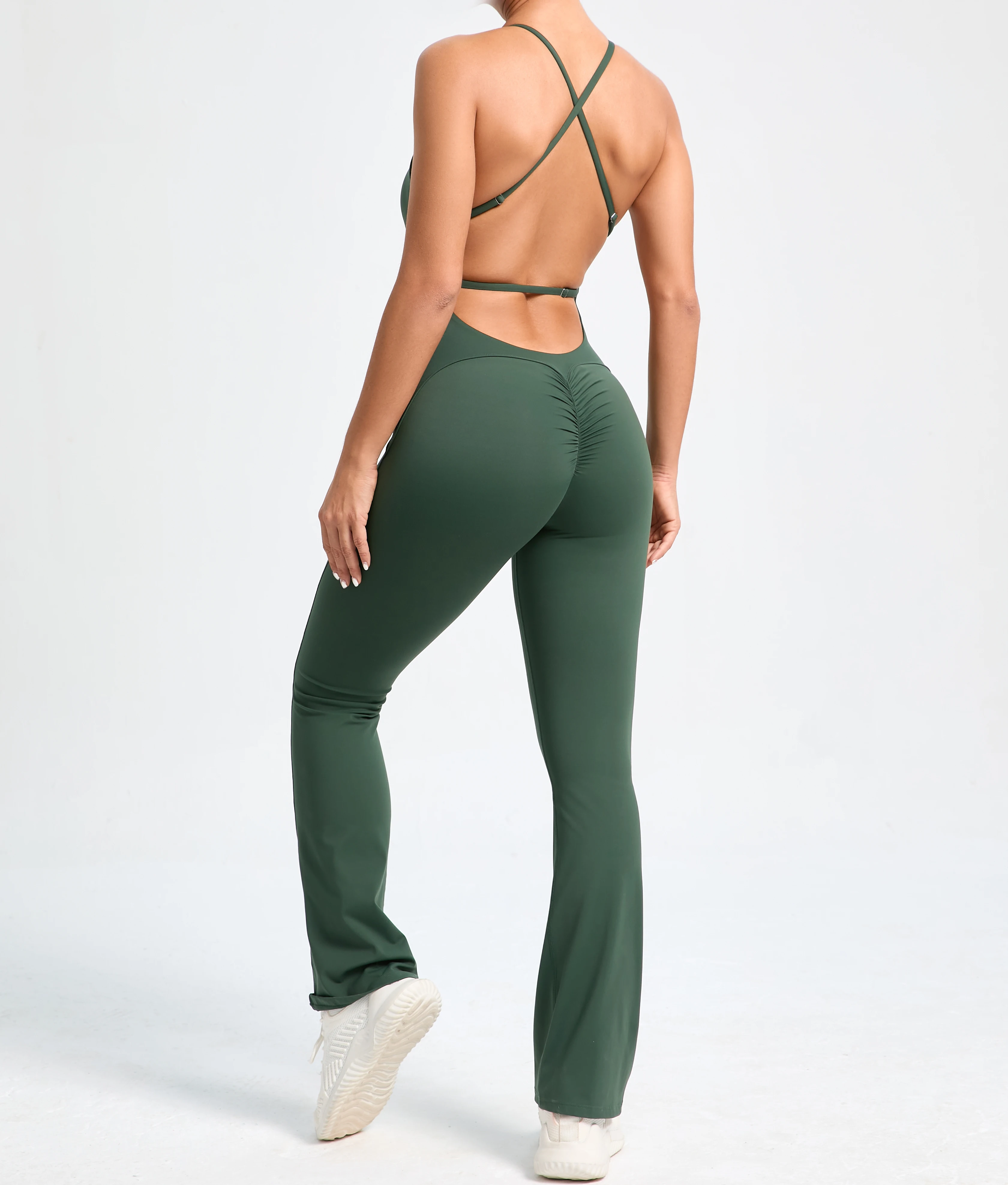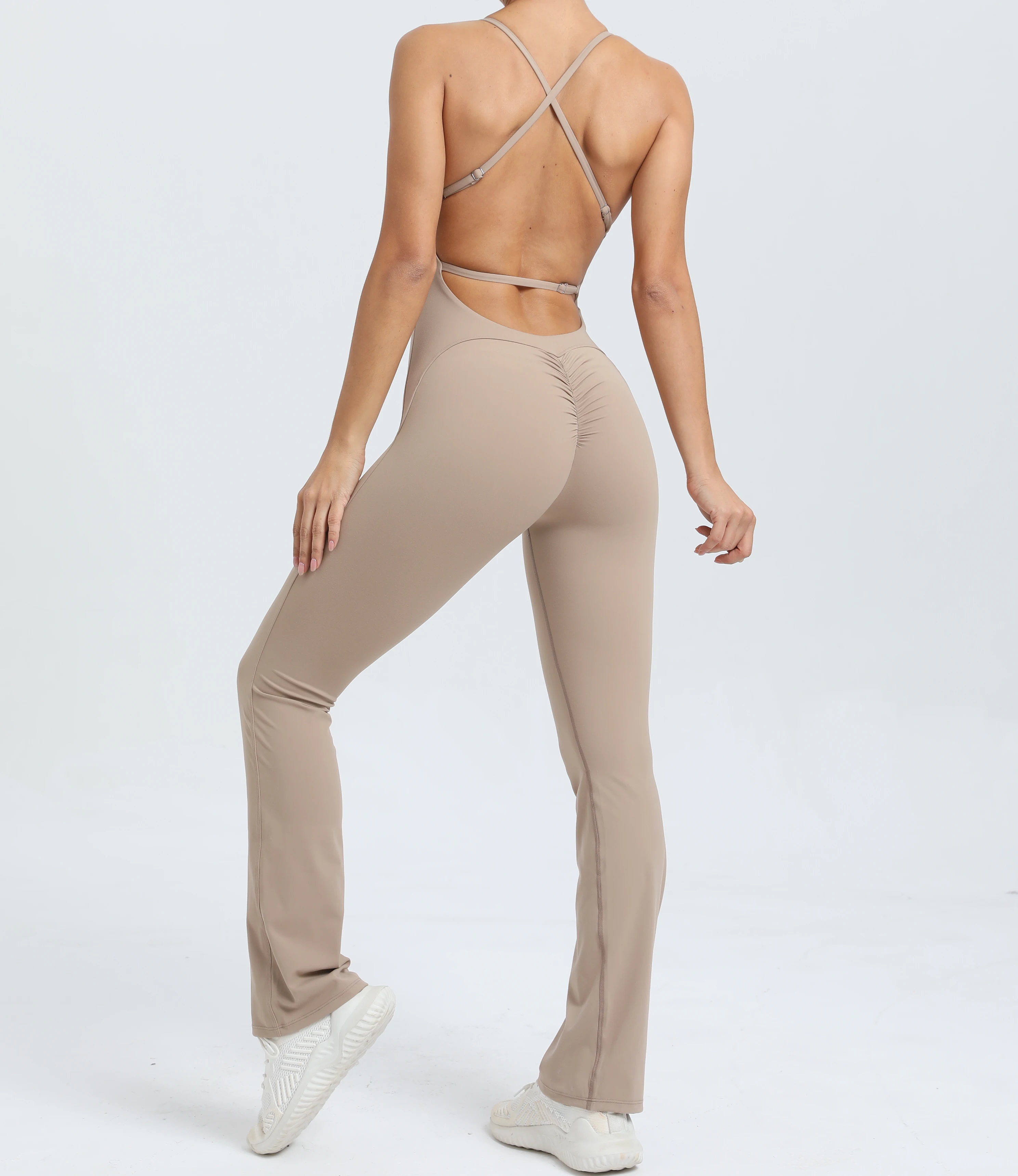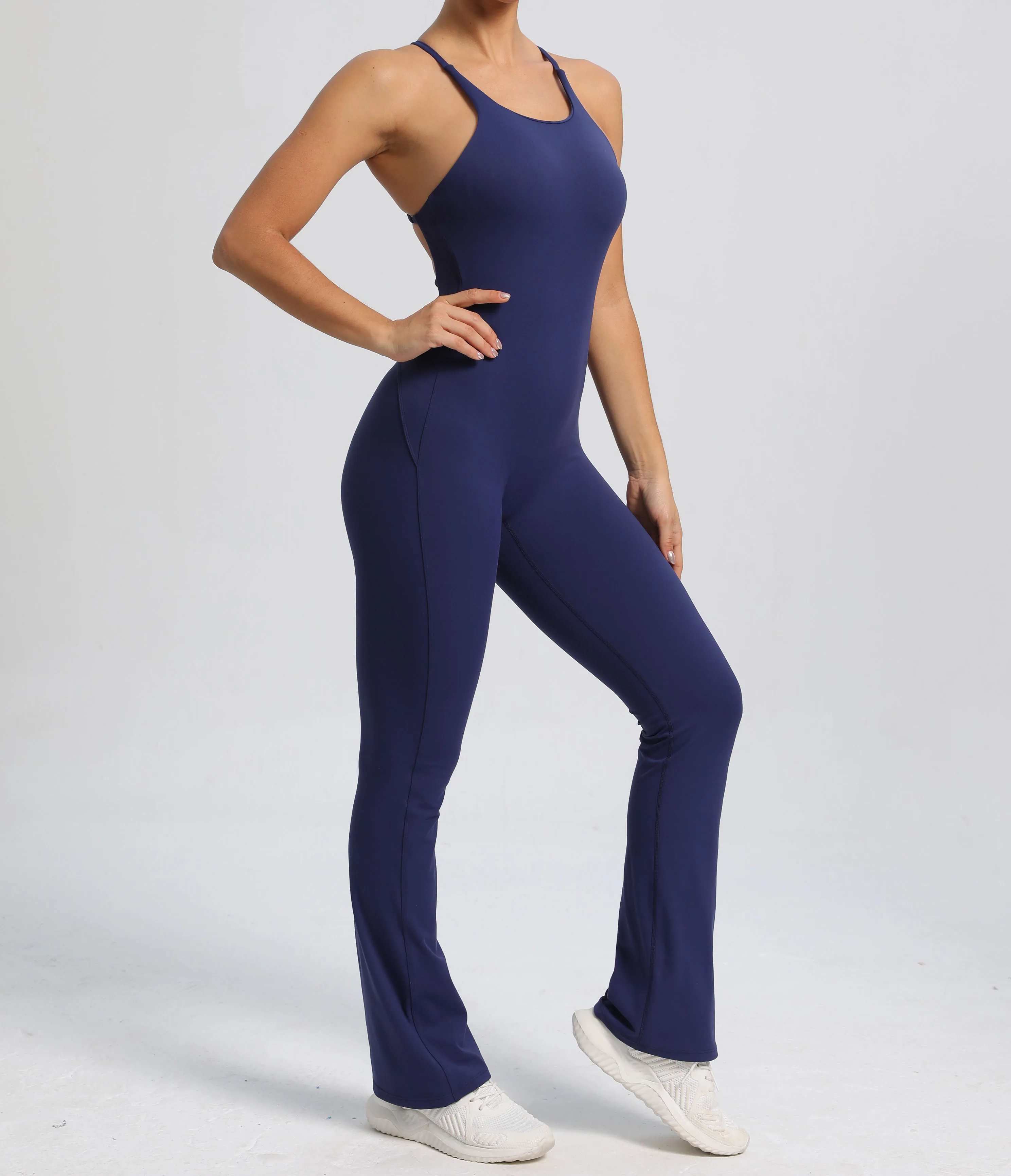 Women Workout Jumpsuit One Piece Fitness Training Yoga Suit Butt Backless Gym Bodysuit Stretch Women Sport Flare Playsuit
