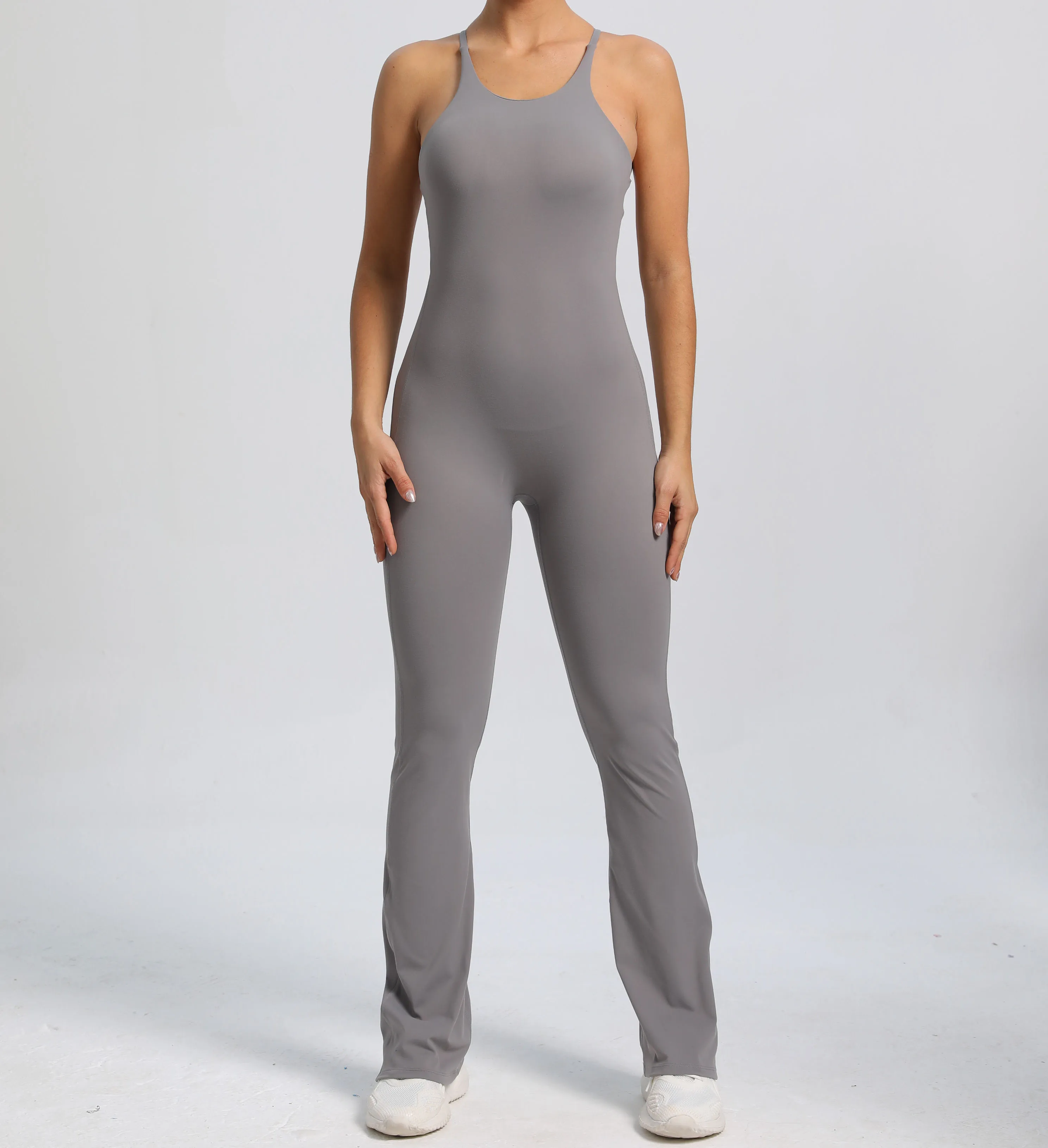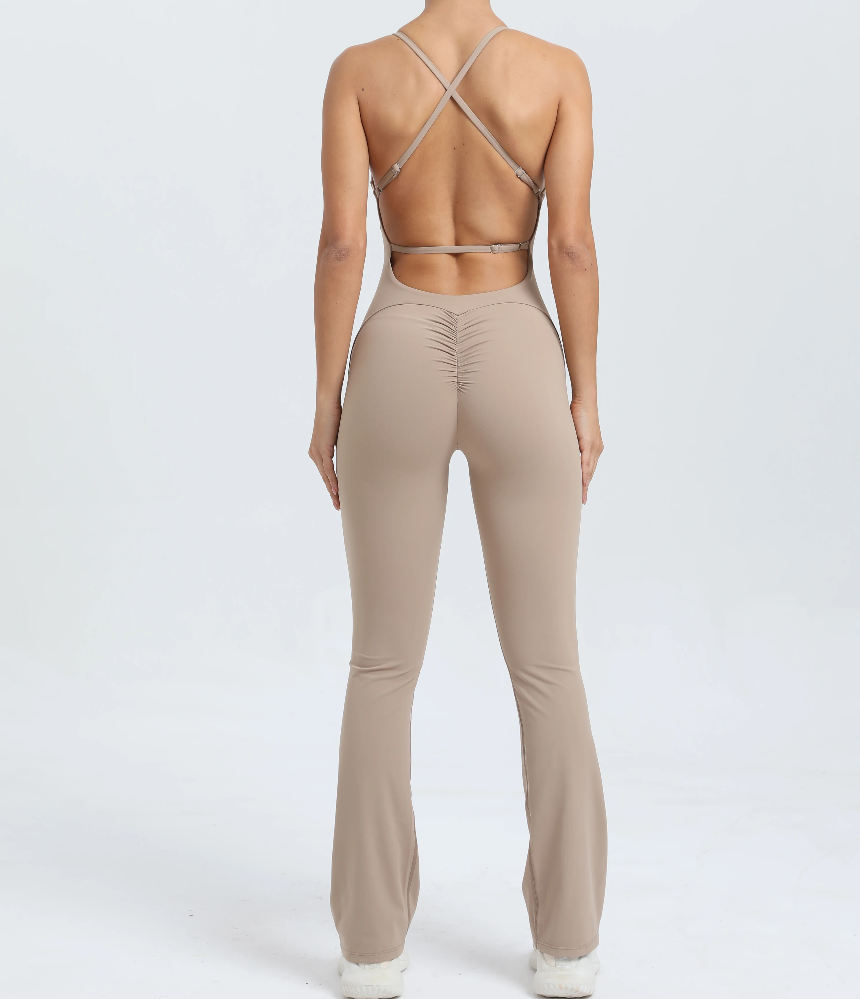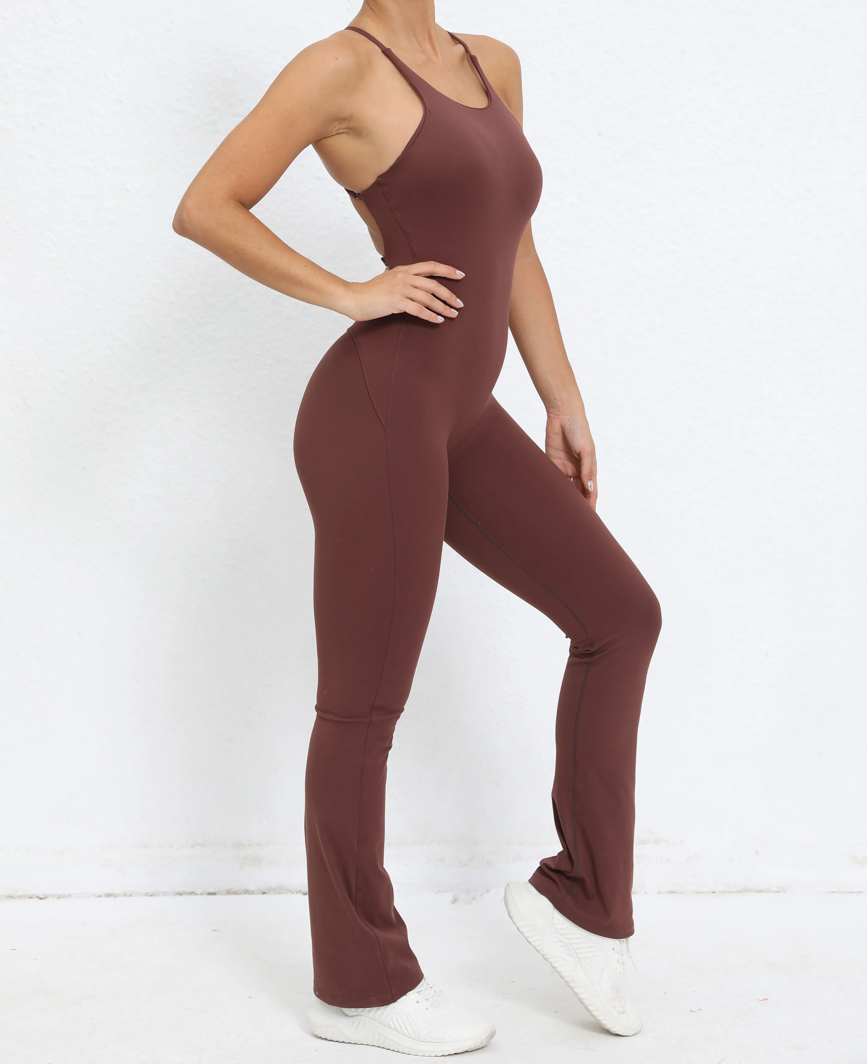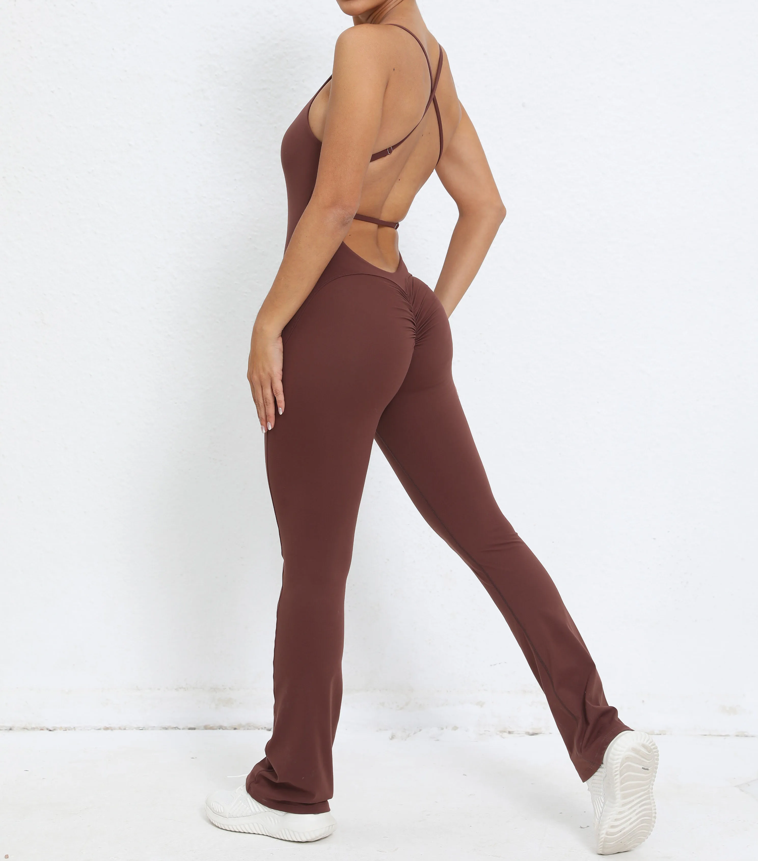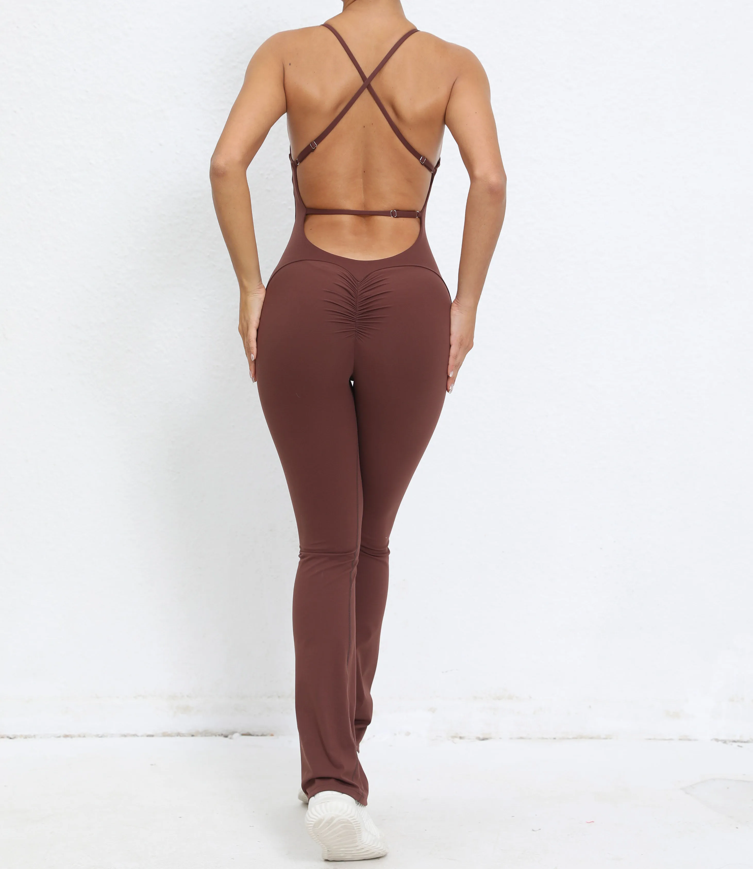 Women Workout Jumpsuit One Piece Fitness Training Yoga Suit Butt Backless Gym Bodysuit Stretch Women Sport Flare Playsuit