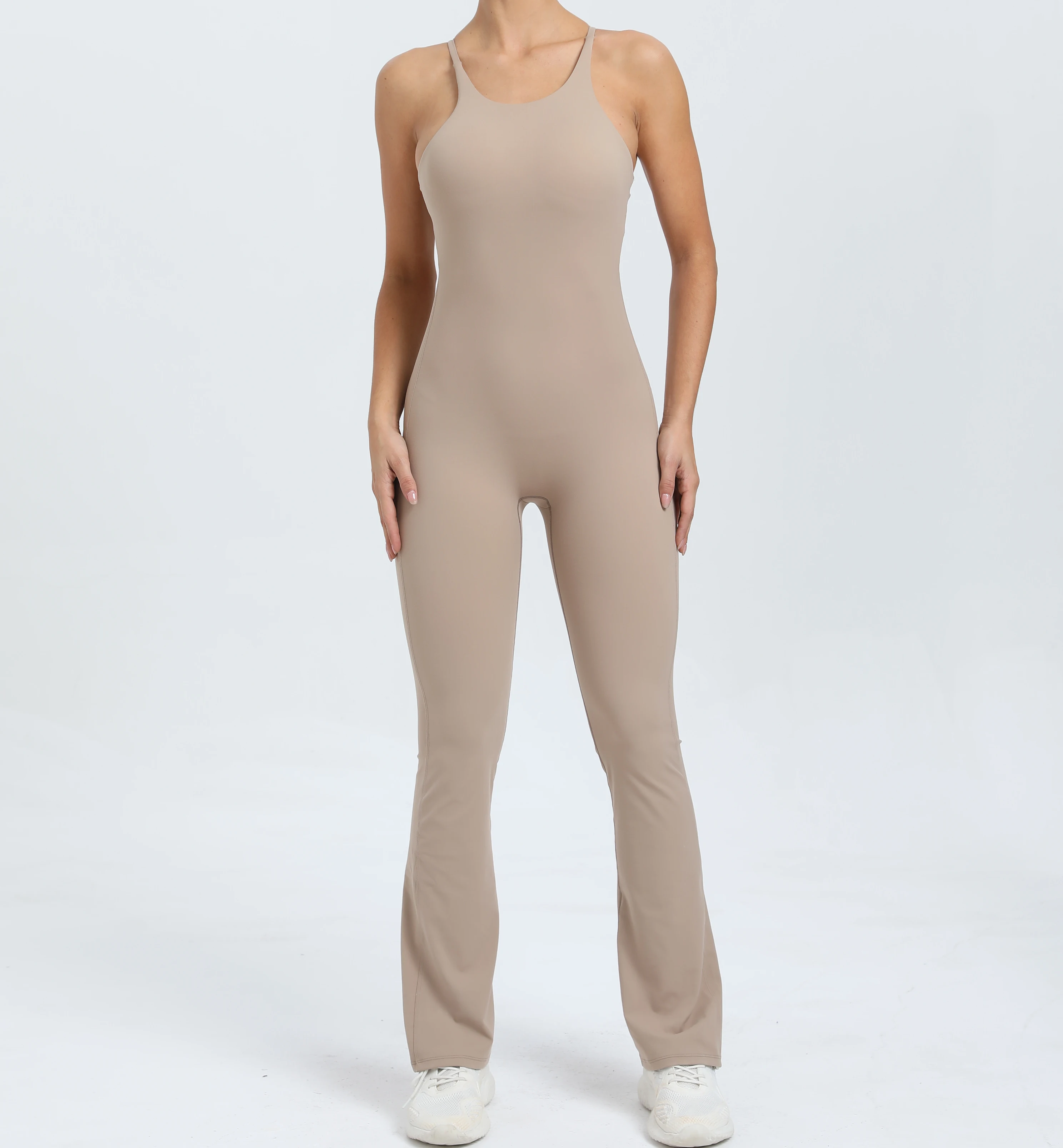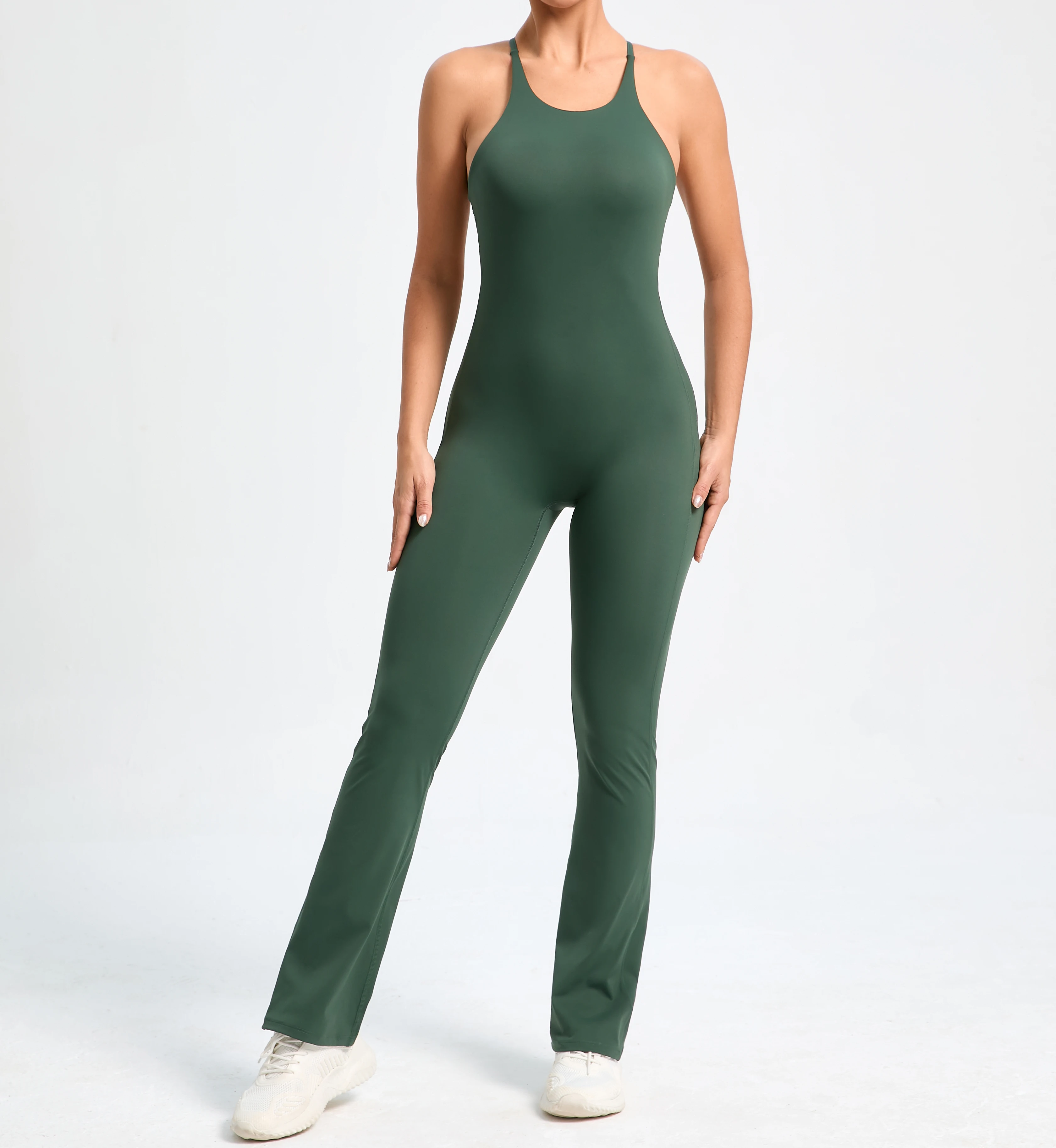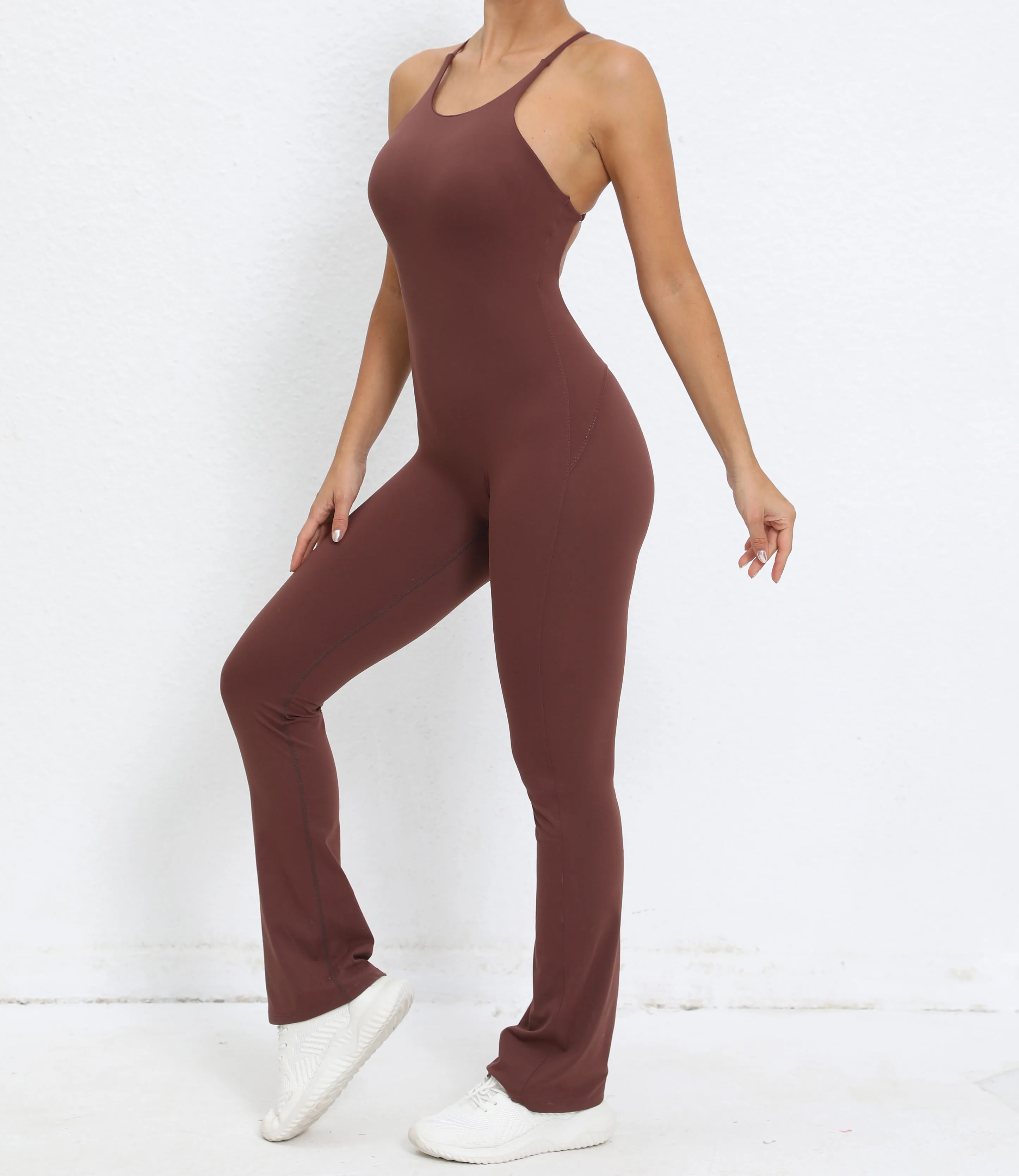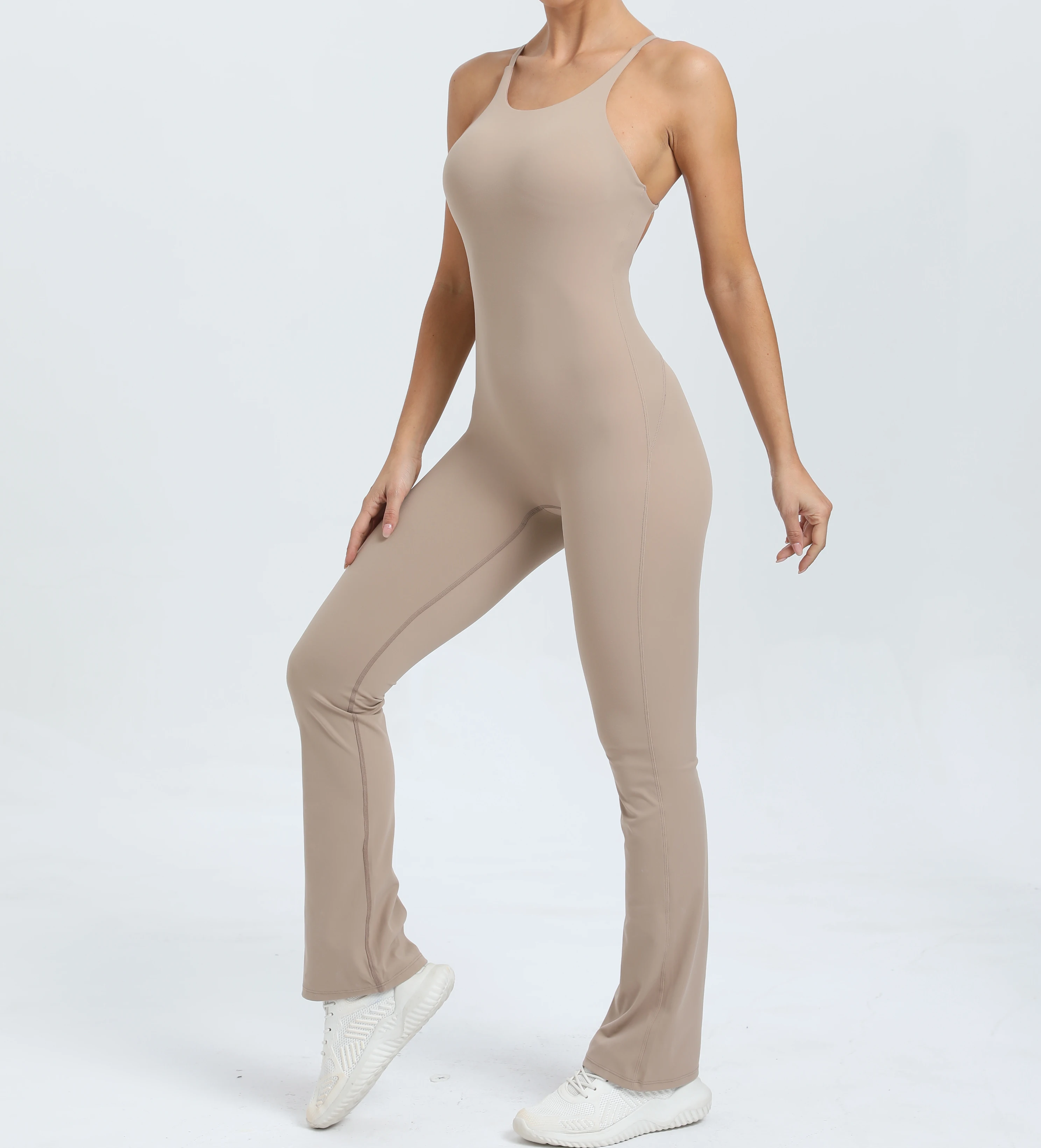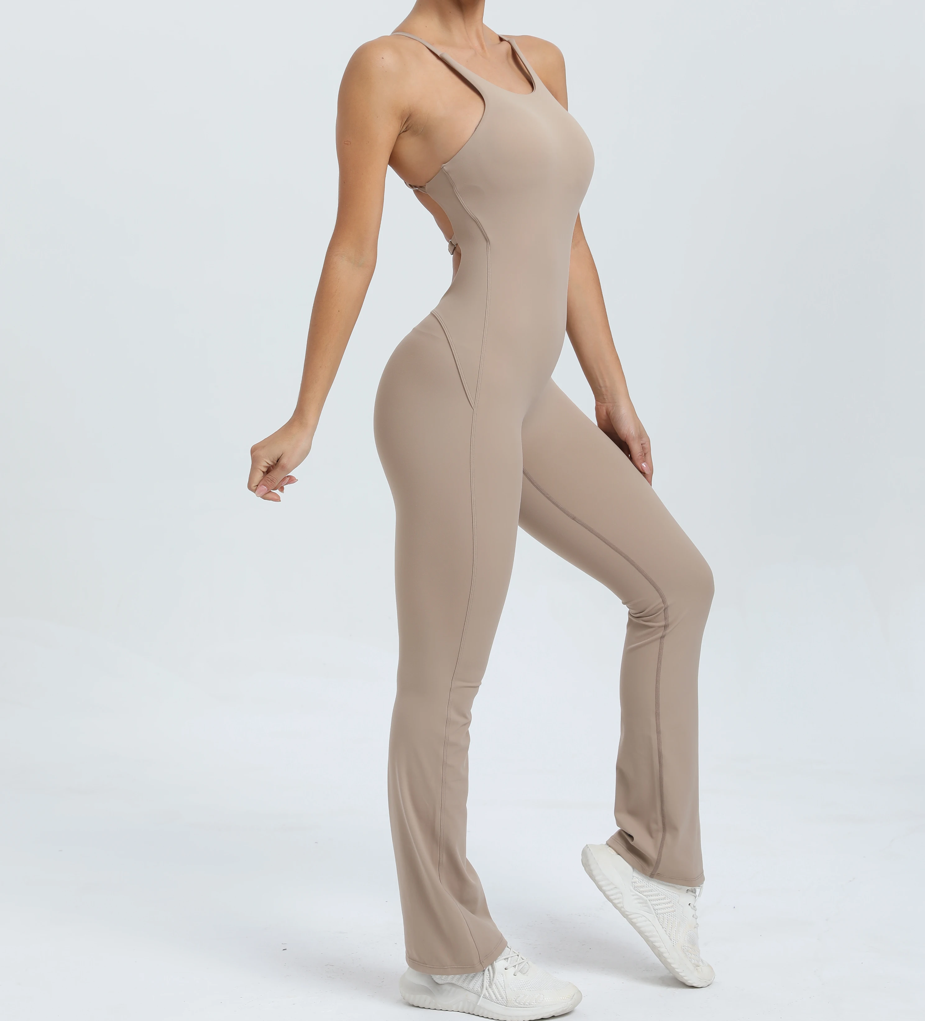 Women Workout Jumpsuit One Piece Fitness Training Yoga Suit Butt Backless Gym Bodysuit Stretch Women Sport Flare Playsuit