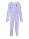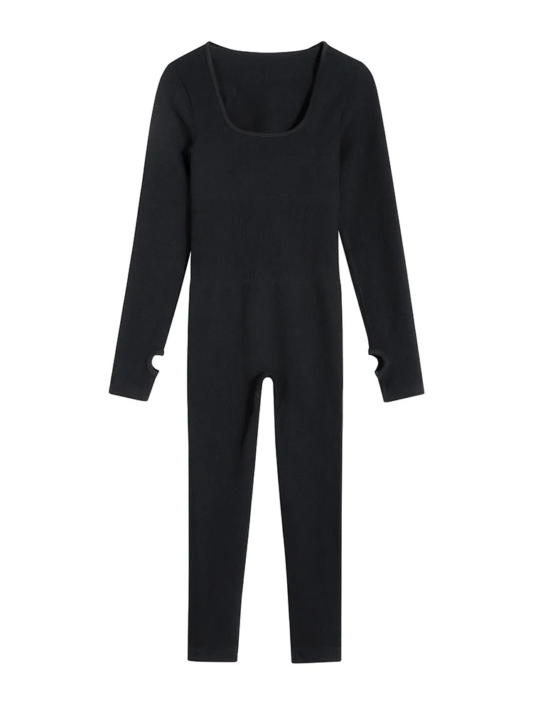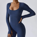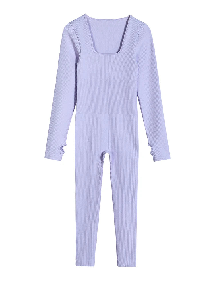 Women Yoga Jumpsuits One Piece Workout Ribbed Long Sleeve Rompers Square Neck Sport Exercise Bodysuits Gym Sportswear