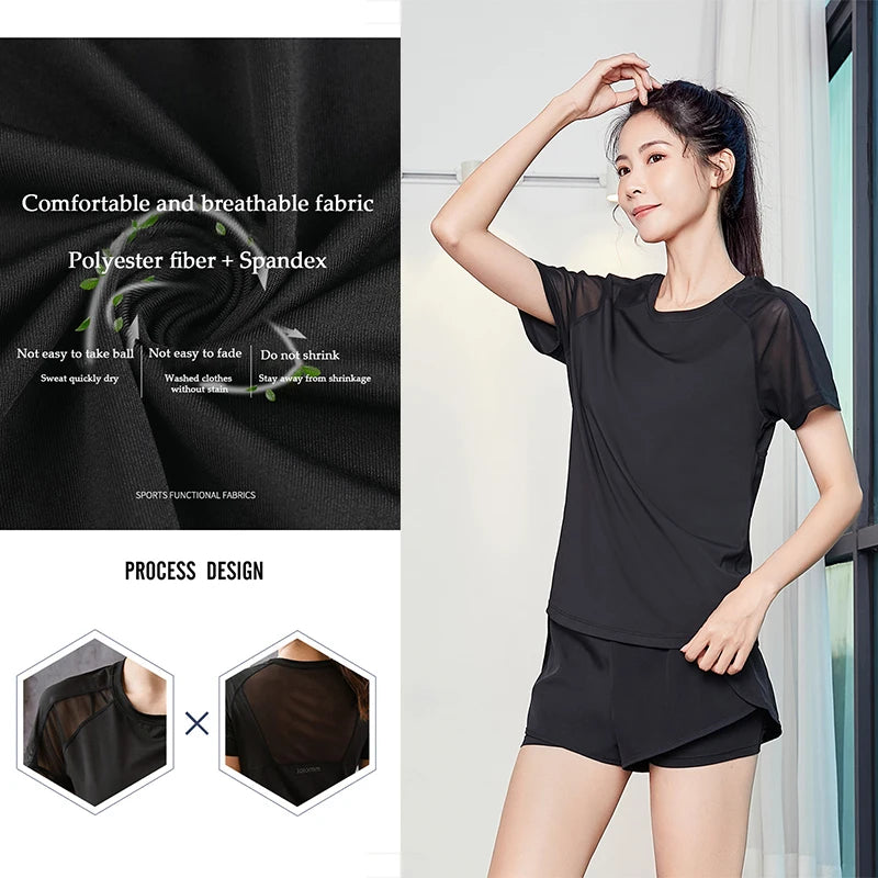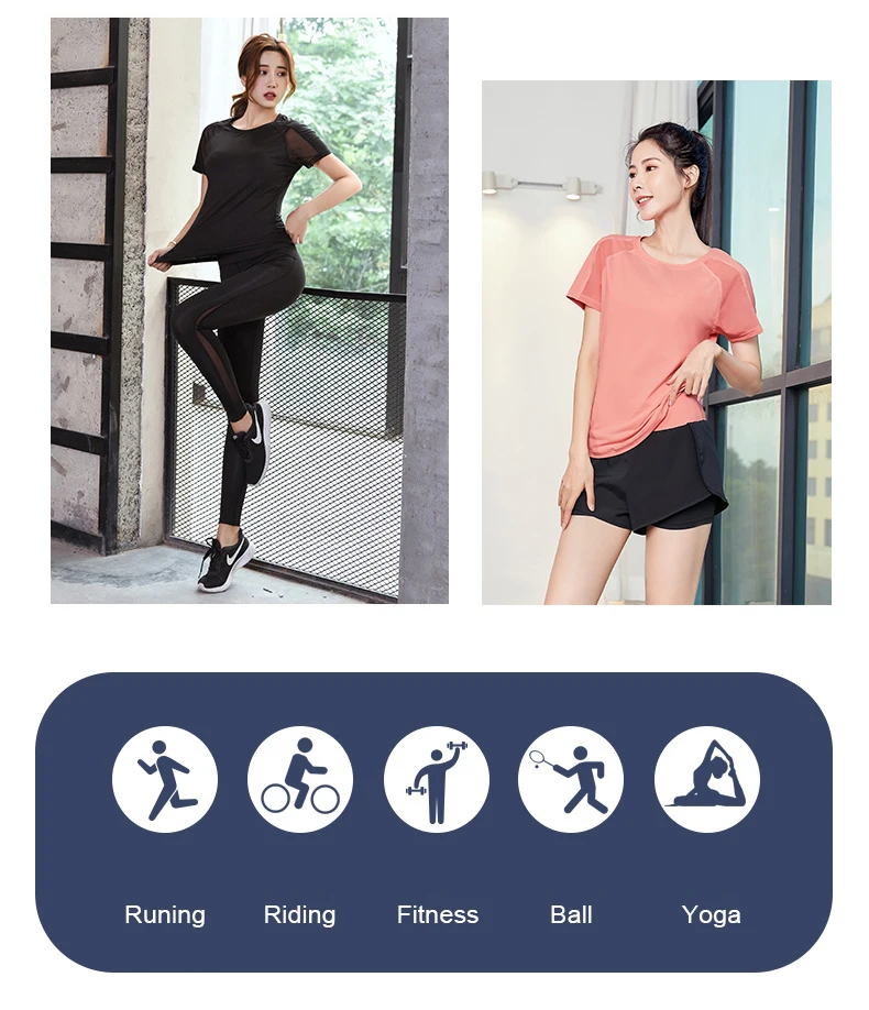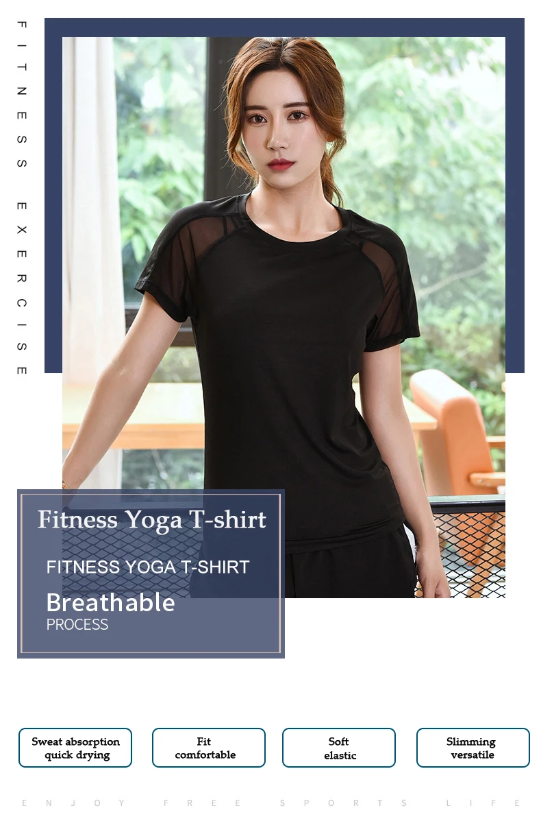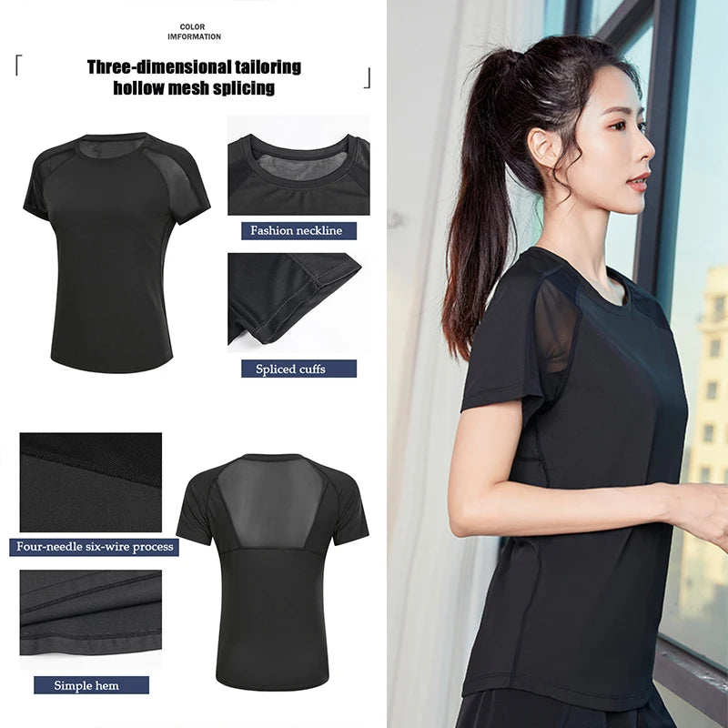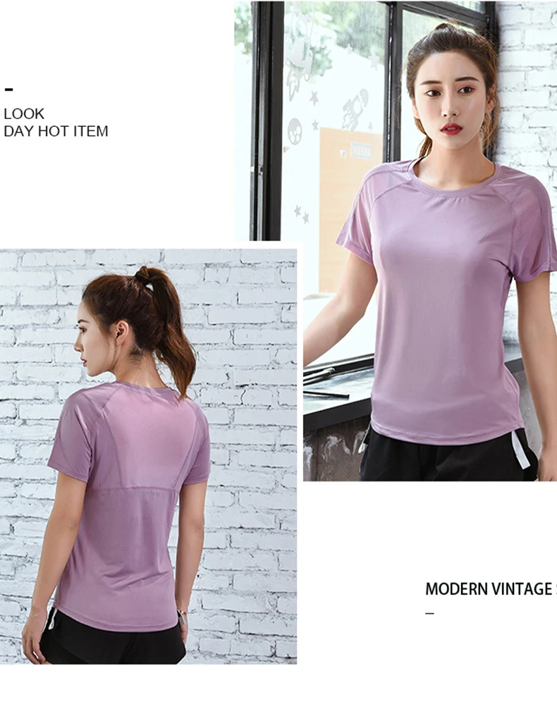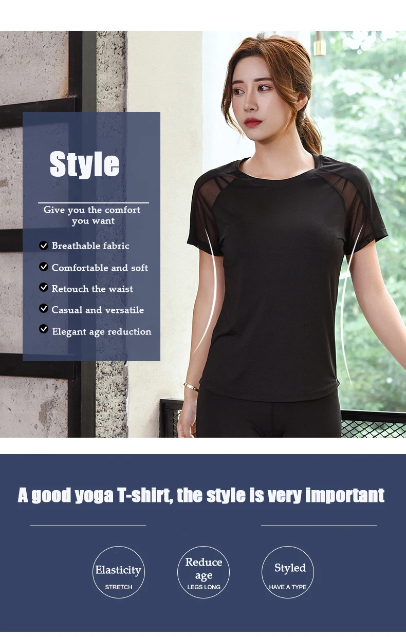 Women Yoga T-Shirt Sport Dry Fit Mesh Yoga Gym Short Sleeves Comfortable Dry Lightweight Breathable Elastic Yoga Short Sleeves