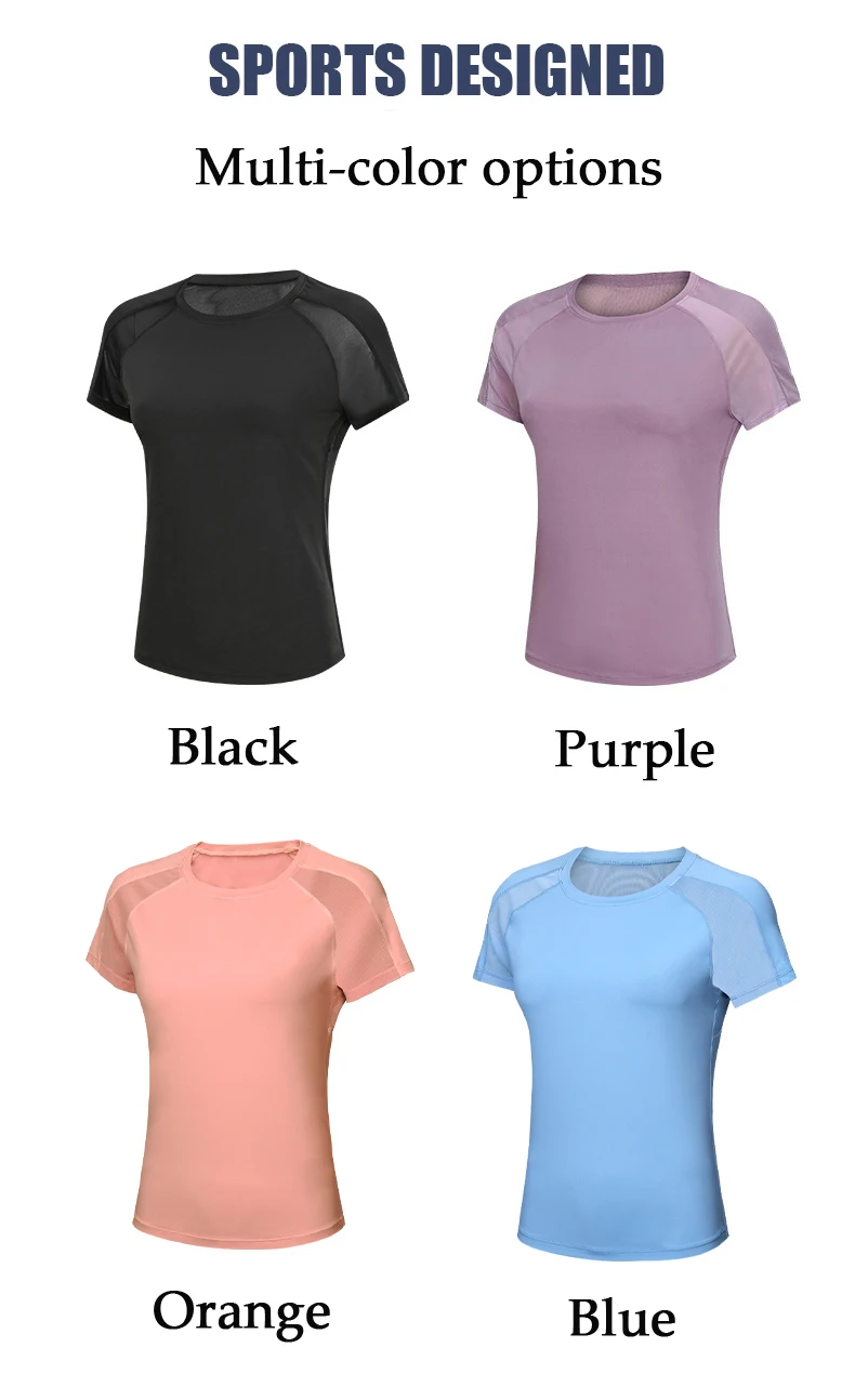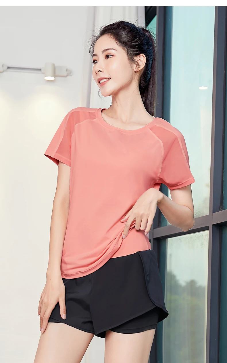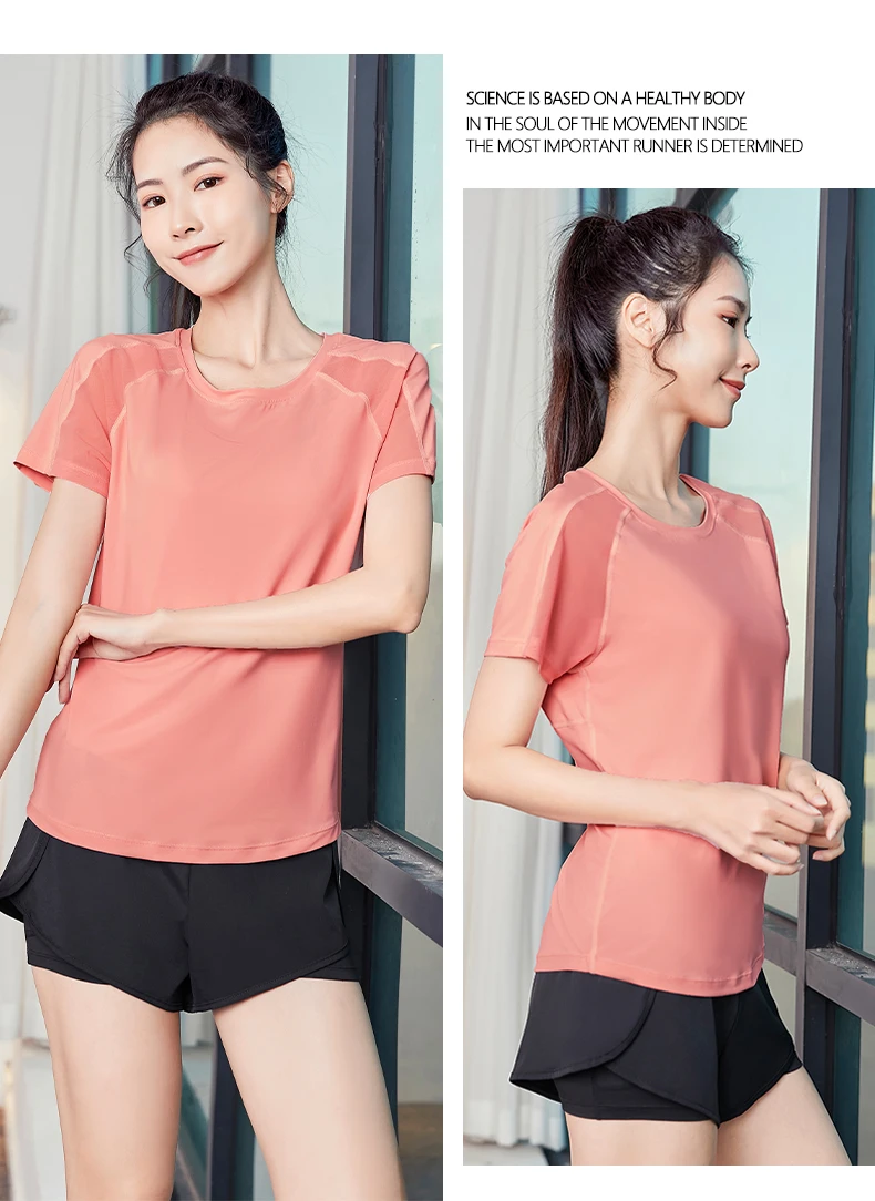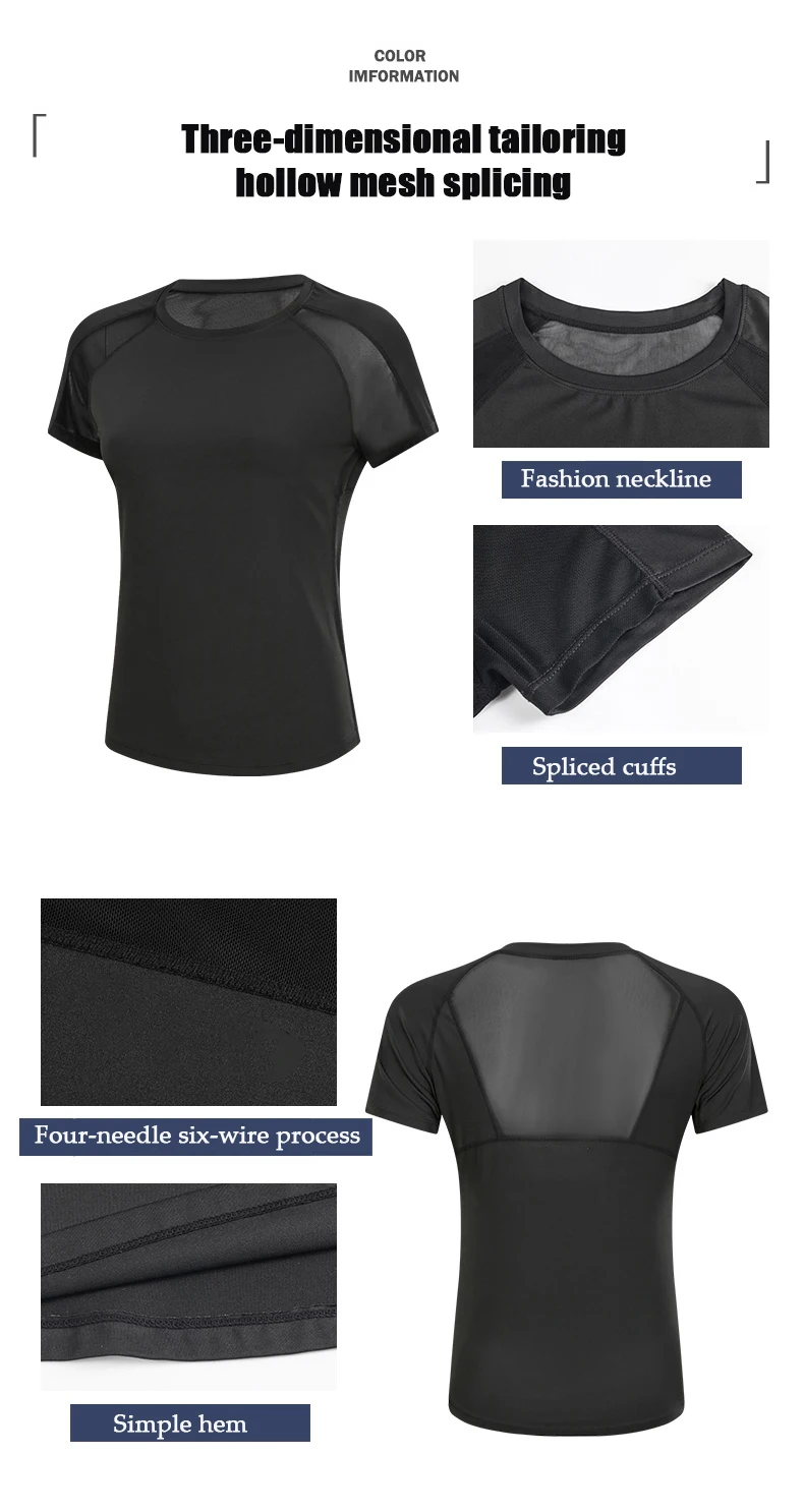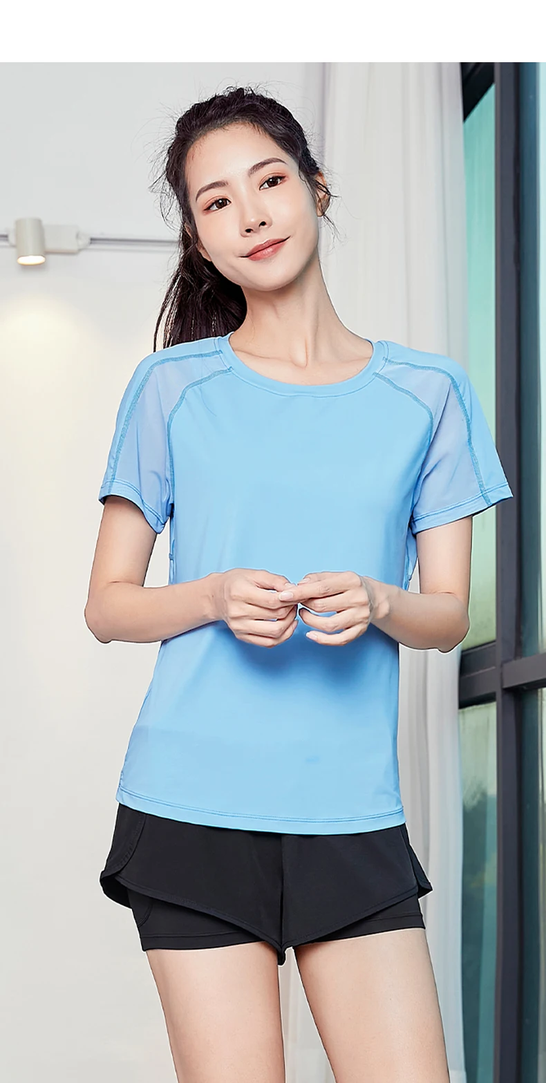 Women Yoga T-Shirt Sport Dry Fit Mesh Yoga Gym Short Sleeves Comfortable Dry Lightweight Breathable Elastic Yoga Short Sleeves