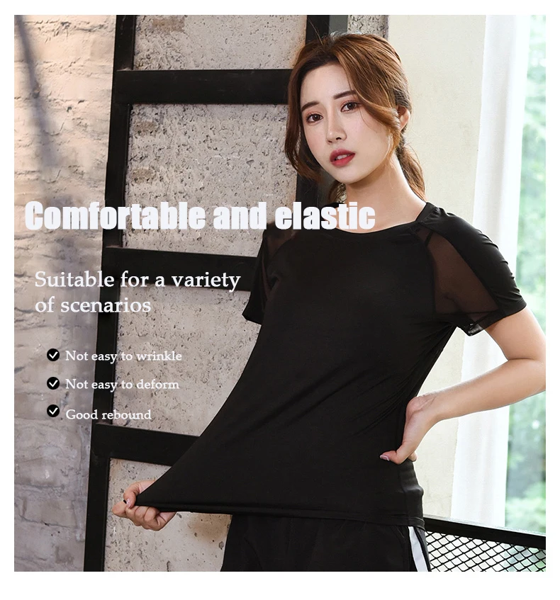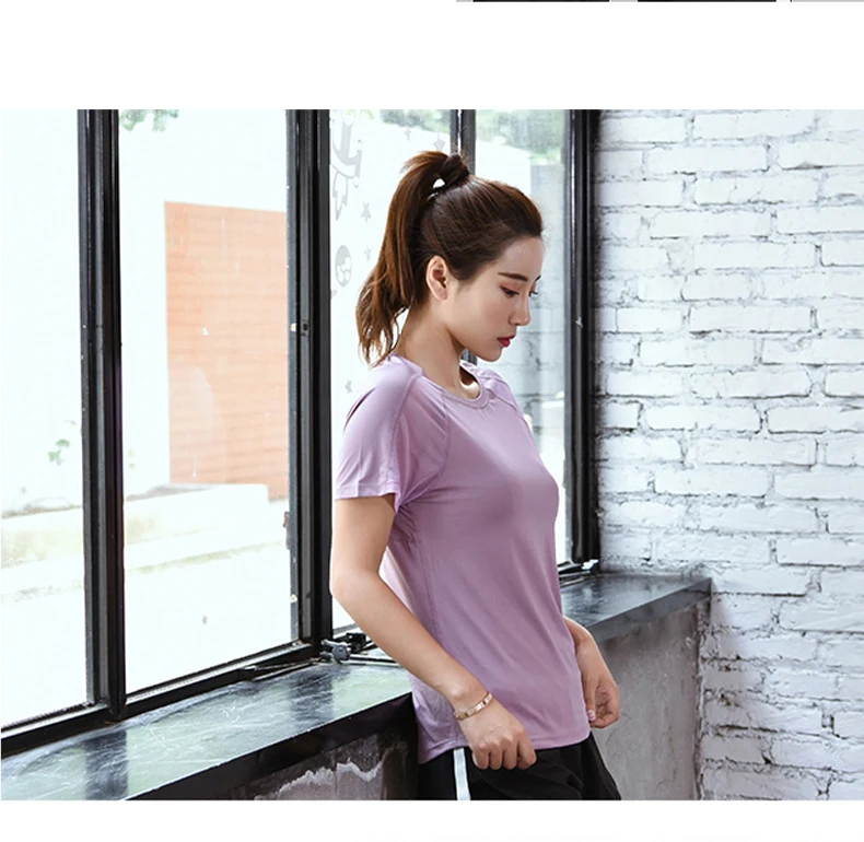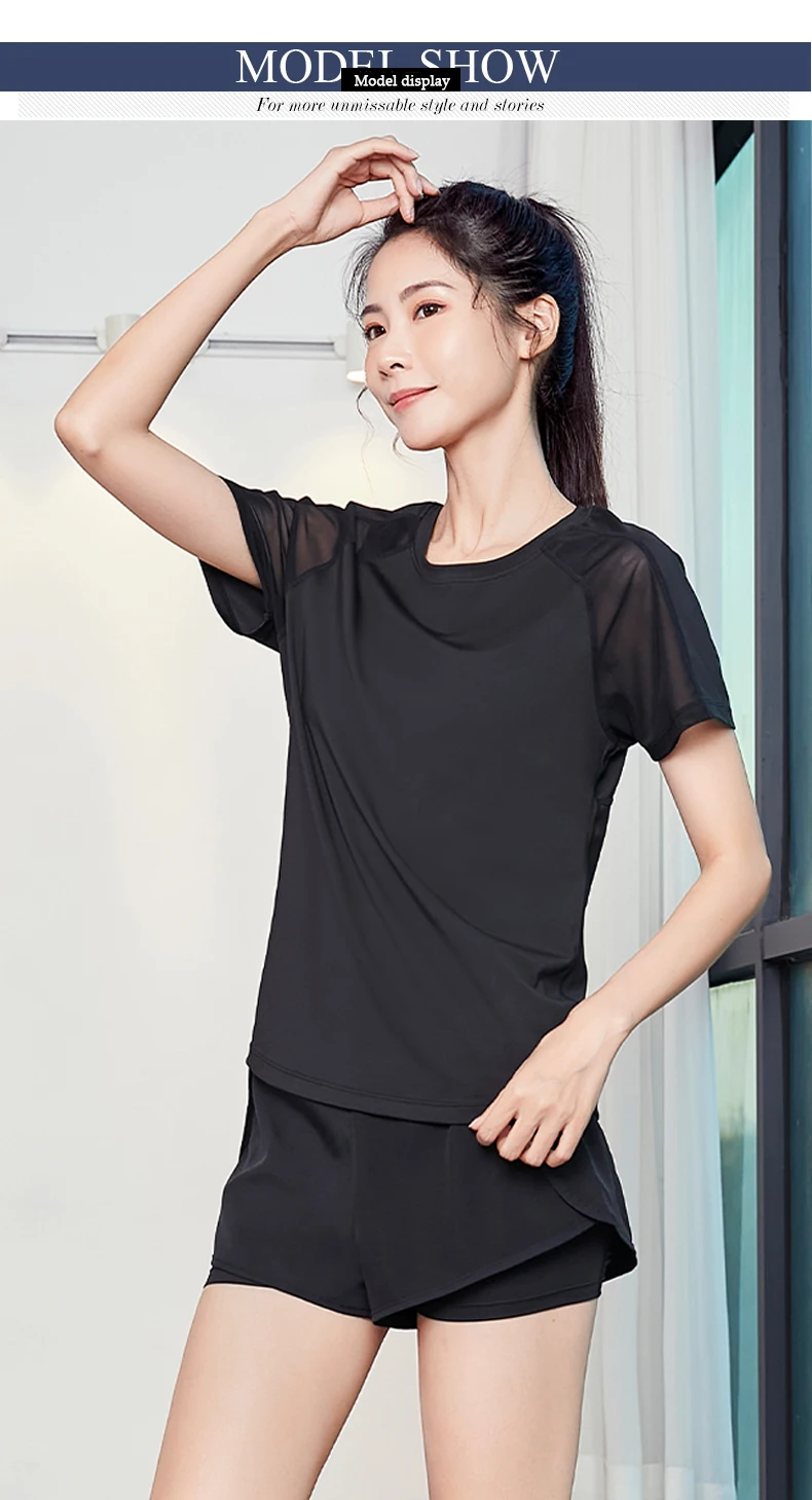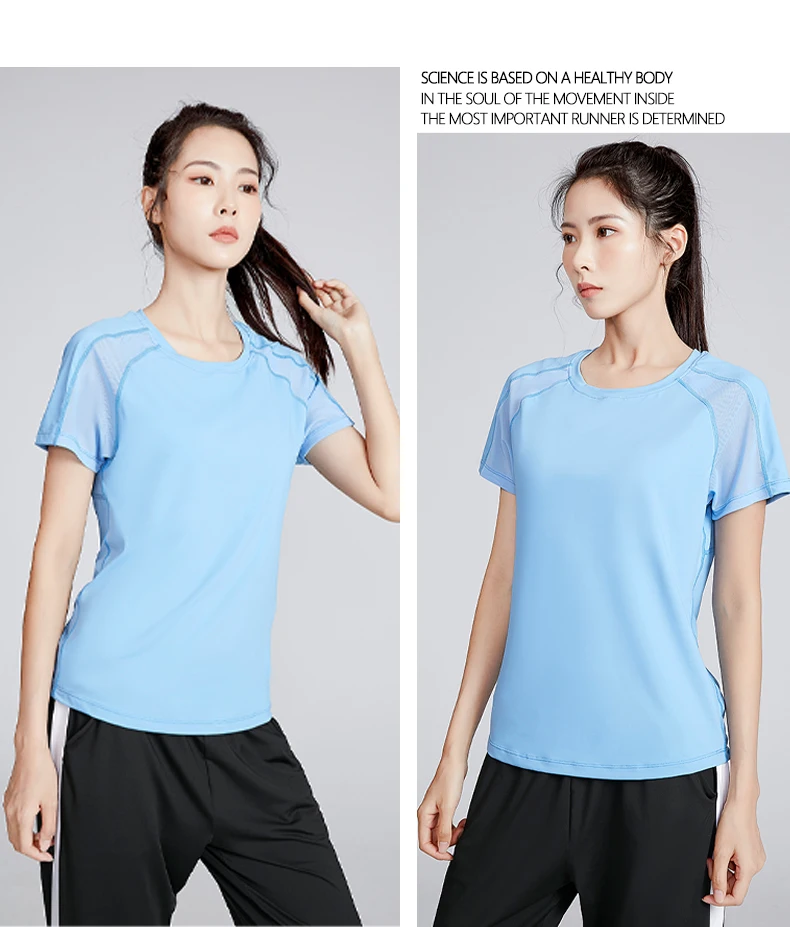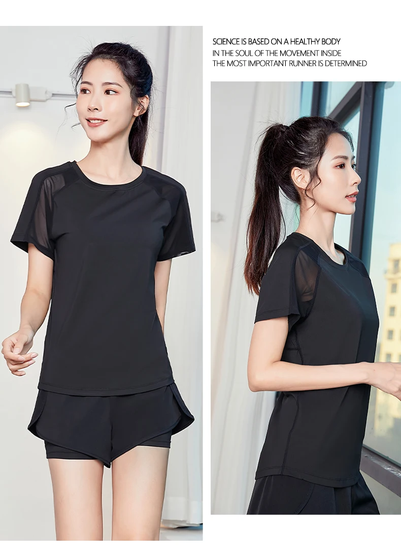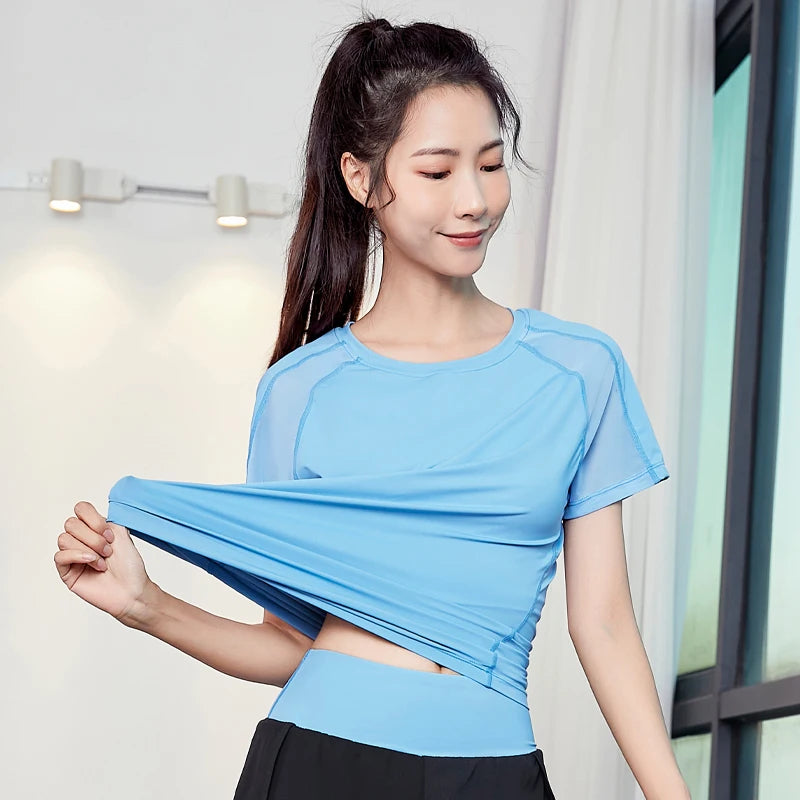 Women Yoga T-Shirt Sport Dry Fit Mesh Yoga Gym Short Sleeves Comfortable Dry Lightweight Breathable Elastic Yoga Short Sleeves