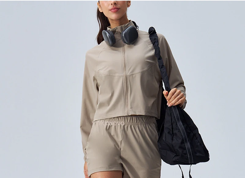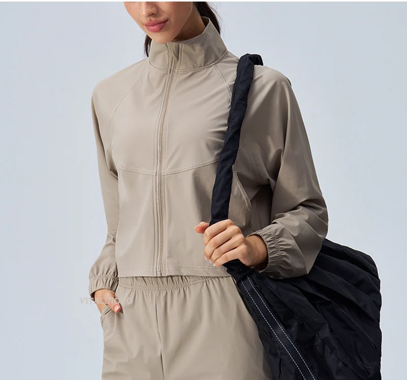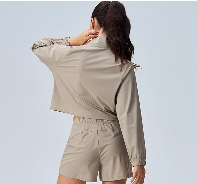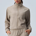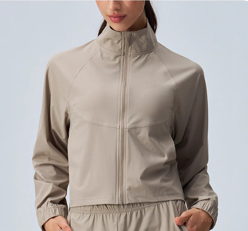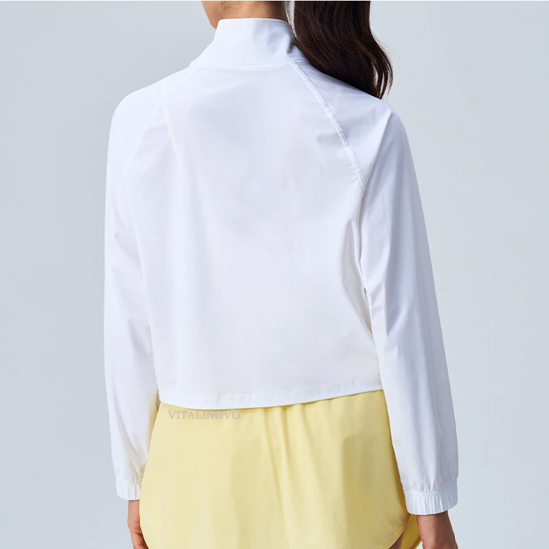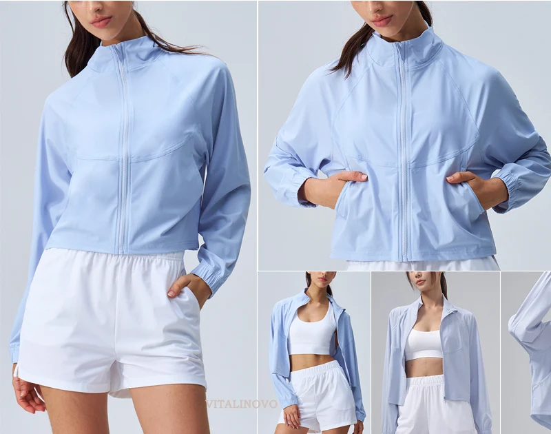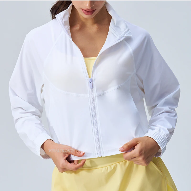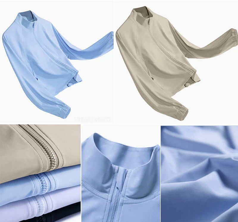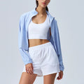 Women's Athletic Workout Running Track Full Zip Cropped Jackets UPF 50+ Sun Protection Long Sleeve Workout Shirts Yoga Gym Top