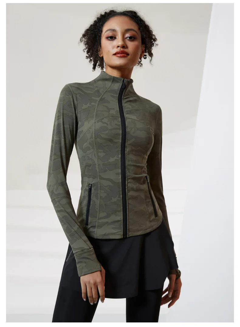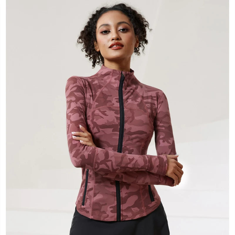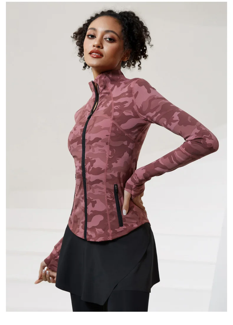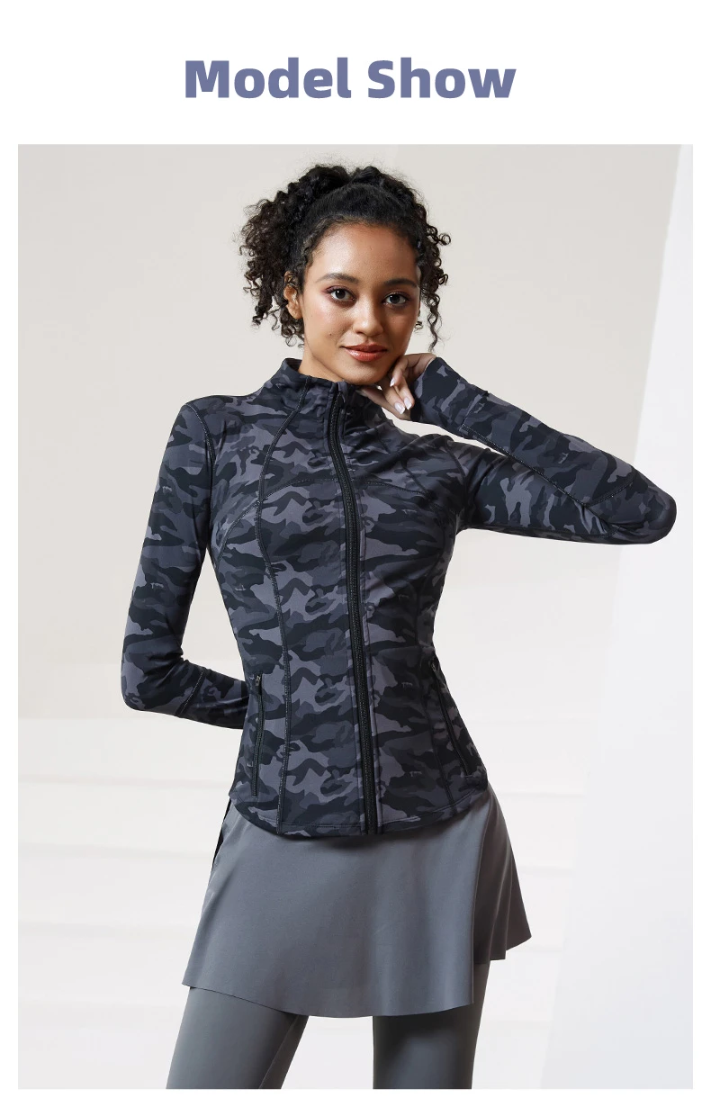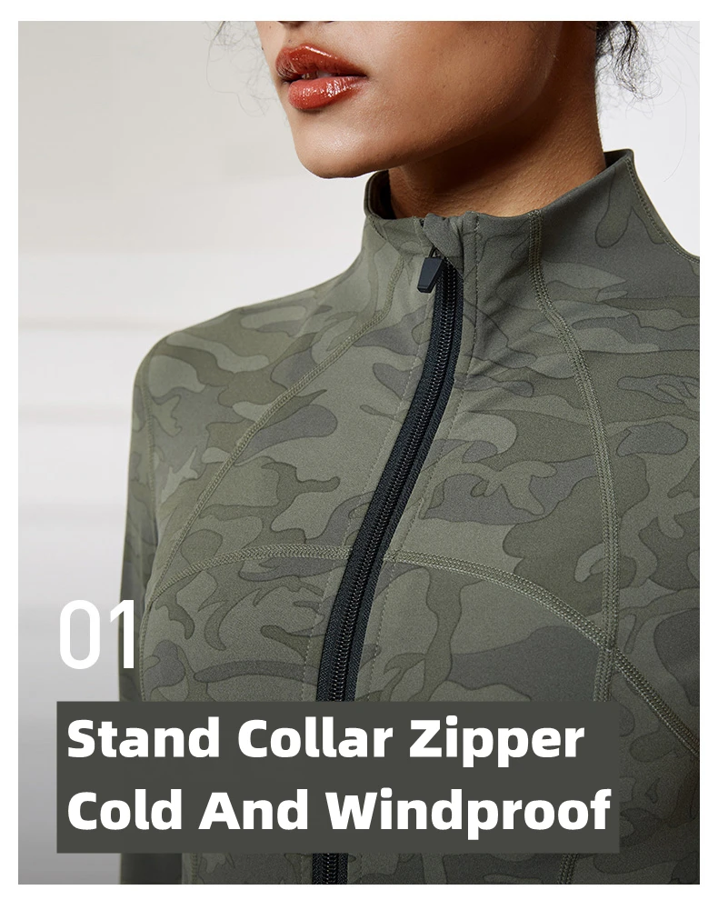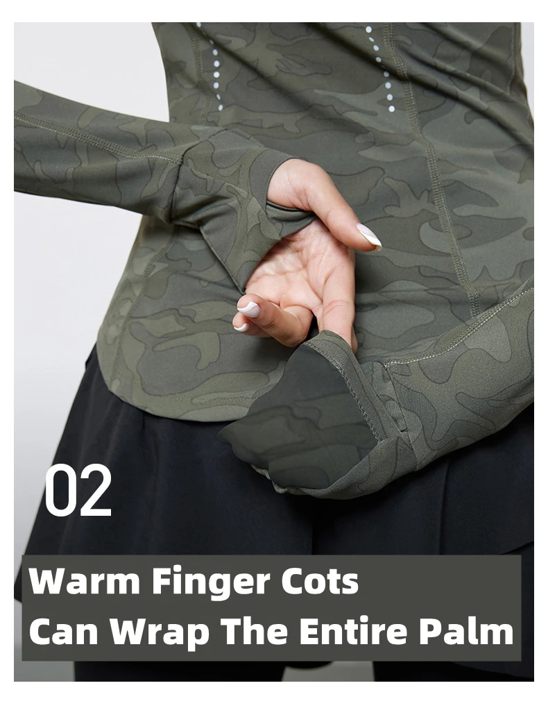 Womens Camouflage Sports Jacket Winter Warm Outdoor Running Hoodies Zipper Cycling Training Tie Dye Coats Cold-proof Windproof