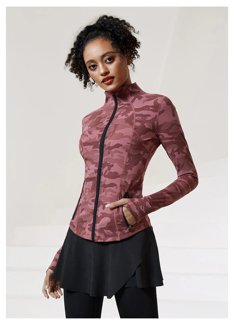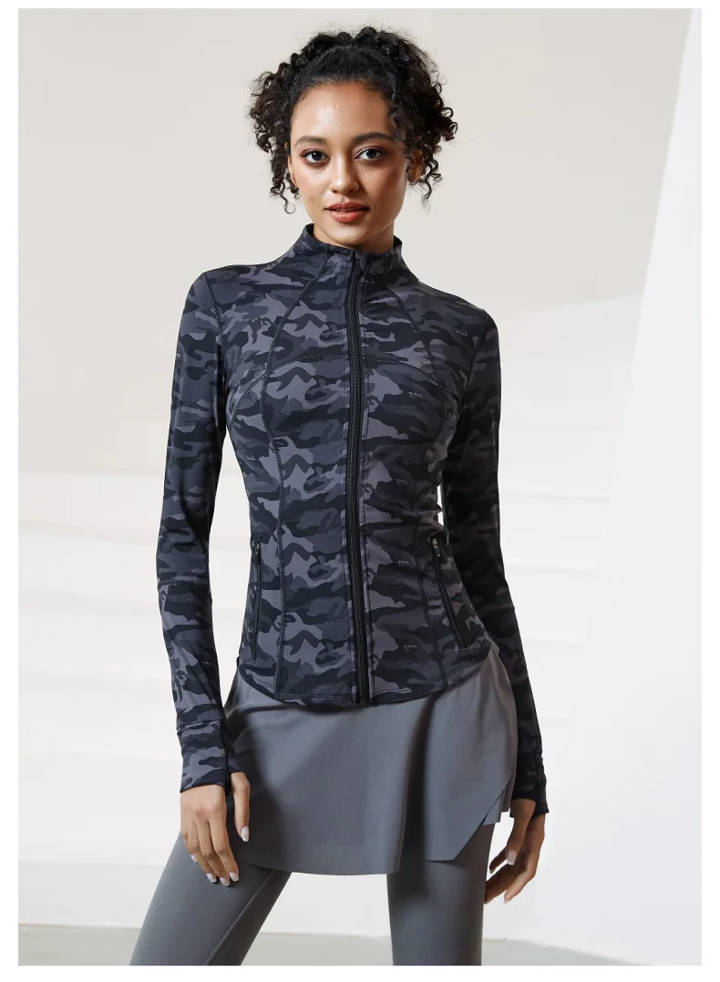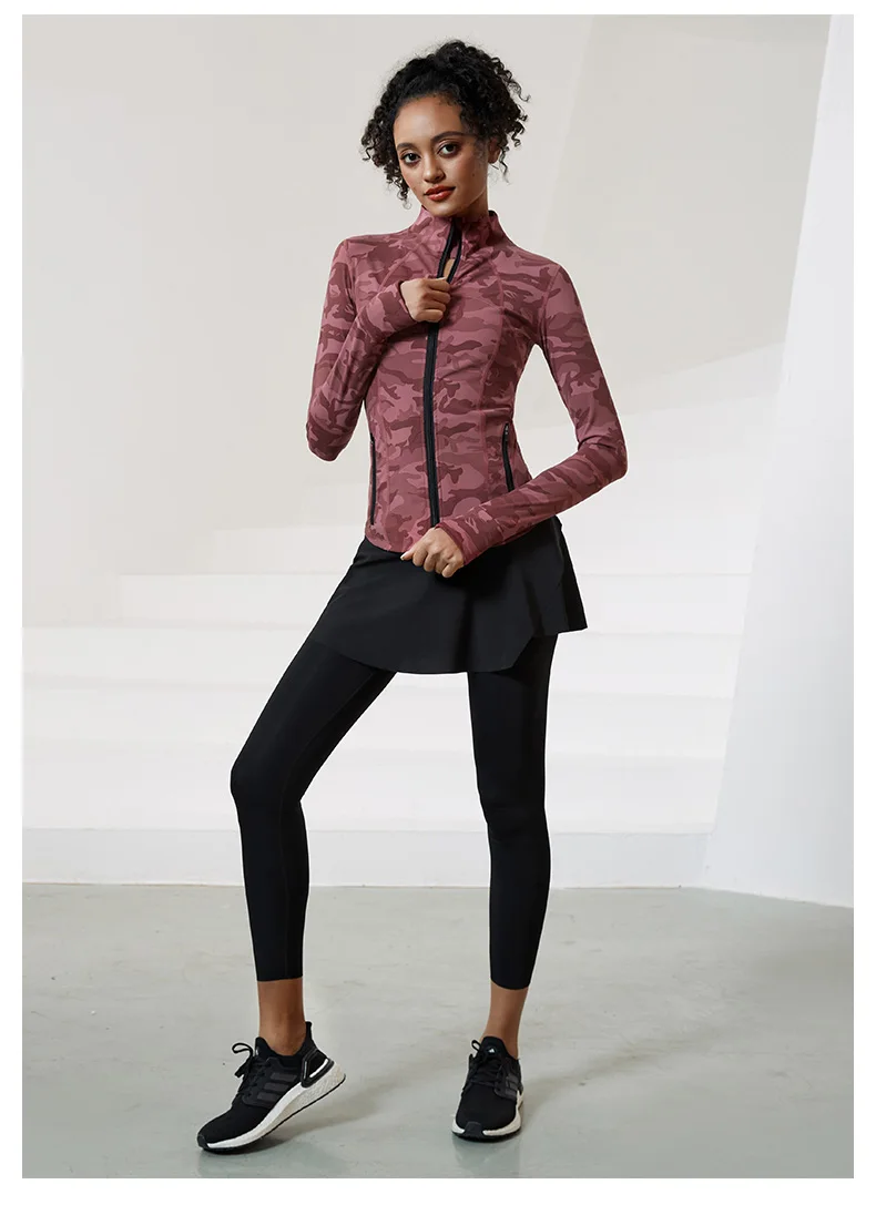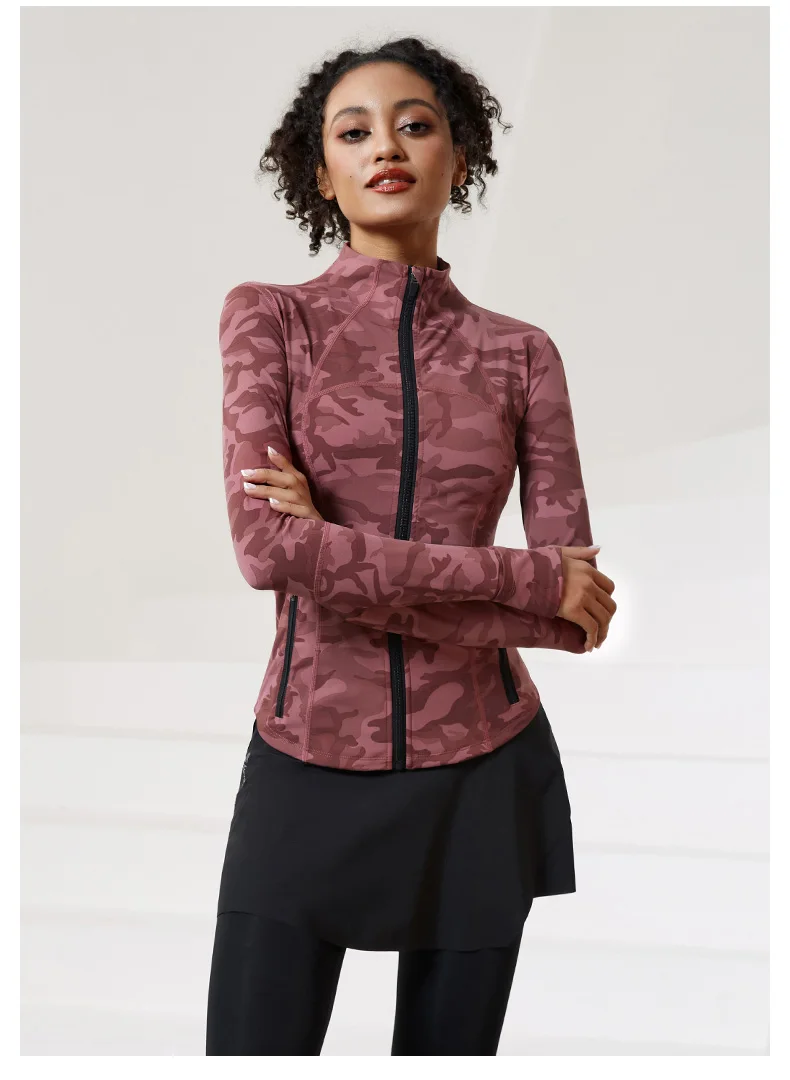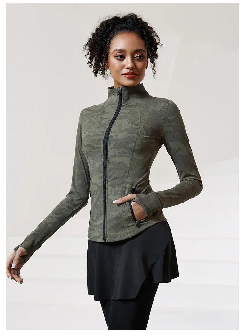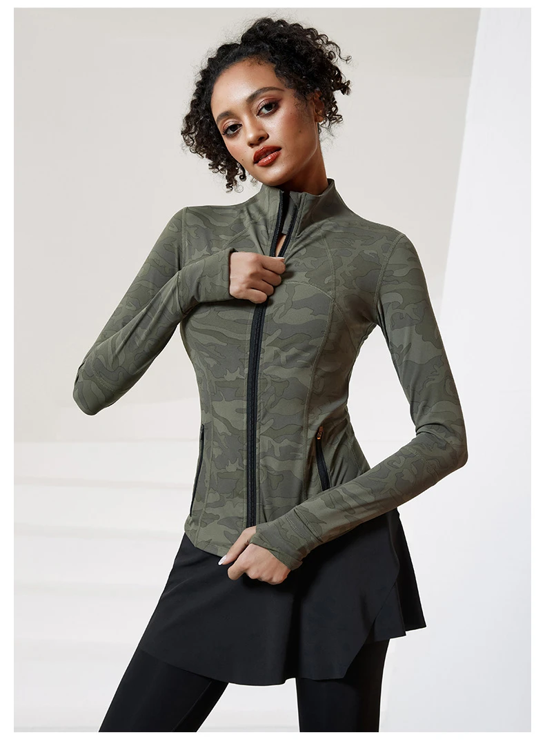 Womens Camouflage Sports Jacket Winter Warm Outdoor Running Hoodies Zipper Cycling Training Tie Dye Coats Cold-proof Windproof