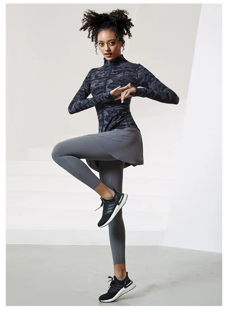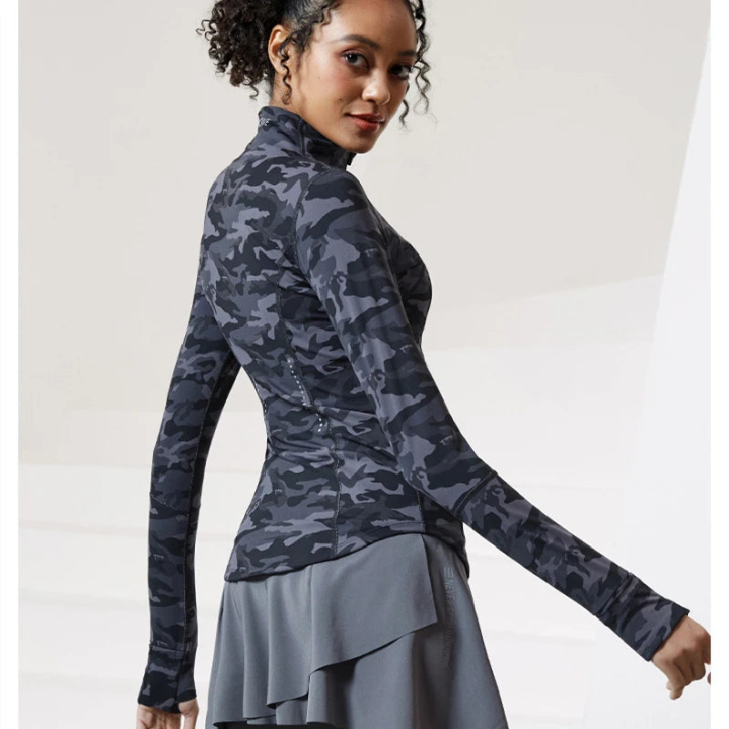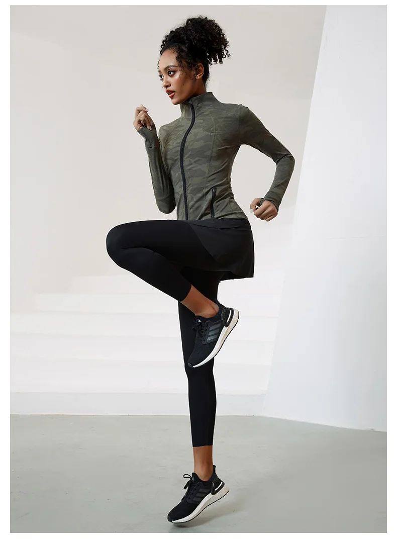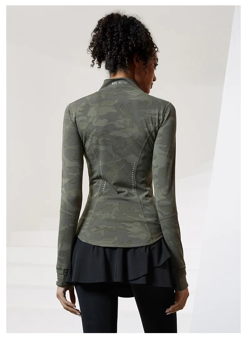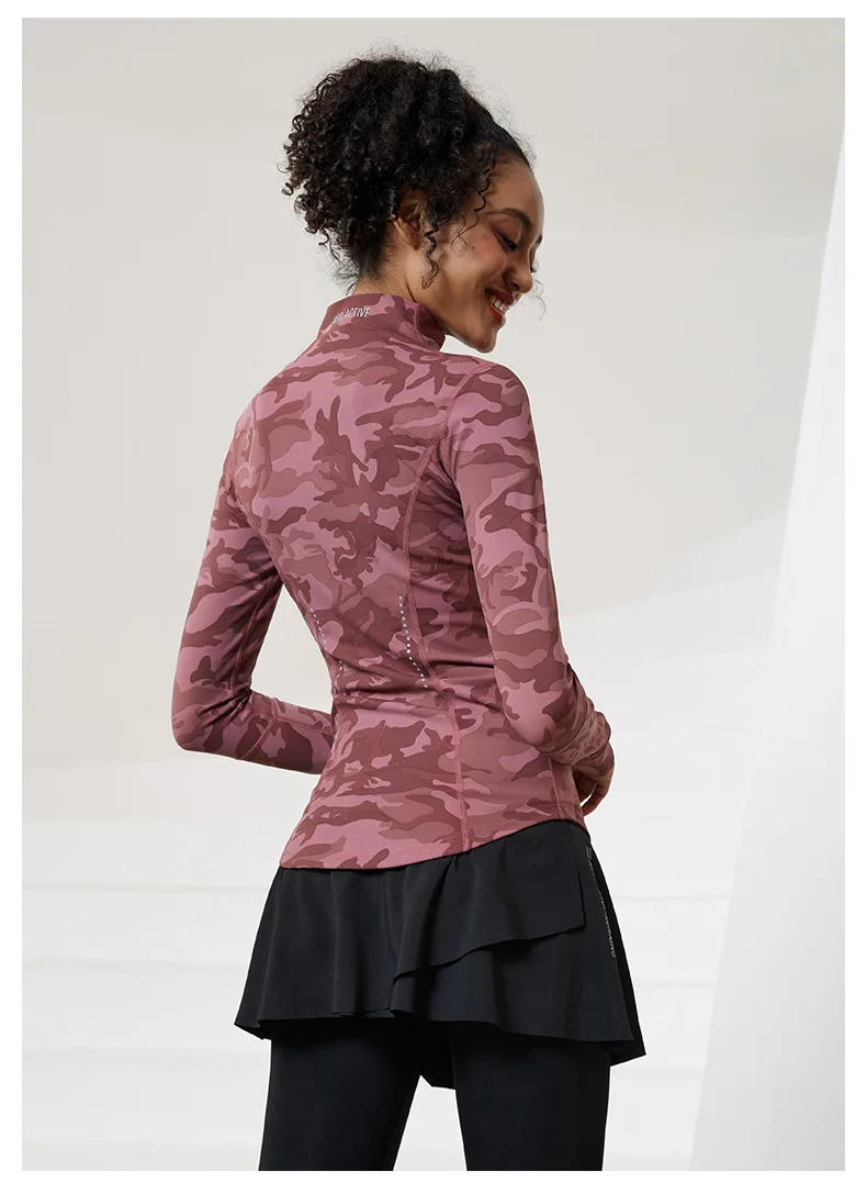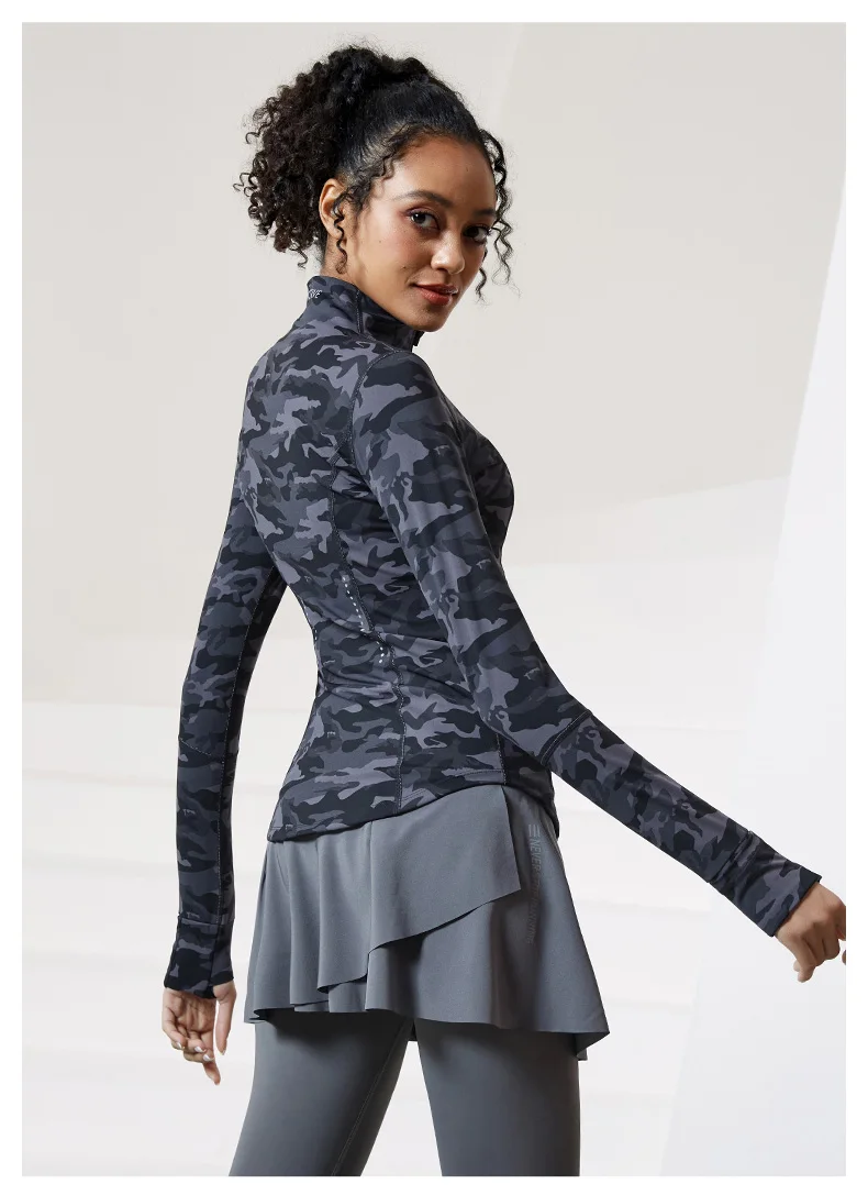 Womens Camouflage Sports Jacket Winter Warm Outdoor Running Hoodies Zipper Cycling Training Tie Dye Coats Cold-proof Windproof