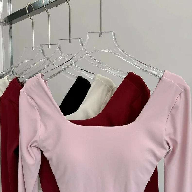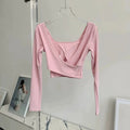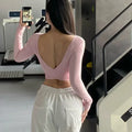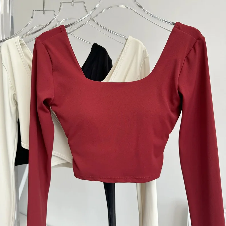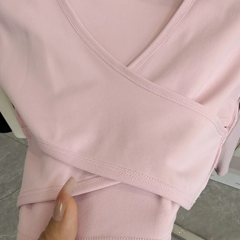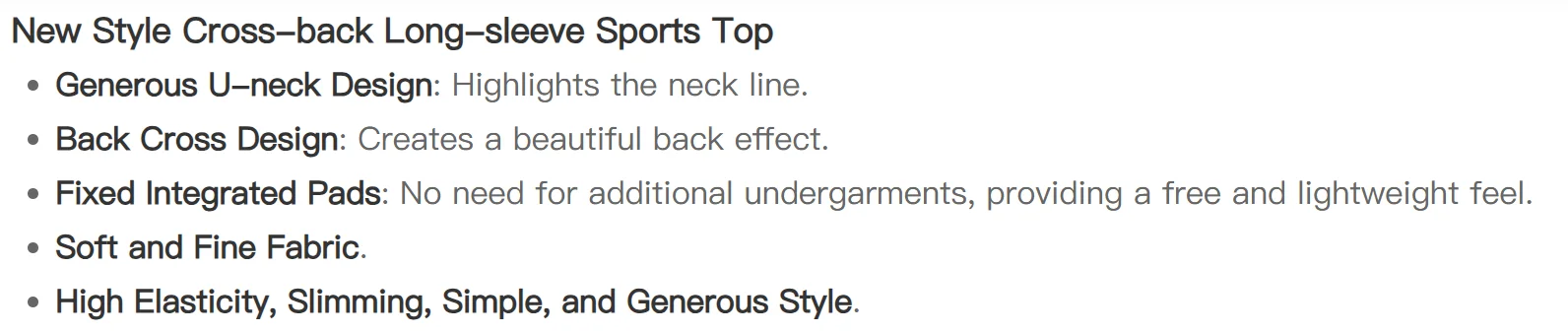 Women's Fitness Yoga Suit Back Cross Sports Top with Chest Cushion Long Sleeved T-Shirt for Running