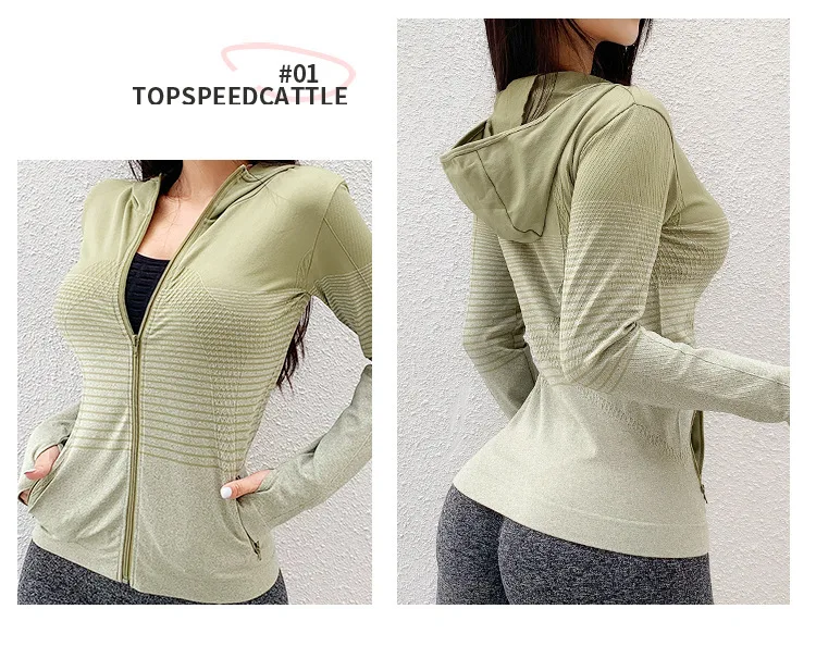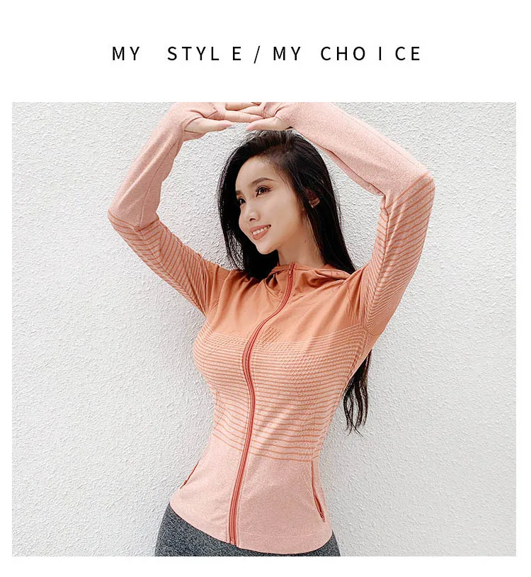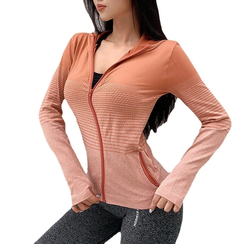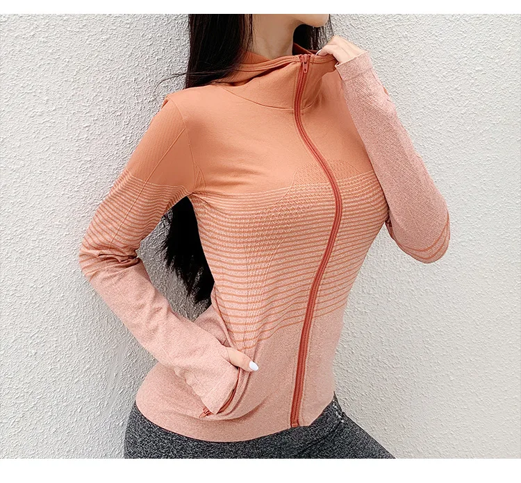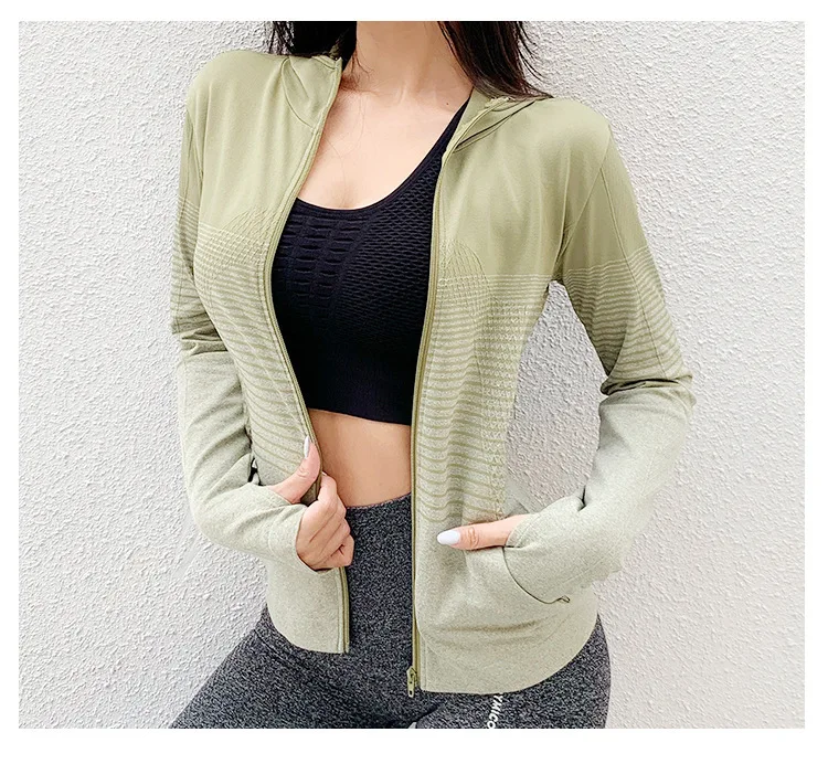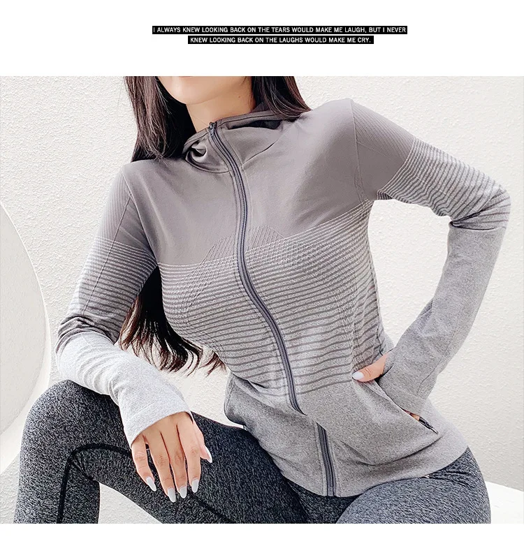 Women's Front Zipper Hooded Yoga Shirts Long Sleeve Top Sportswear Quick Dry Tracksuit Workout Running Jacket