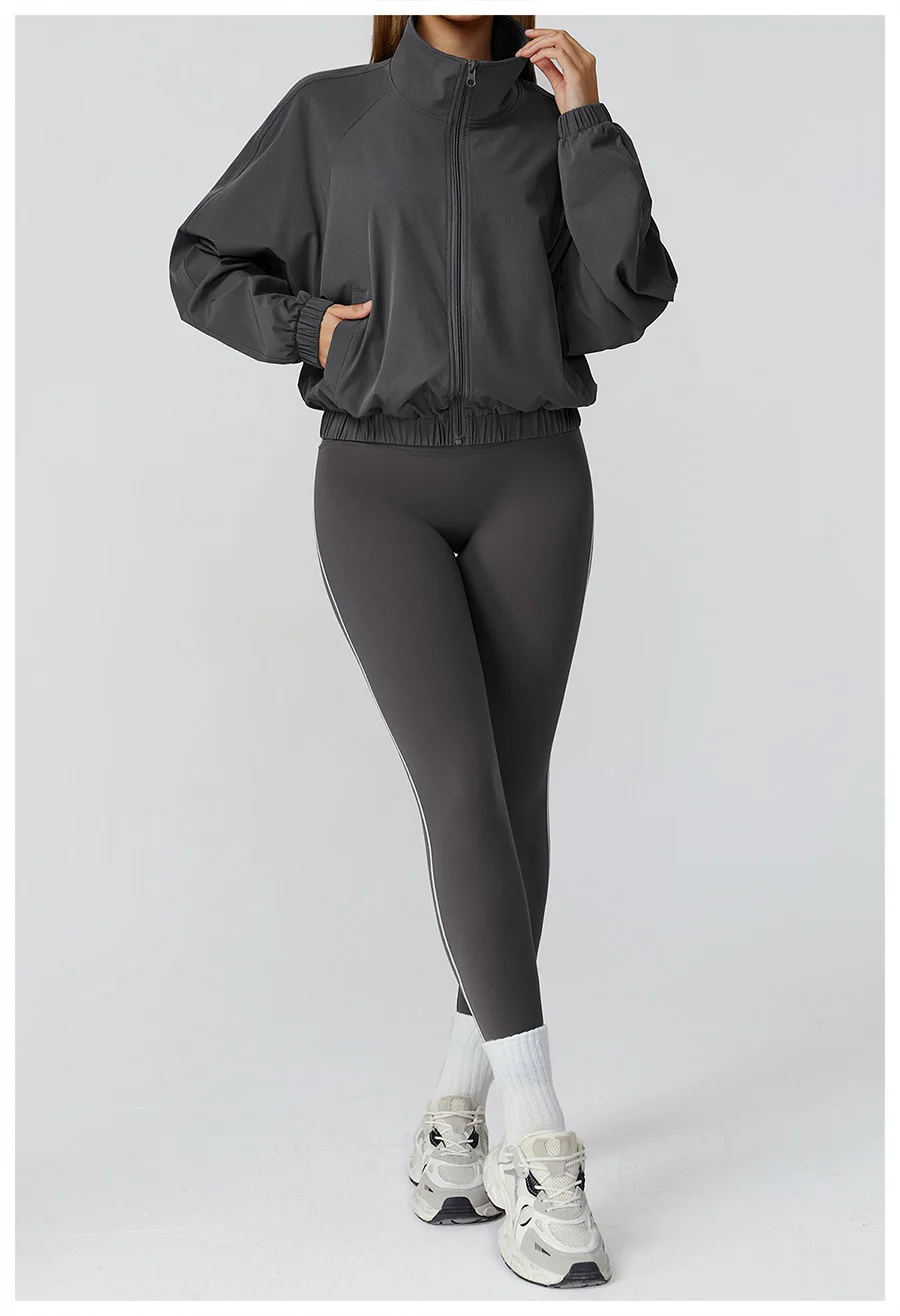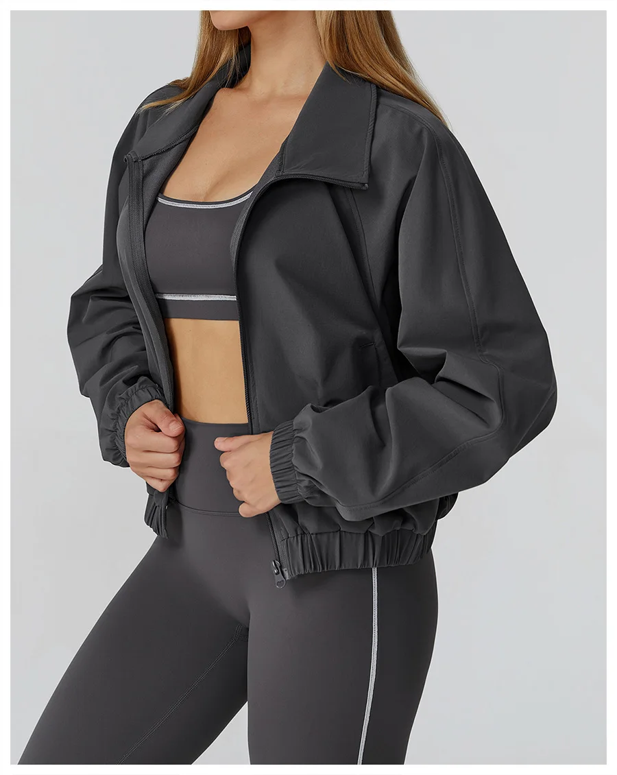 Women's Outdoor Sports Jacket Zip Pullover Running and Jogging Top Long Sleeve Running Coat Yoga Gym Fitness Tight Quick Dry Top