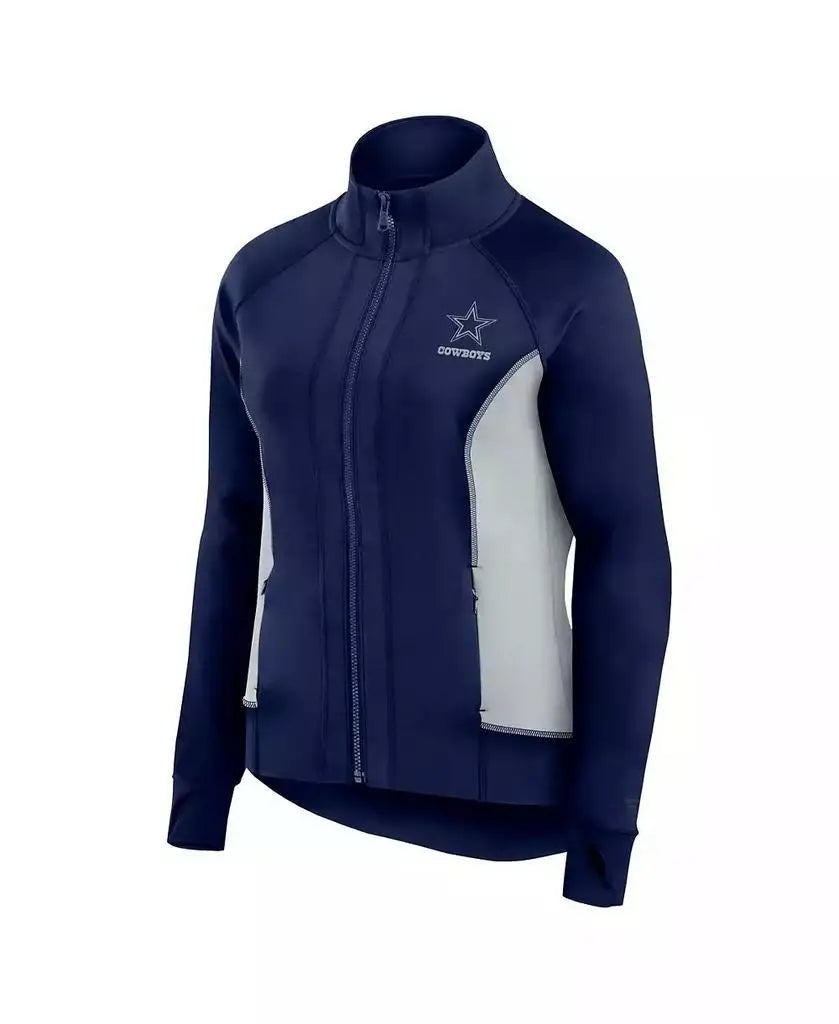 Women's Tailored Fit Navy Full-Zip Gym Track Jacket for Running - Dallas Cowboys Sportswear