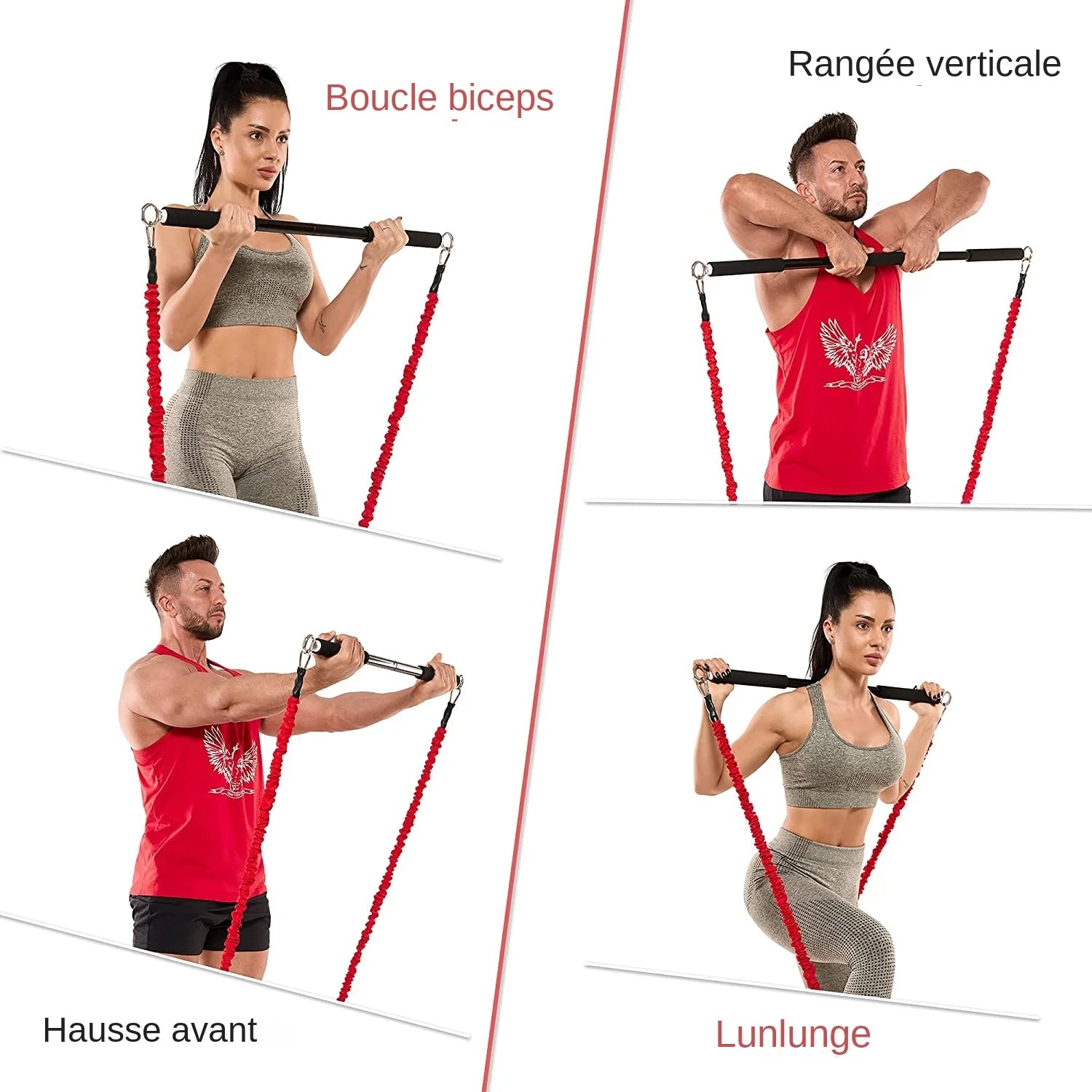 METAL BAR FOR RESISTANCE BANDS - Use our bar at home with resistance bands or cable machine: bicep curls, tricep curls, standing chest presses, military presses, arm lifts, bench press, squats, dead lift, crunches, seated close row, and more