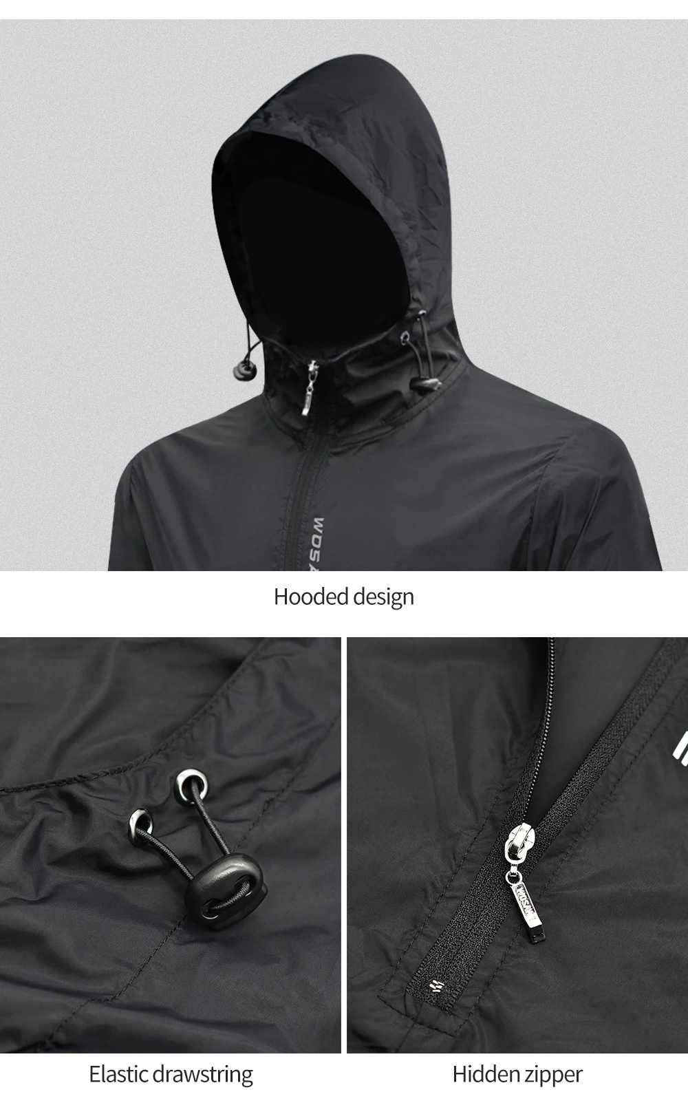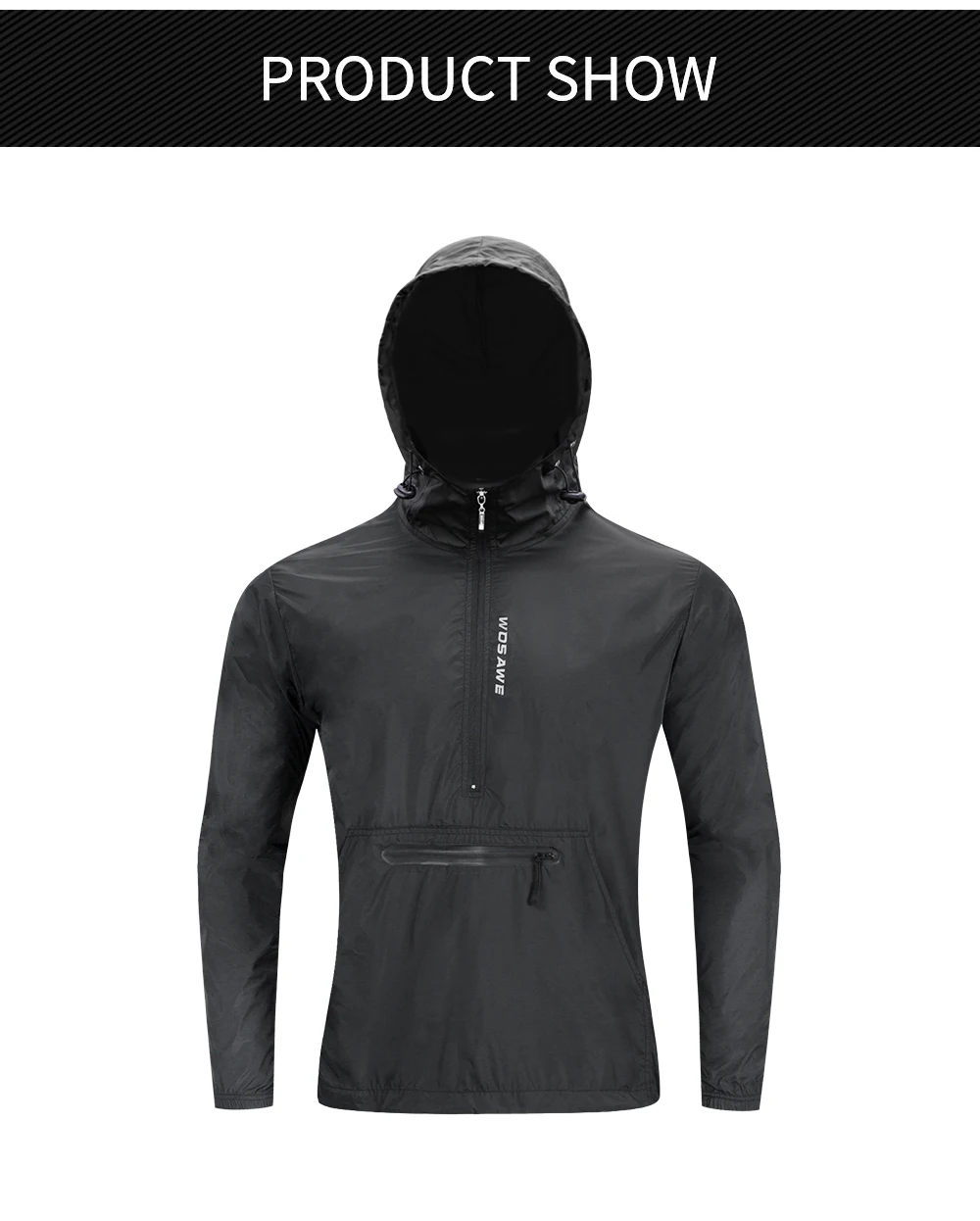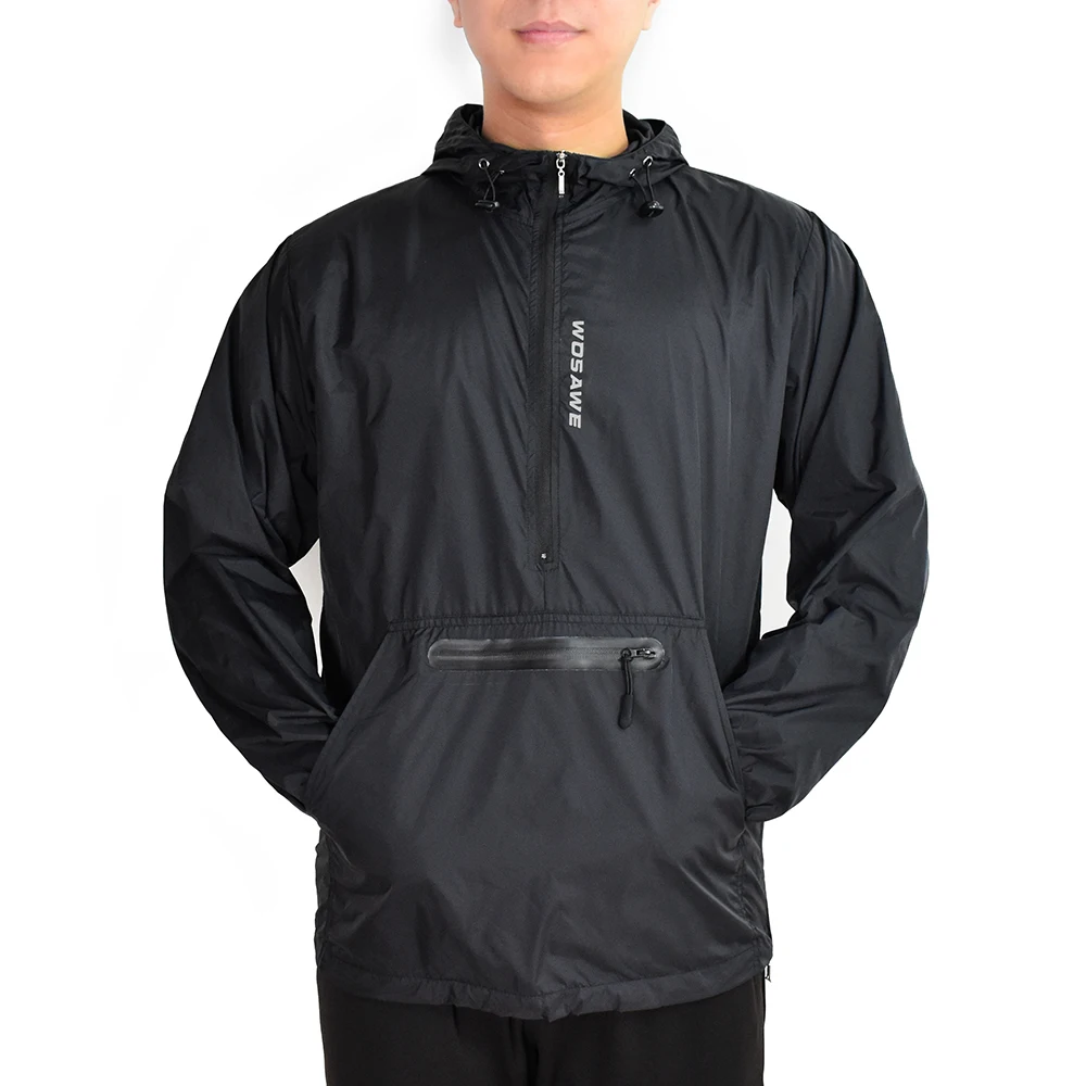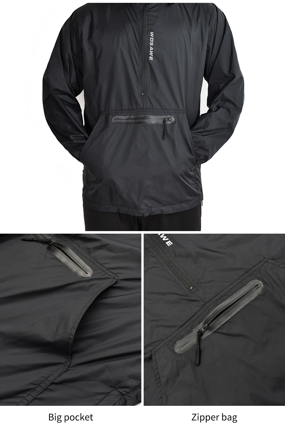 WOSAWE Cycling Windproof Jacket Lightweight Men Breathable Reflective Hooded Bike Jacket Half Zipper Outdoor Sport Windbreaker
