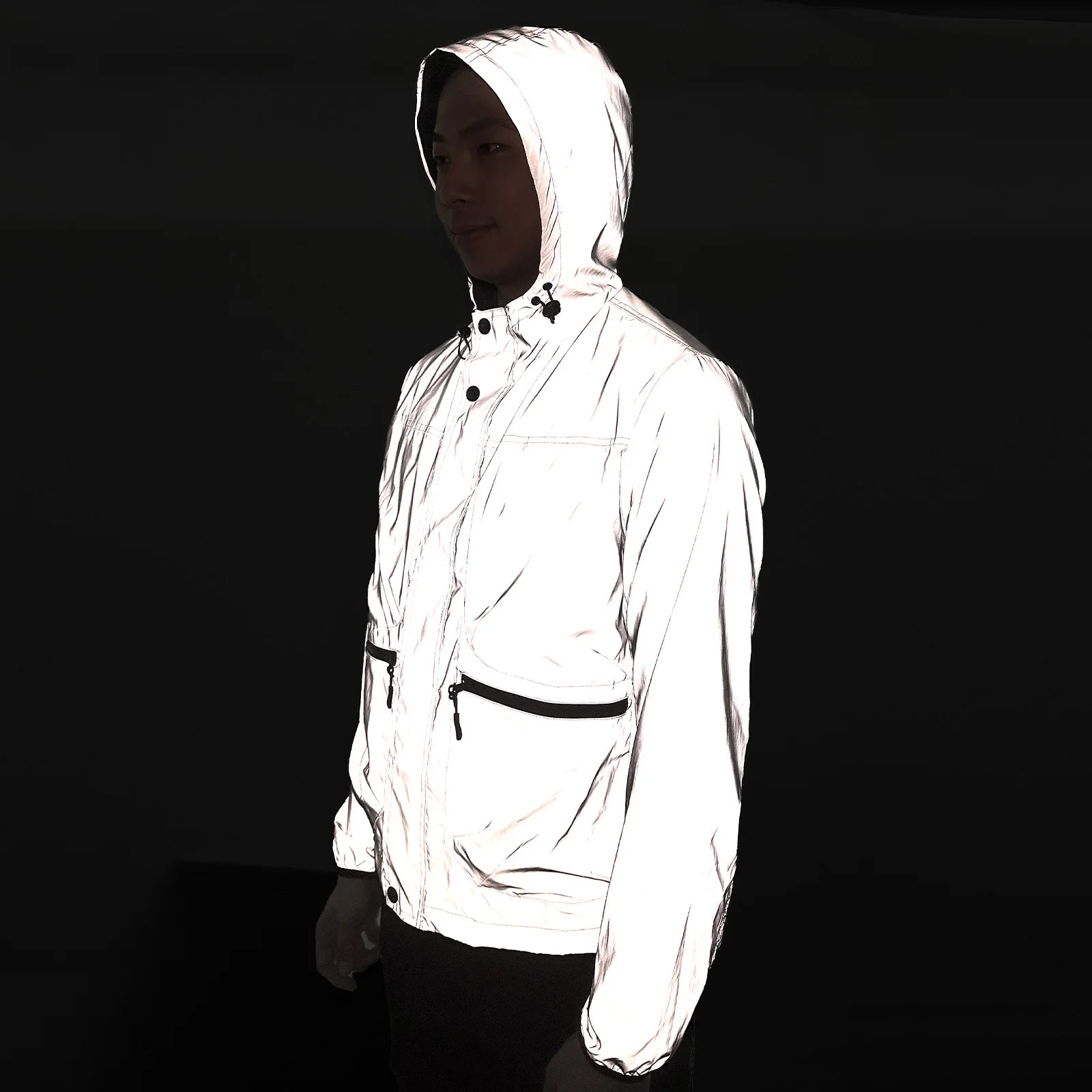 WOSAWE Full Reflective Jacket with Hoodie High Visibility Waterproof Wind Breaker Men Women Hiking Cycling Running Safety Vest