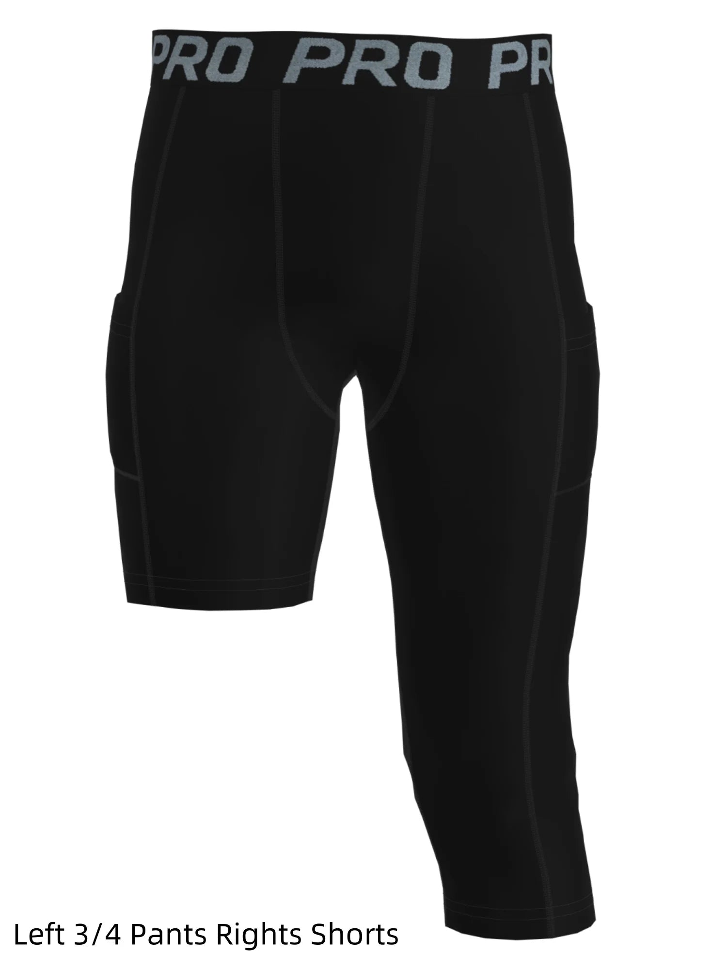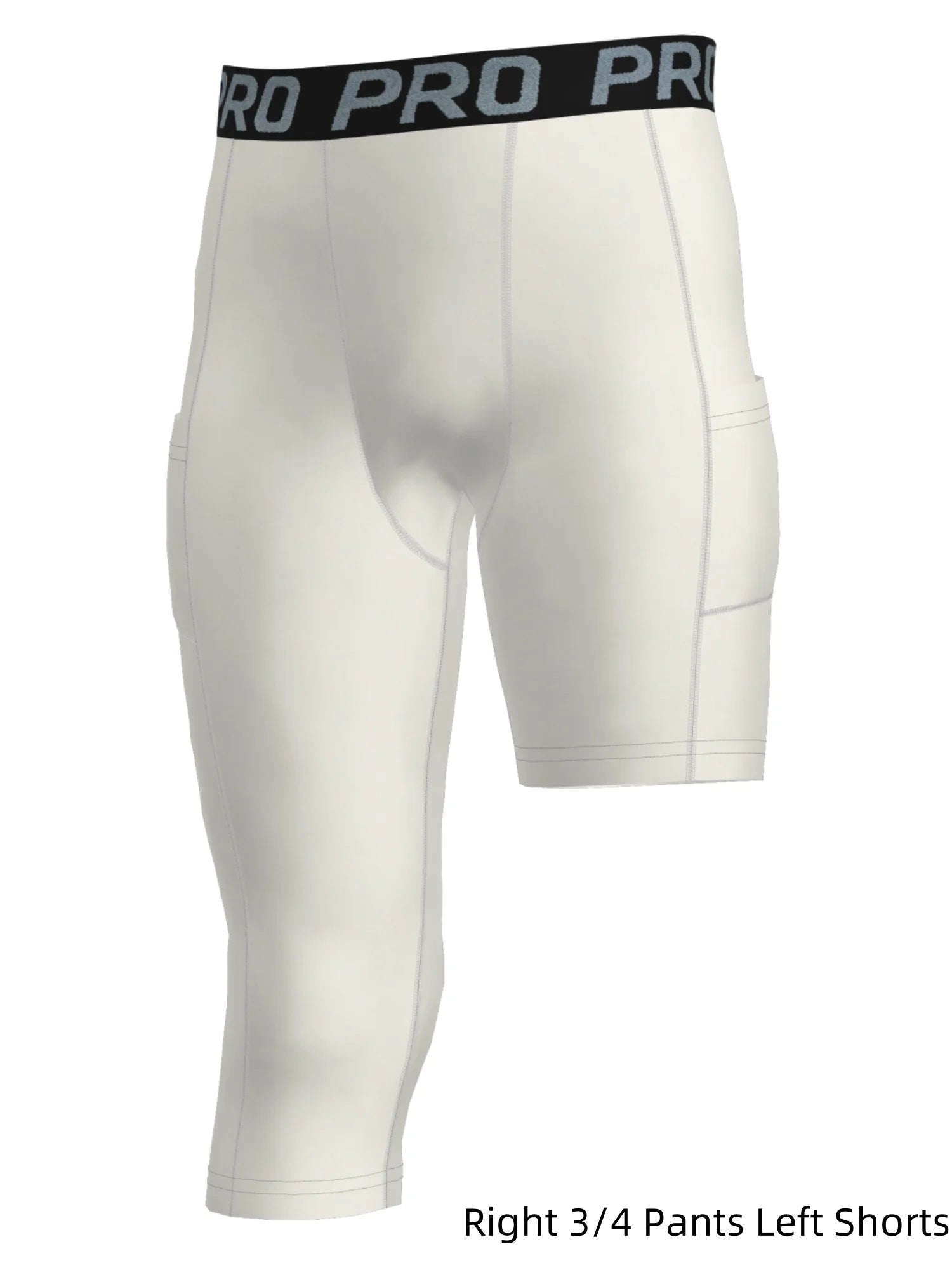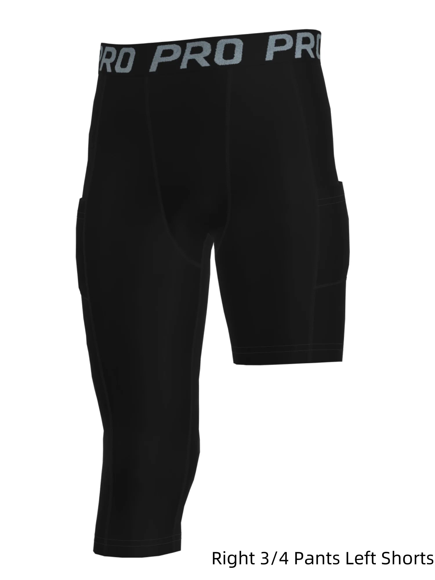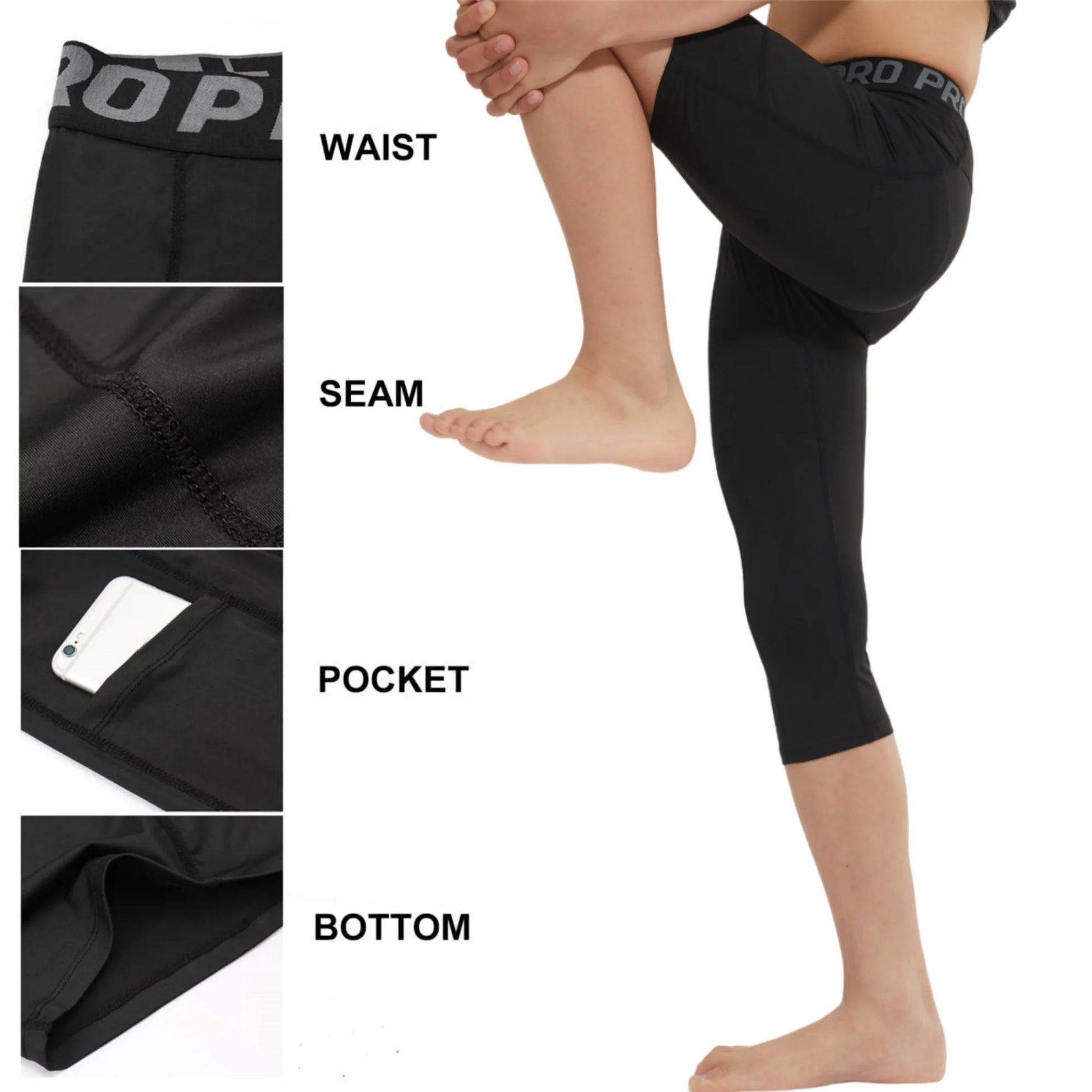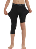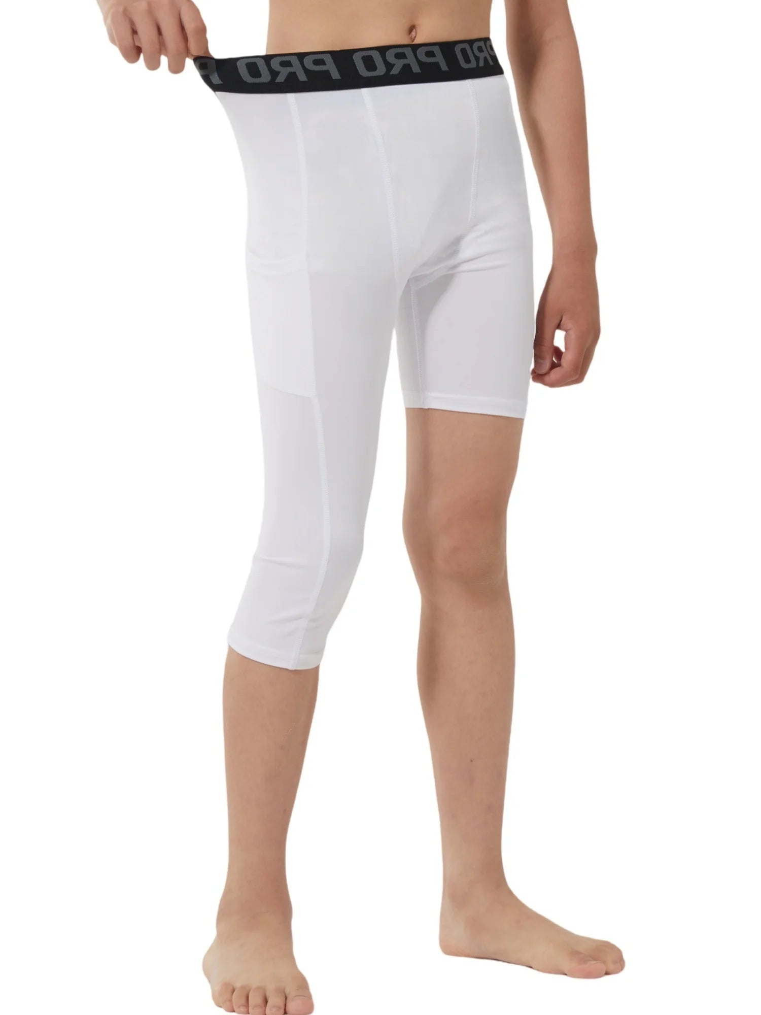 Youth Boys 3/4 One Leg Compression Tights for Basketball Leg Sleeve Capri Athletic Base Layer Underwear for Gym Running